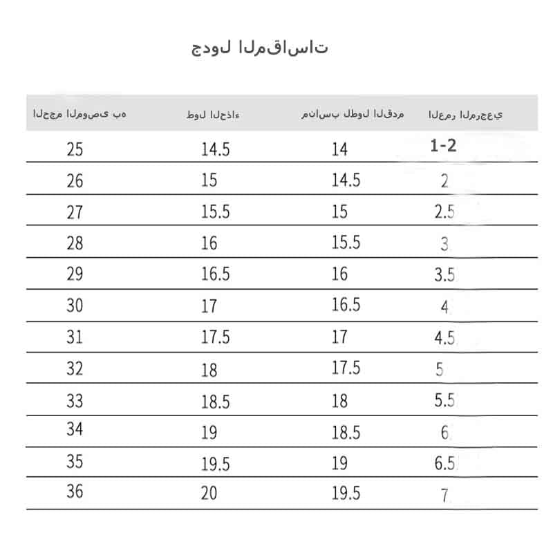 الربيع والخريف: طول القدم + 1 سم لاختيار الطول الداخلي