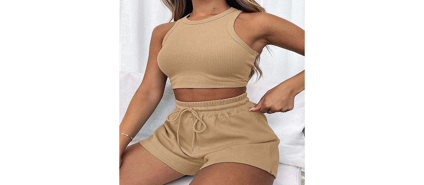 طقم نسائي غير رسمي من قطعتين (يتألف من بلوزة قصيرة وشورت)