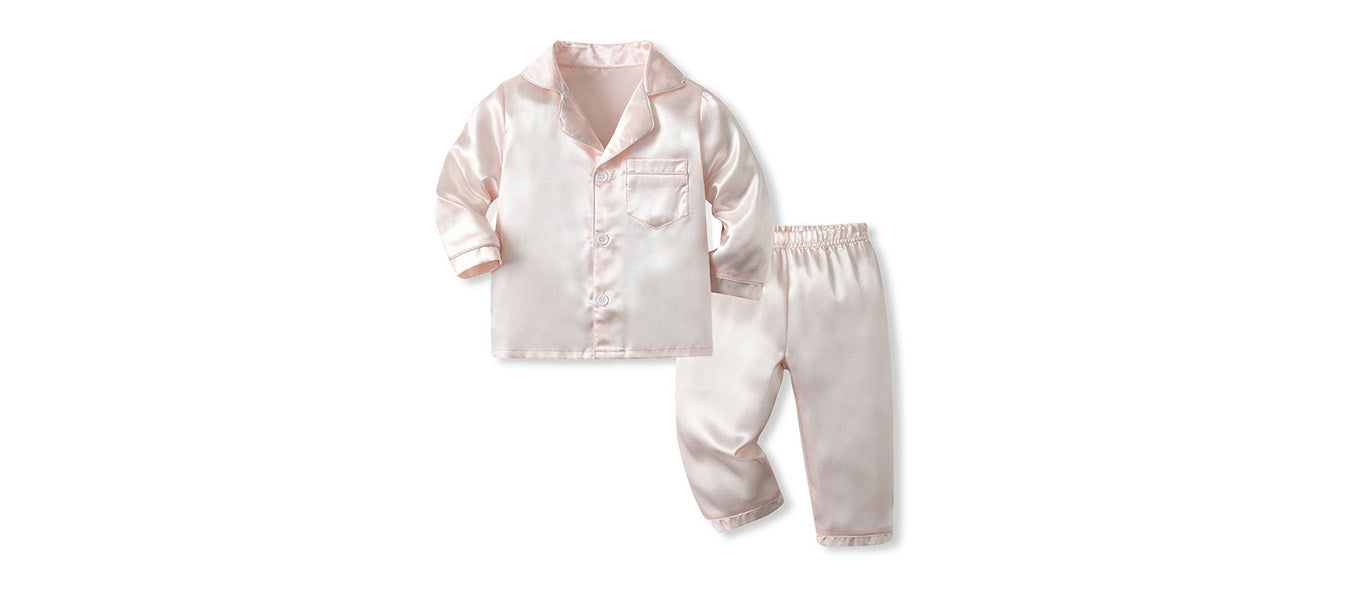 طقم بيجامة أطفال من الحرير بأزرار أمامية