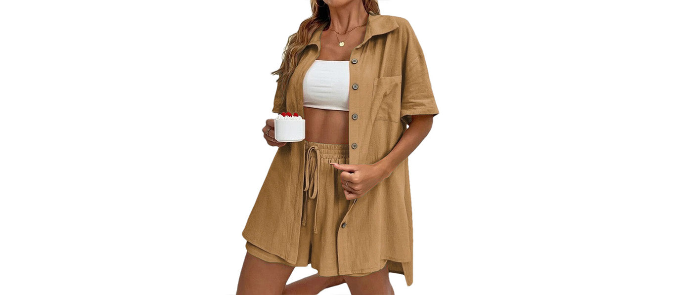 طقم شورت صيفي نسائي من القطن والكتان