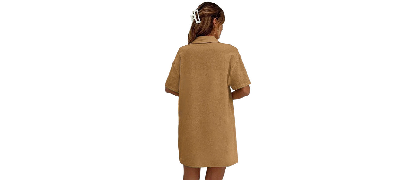 طقم قميص قصير الأكمام وشورت من مزيج القطن والكتان للسيدات