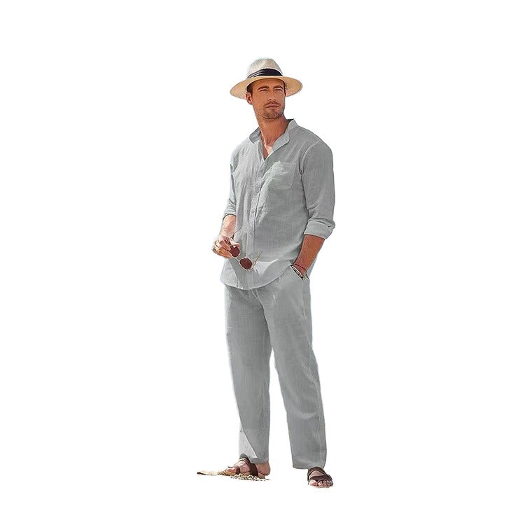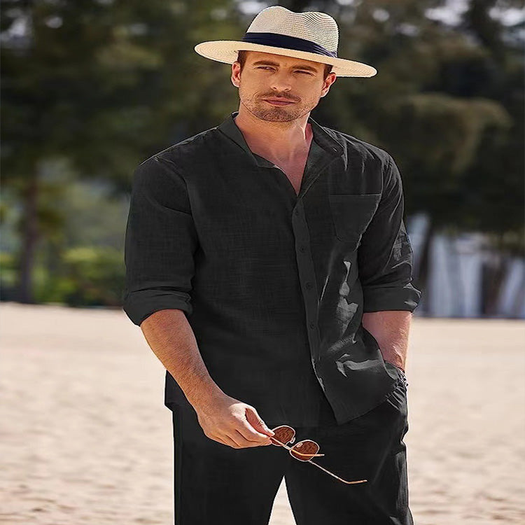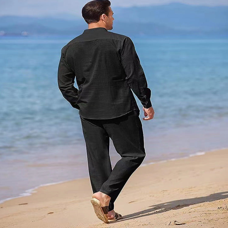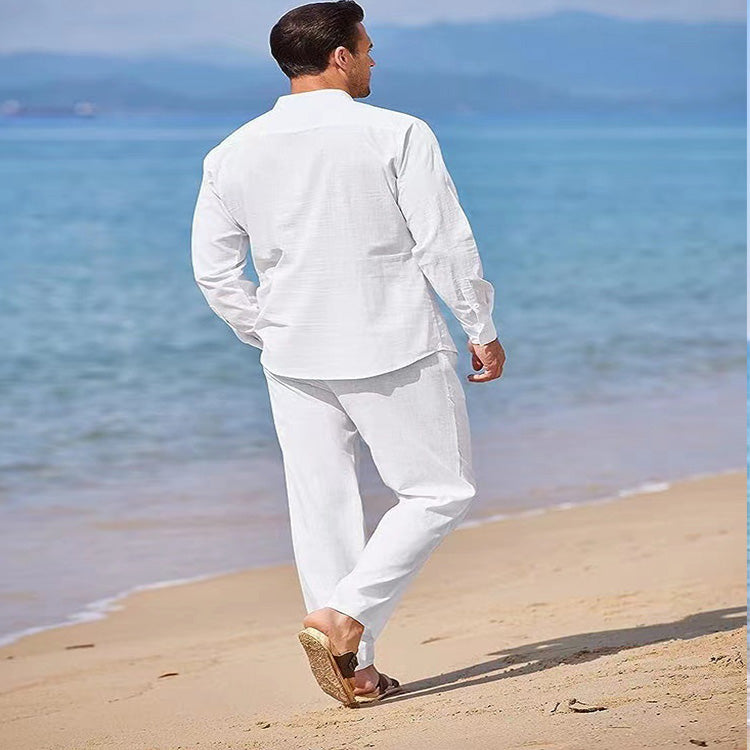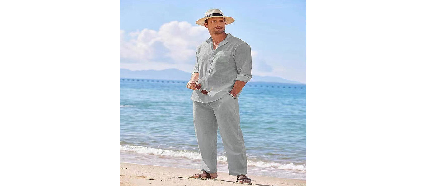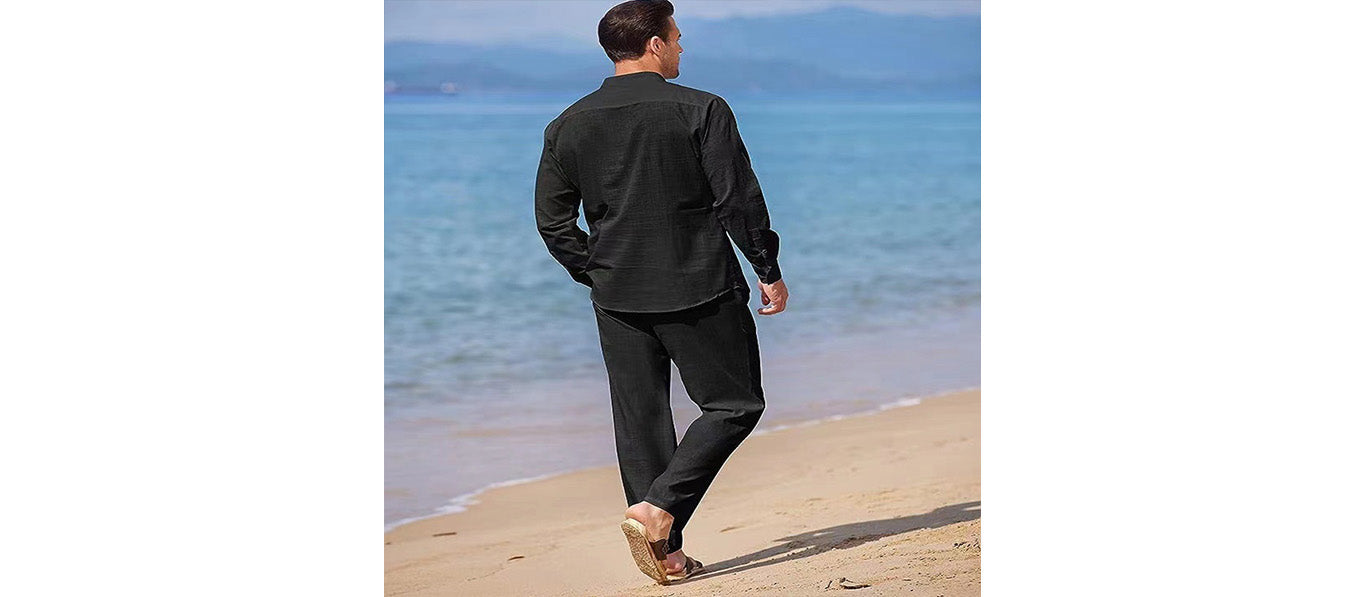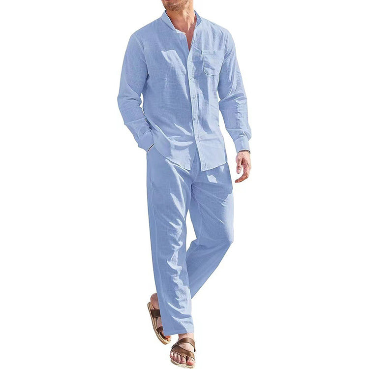 بدلة رجالية أنيقة غير رسمية من قطعتين مع جيوب