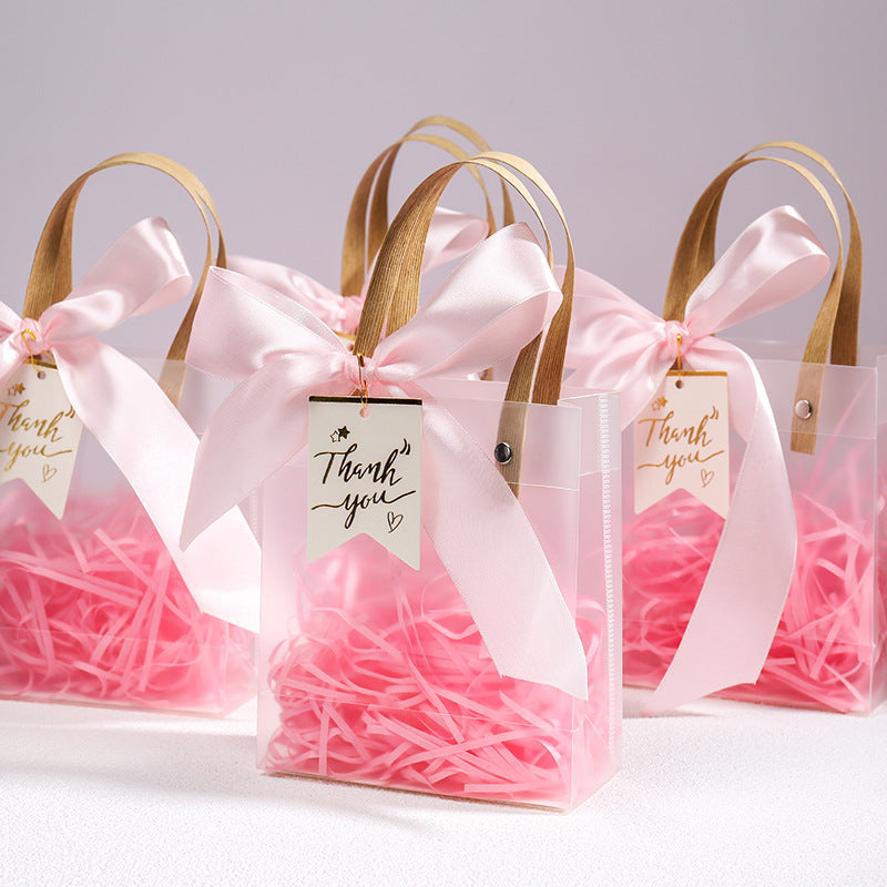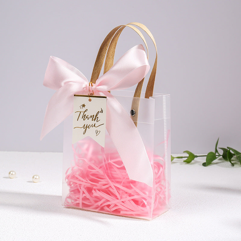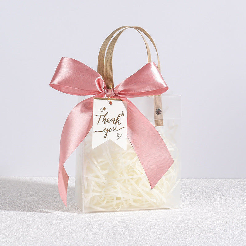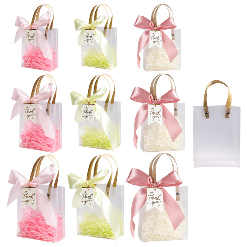 توفر هذه الحقيبة البلاستيكية الشفافة المزودة بمقابض حلاً عمليًا وأنيقًا لتغليف الهدايا في المناسبات مثل حفلات الزفاف والتعميد وأعياد الميلاد.