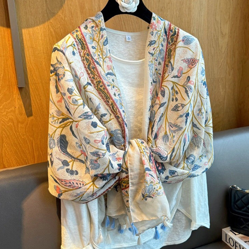 رداء كارديغان طويل بنقشة زهور للنساء مع إغلاق بأزرار