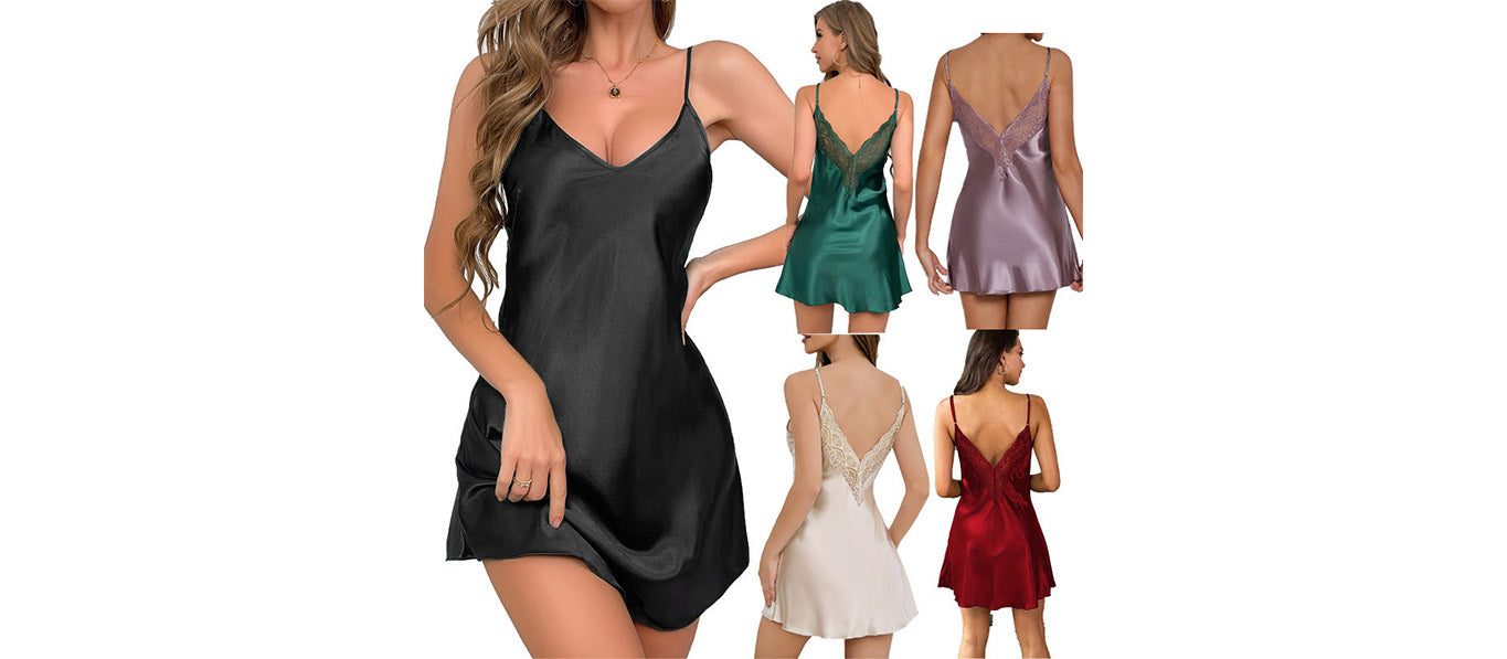 ثوب نوم نسائي من الساتان برقبة حبال، قصير