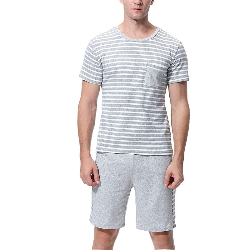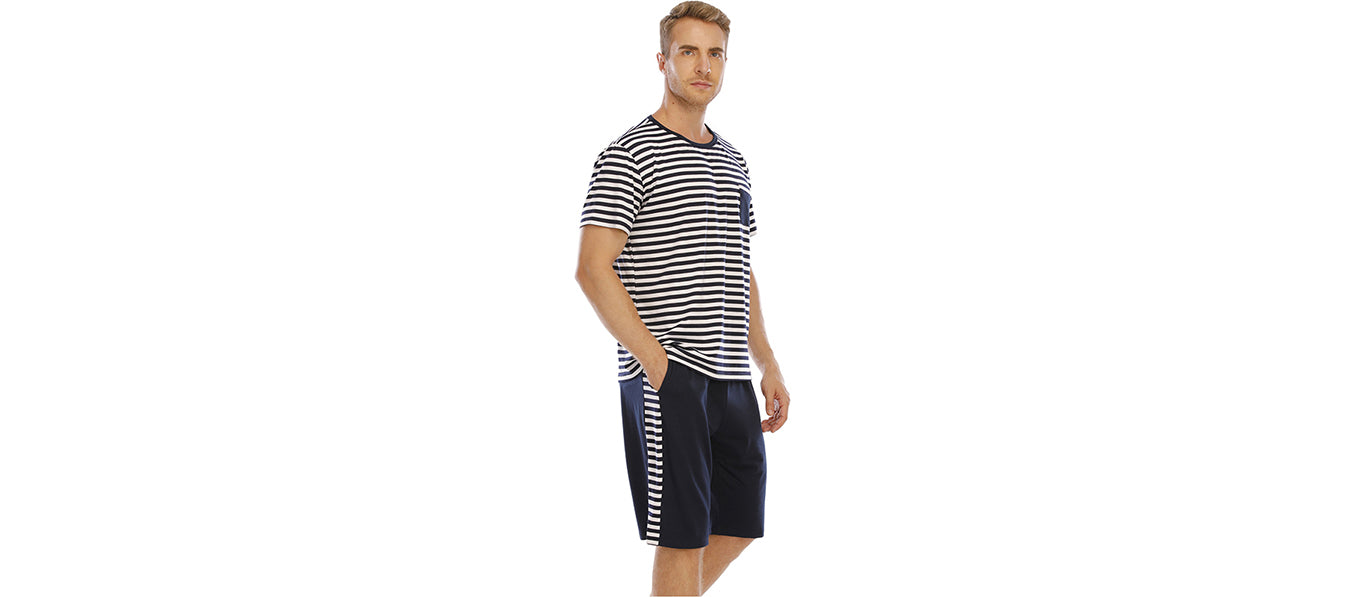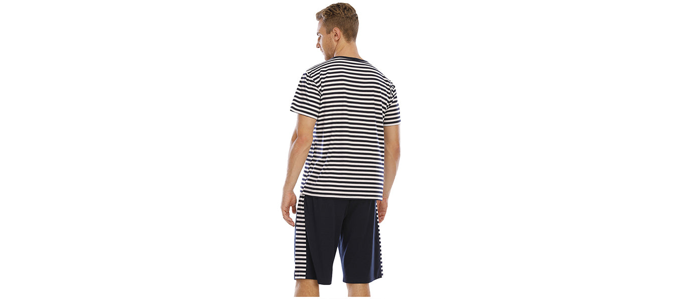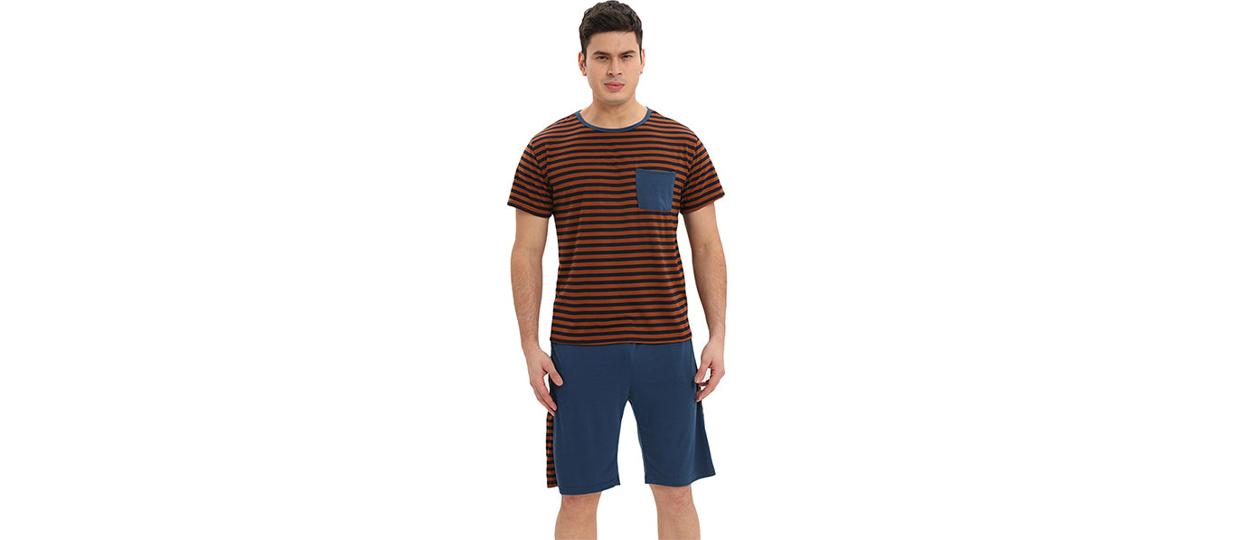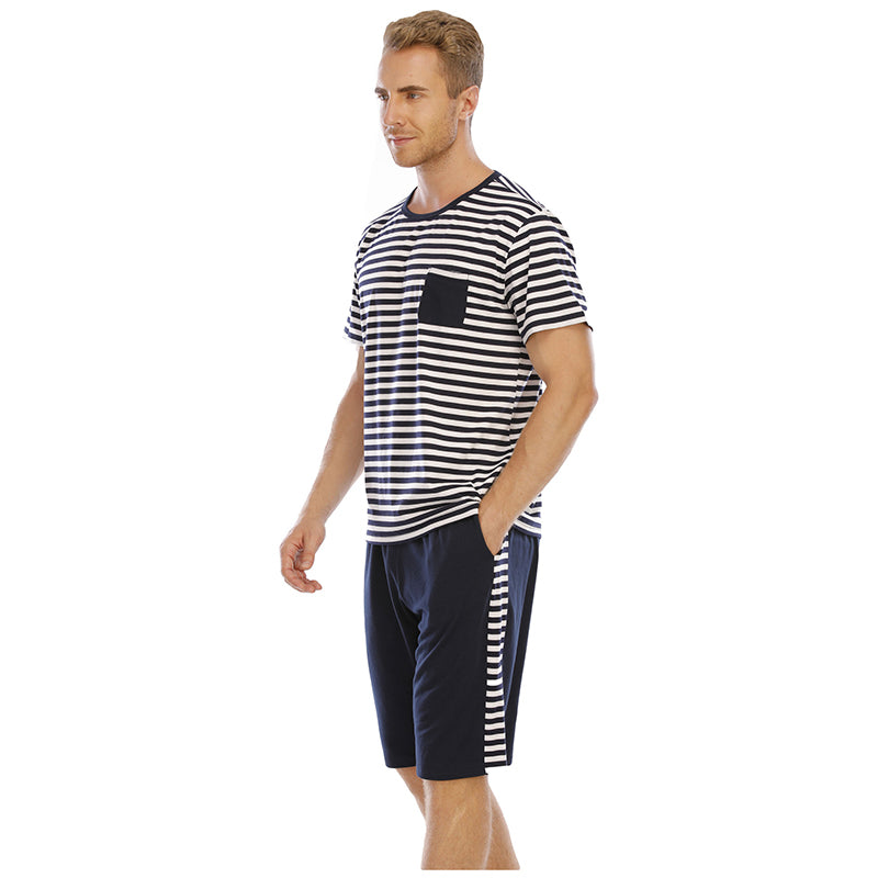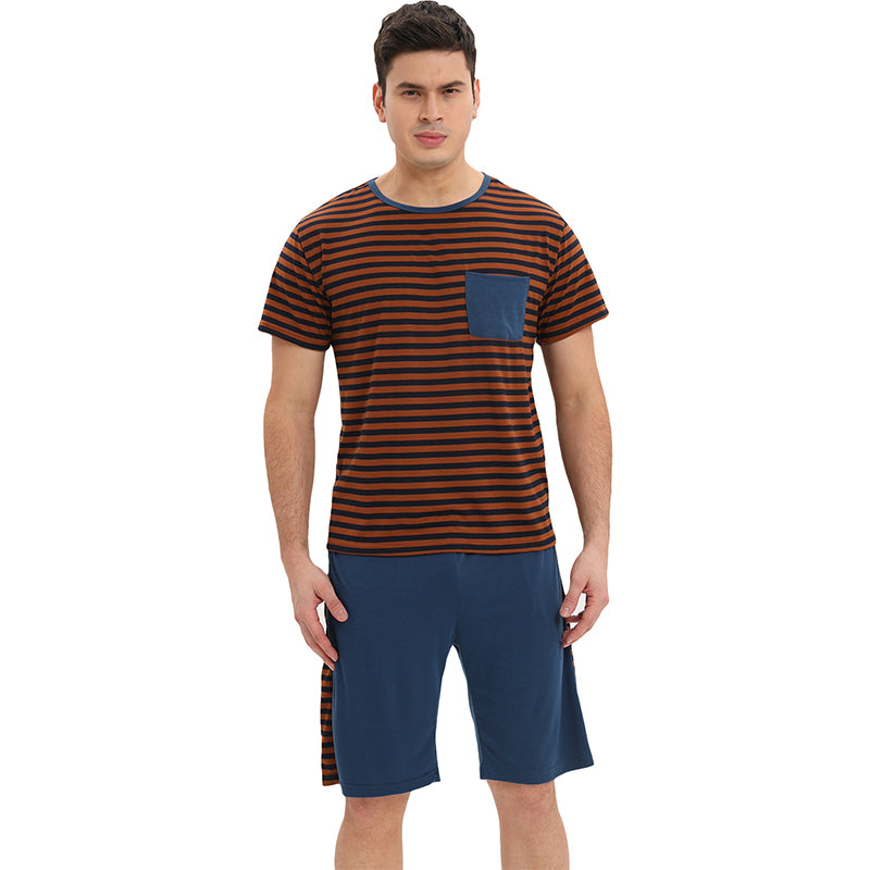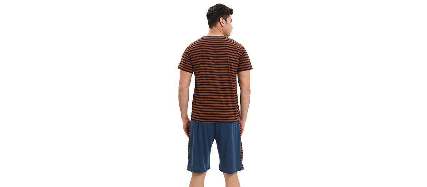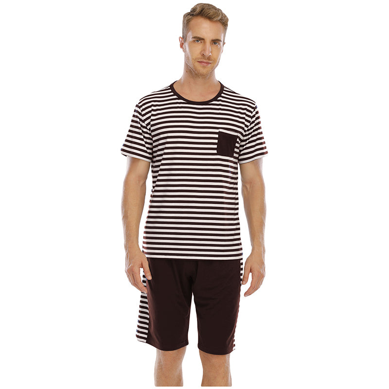 طقم بيجامة رجالي برقبة مستديرة ومخطط