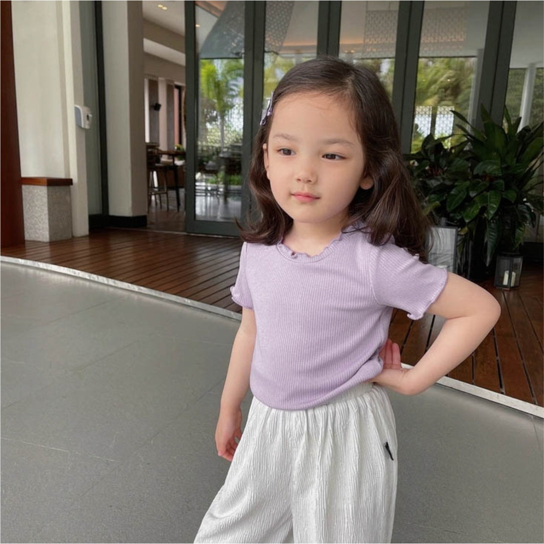 طقم محبوك مع بلوزة قصيرة الأكمام وسروال واسع