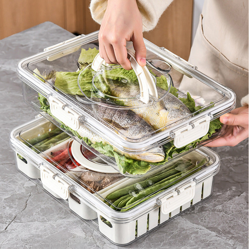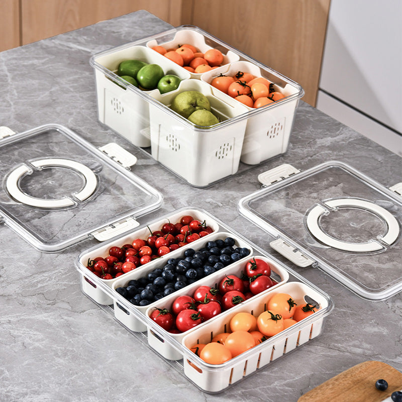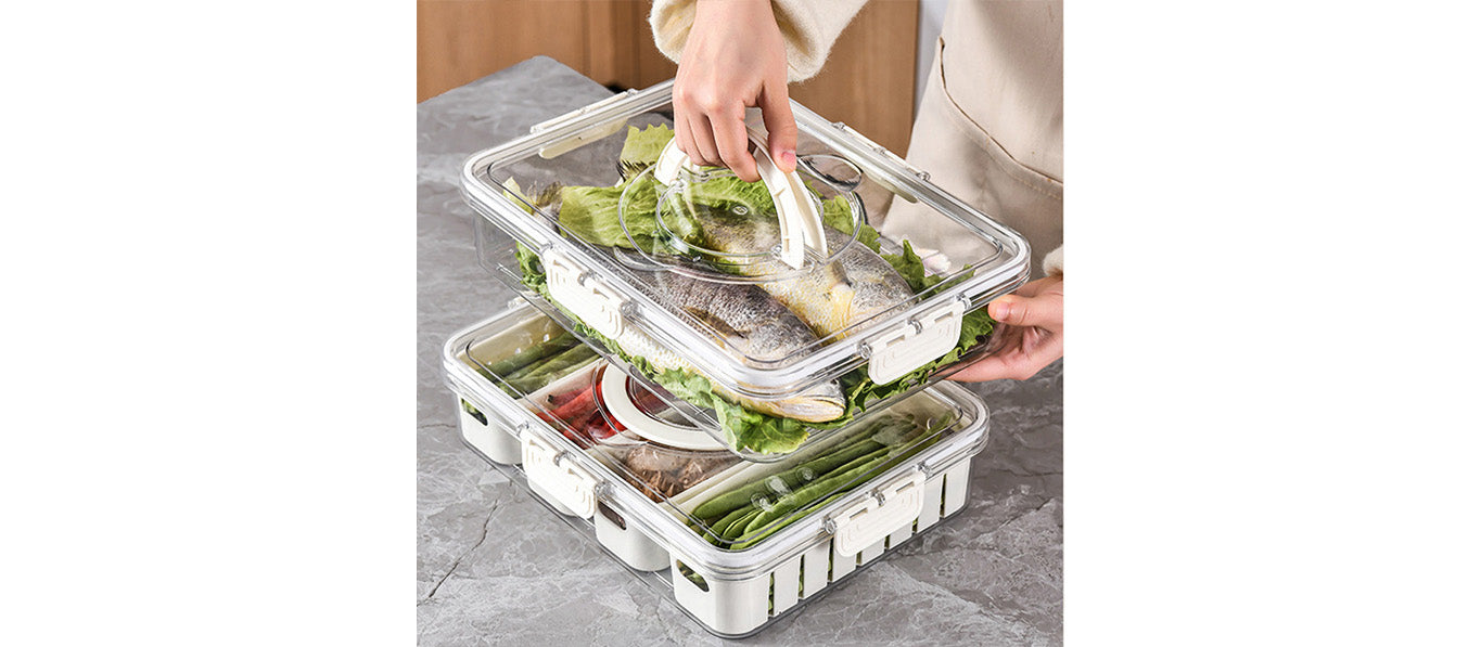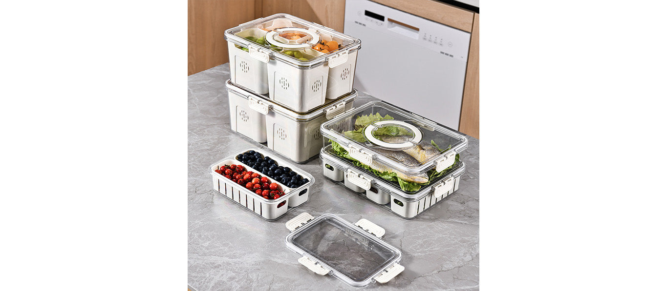 توفر هذه الحاويات البلاستيكية المزودة بأغطية حلاً عمليًا لتنظيم الثلاجة وتخزين الفواكه والخضروات بكفاءة.