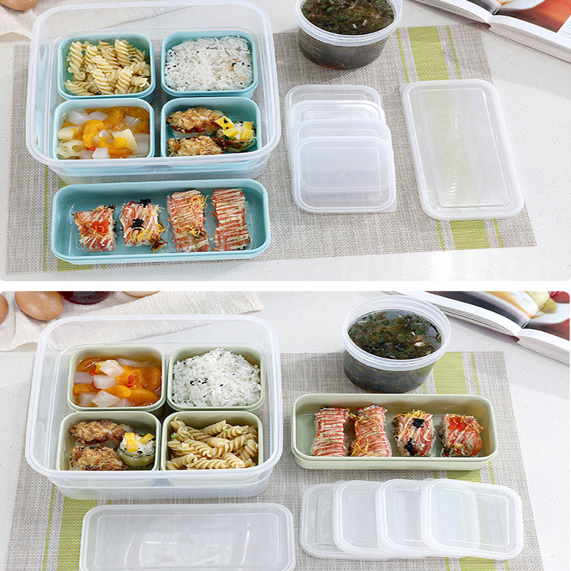 المادة: PP+PE، حلقة مانعة للتسرب من السيليكون الوظيفة: صندوق بينتو الشكل: مربع التركيب: طبقة مزدوجة الحجم: 21.8*21.8*11 سم التقسيم: 6 مقصورات في المجموع