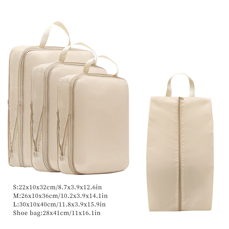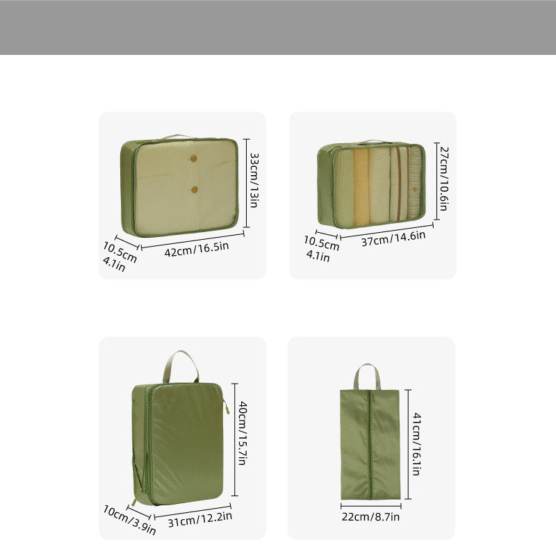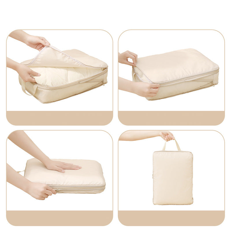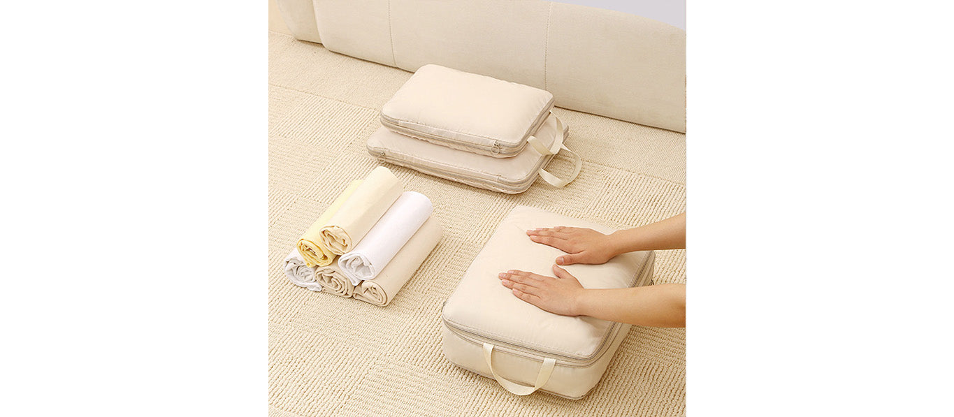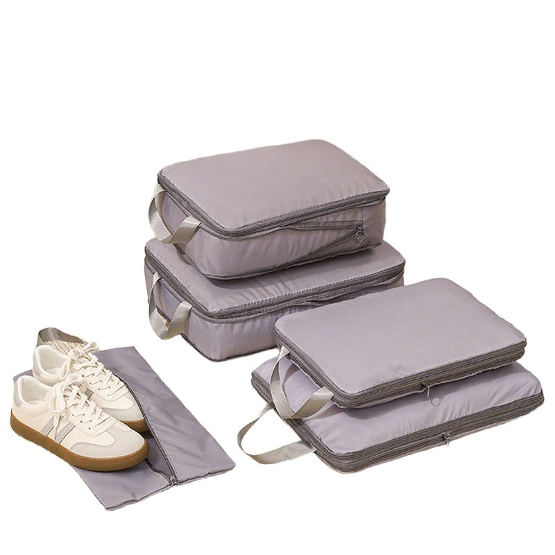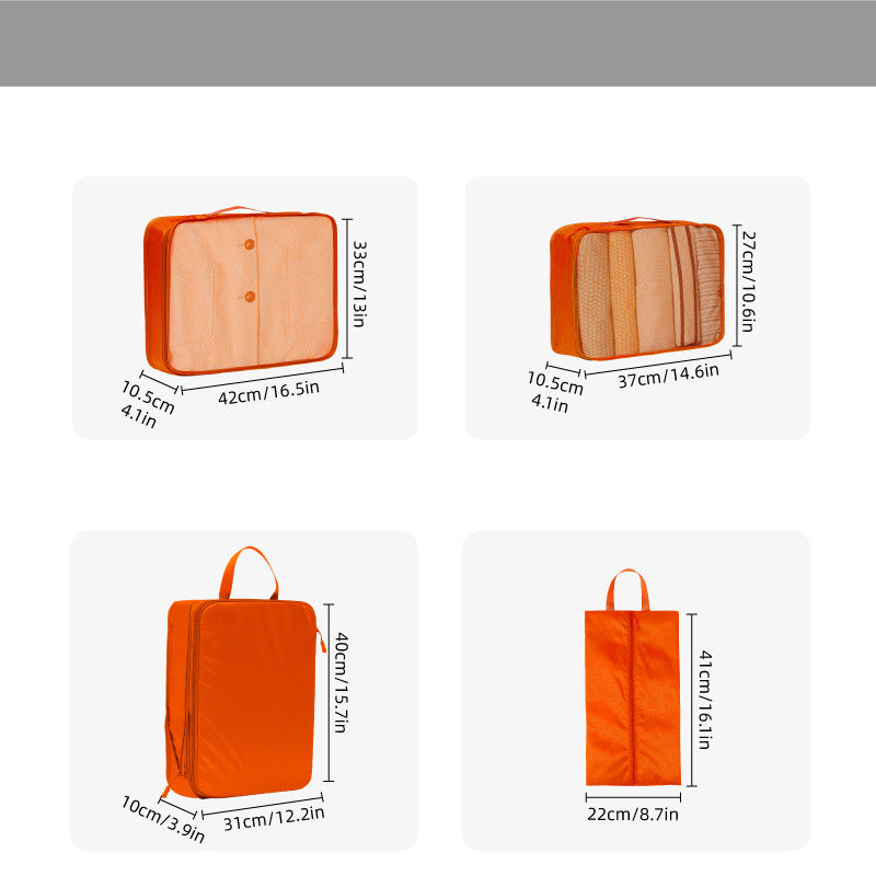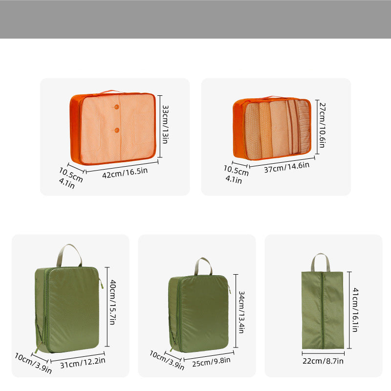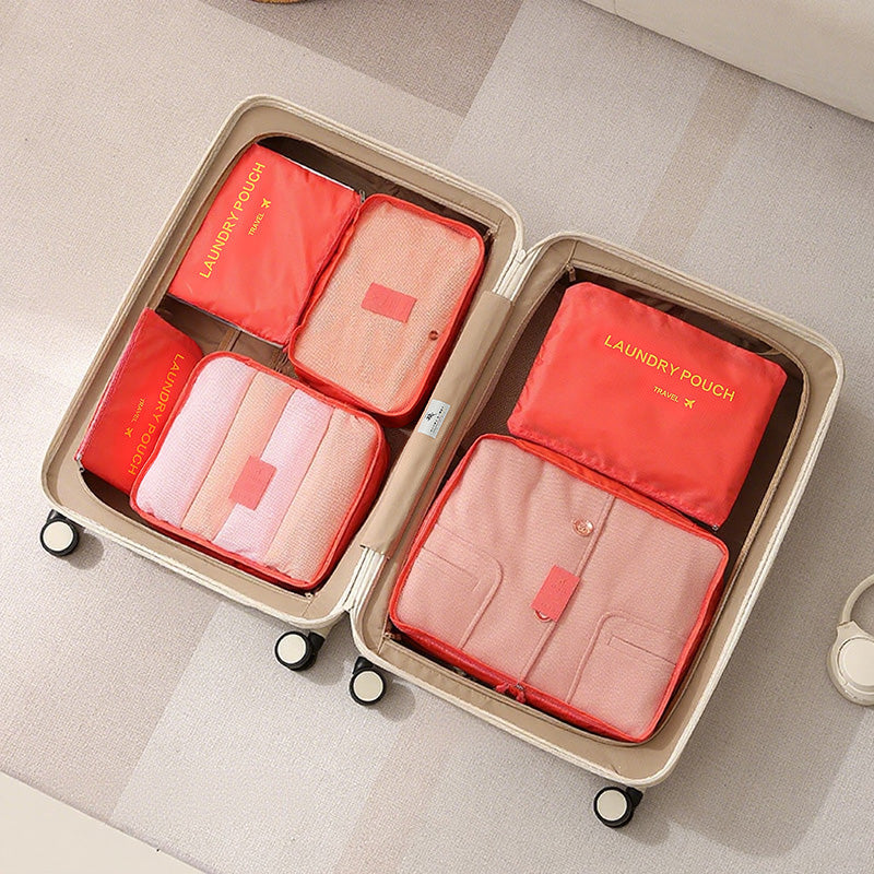 توفر مجموعة أدوات تنظيم السفر المكونة من سبع قطع حلاً عمليًا وفعالًا لتعبئة الأمتعة. تتميز أداة التنظيم الشبكية بمقبض مريح لسهولة الحمل ويمكن تثبيتها بإحكام على حقيبة السفر.
