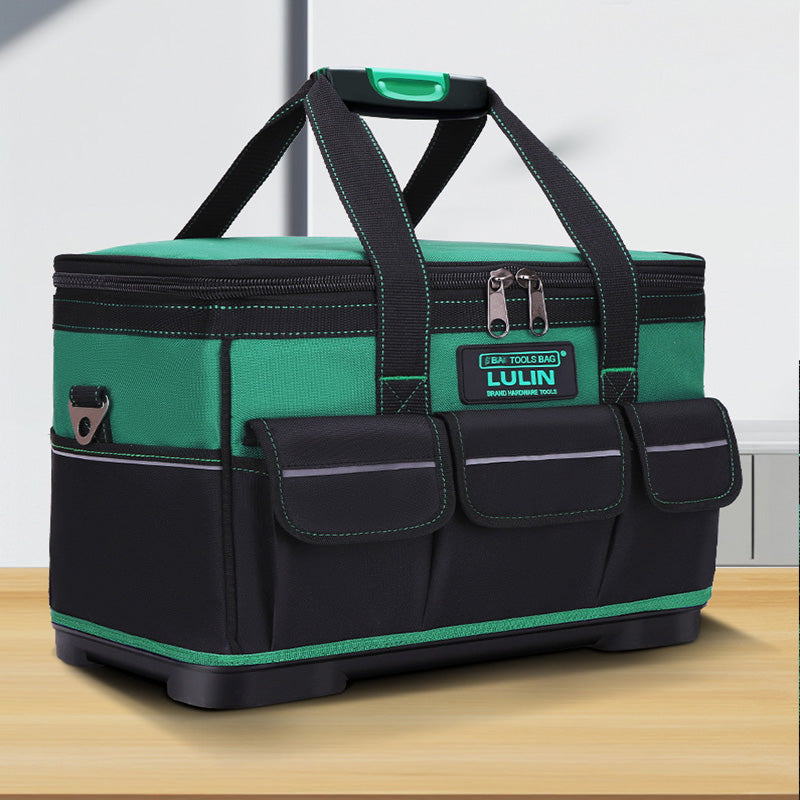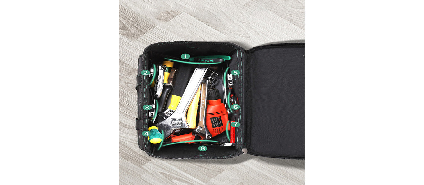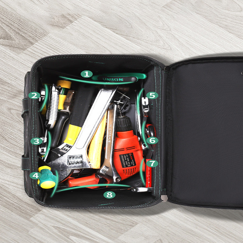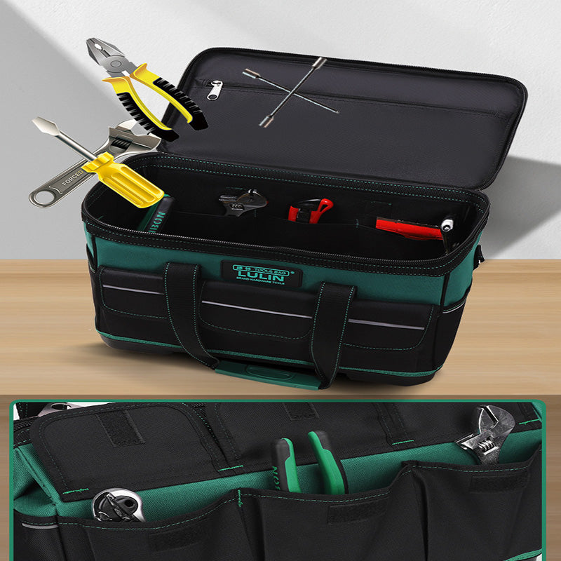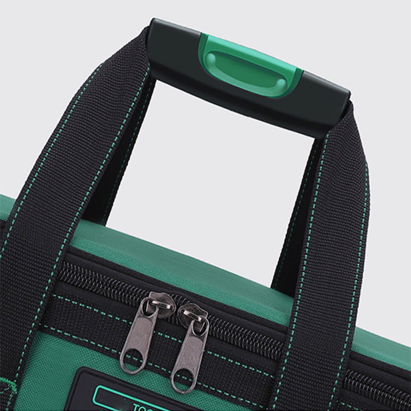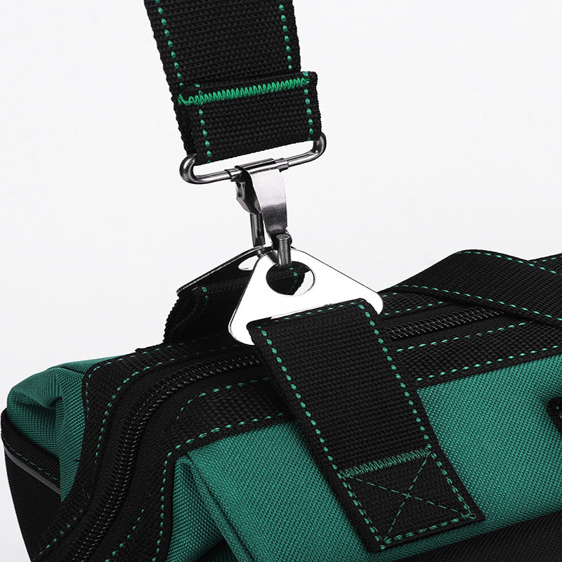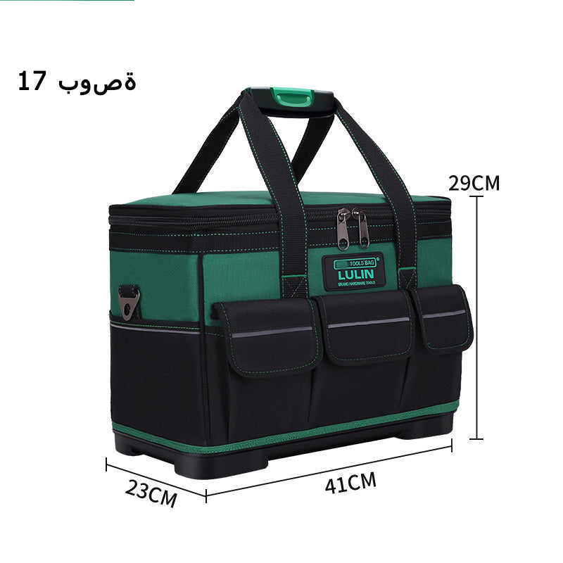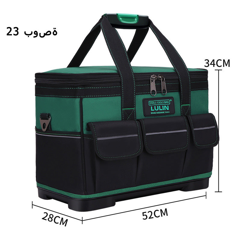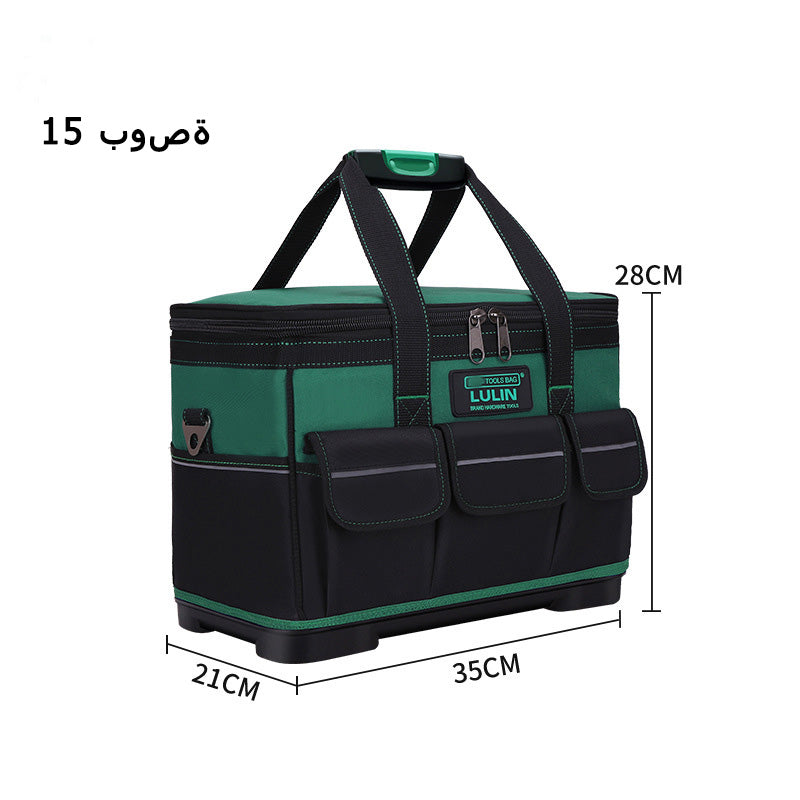 حقيبة أدوات متينة مصممة للرجال الذين يحتاجون إلى تنظيم أدواتهم بشكل فعال. مصنوعة من مادة مقاومة للماء، تحمي الأدوات بشكل فعال من الرطوبة والعناصر الخارجية. تتميز بحزام كتف قابل للتعديل لراحة أكبر في الحمل، وتحتوي على جيوب متعددة ومقصورات داخلية لتسهيل التخزين المصنف والوصول السريع.