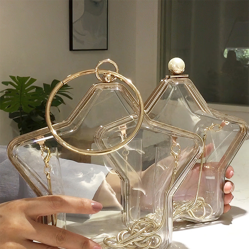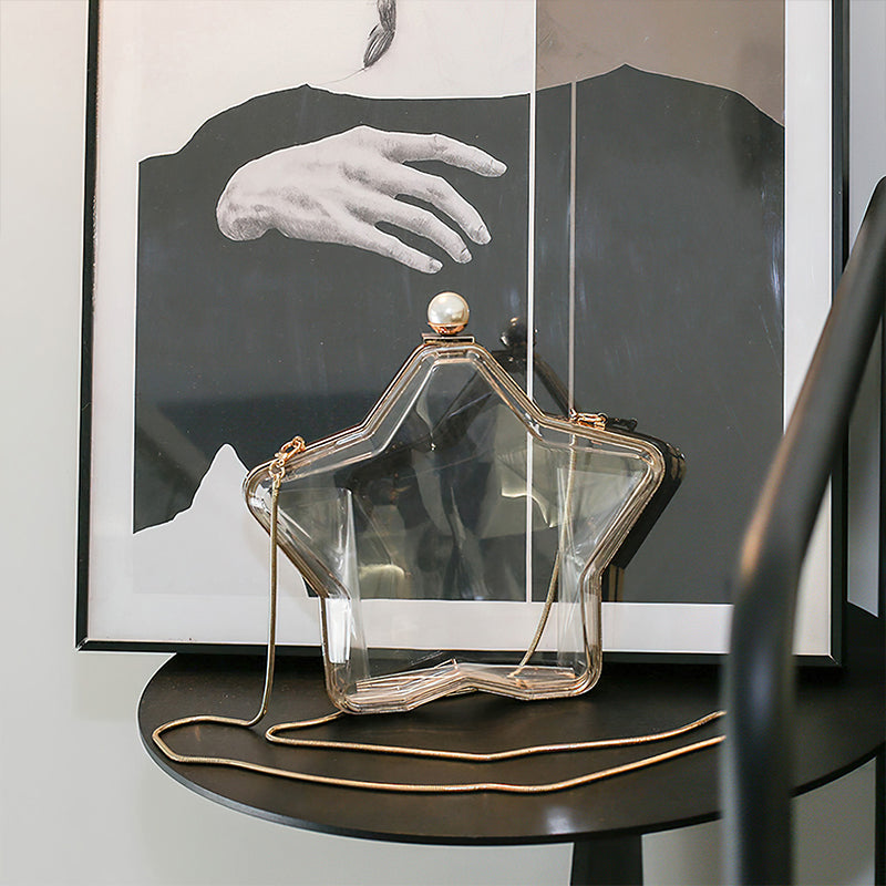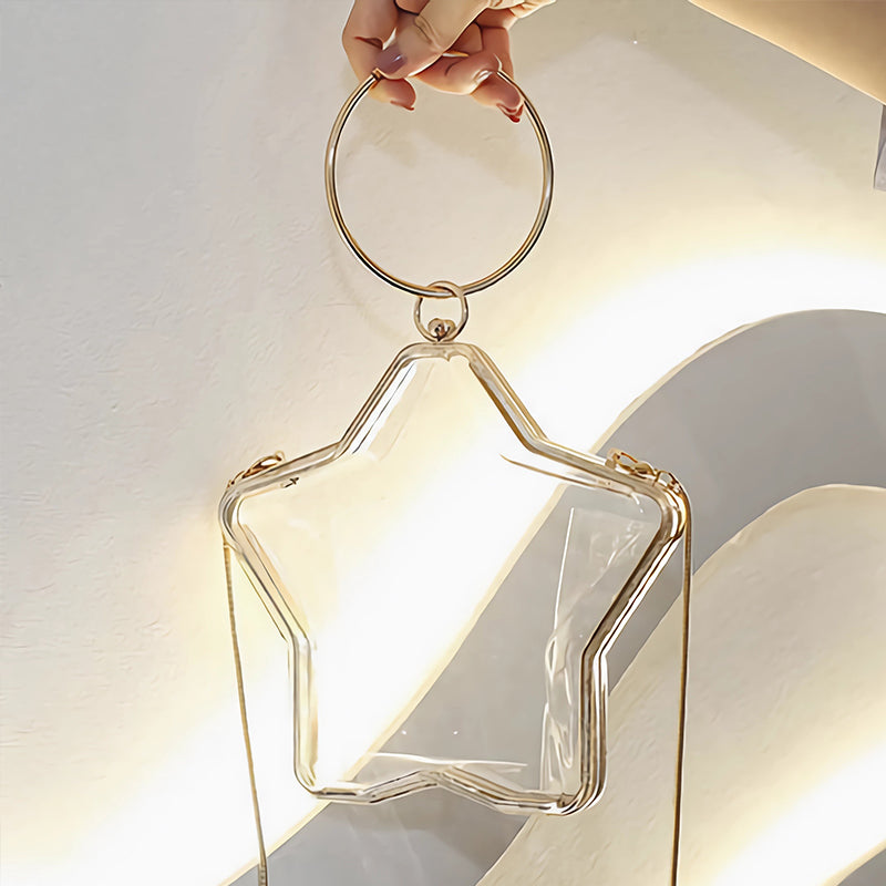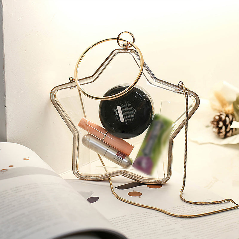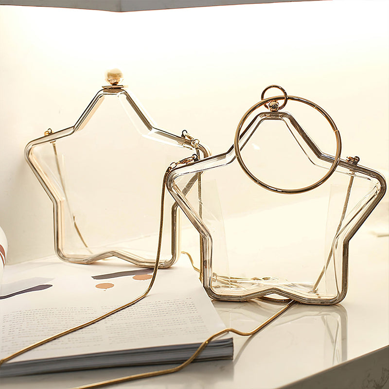 حقيبة يد نسائية شفافة من الأكريليك على شكل نجمة مع حزام سلسلة