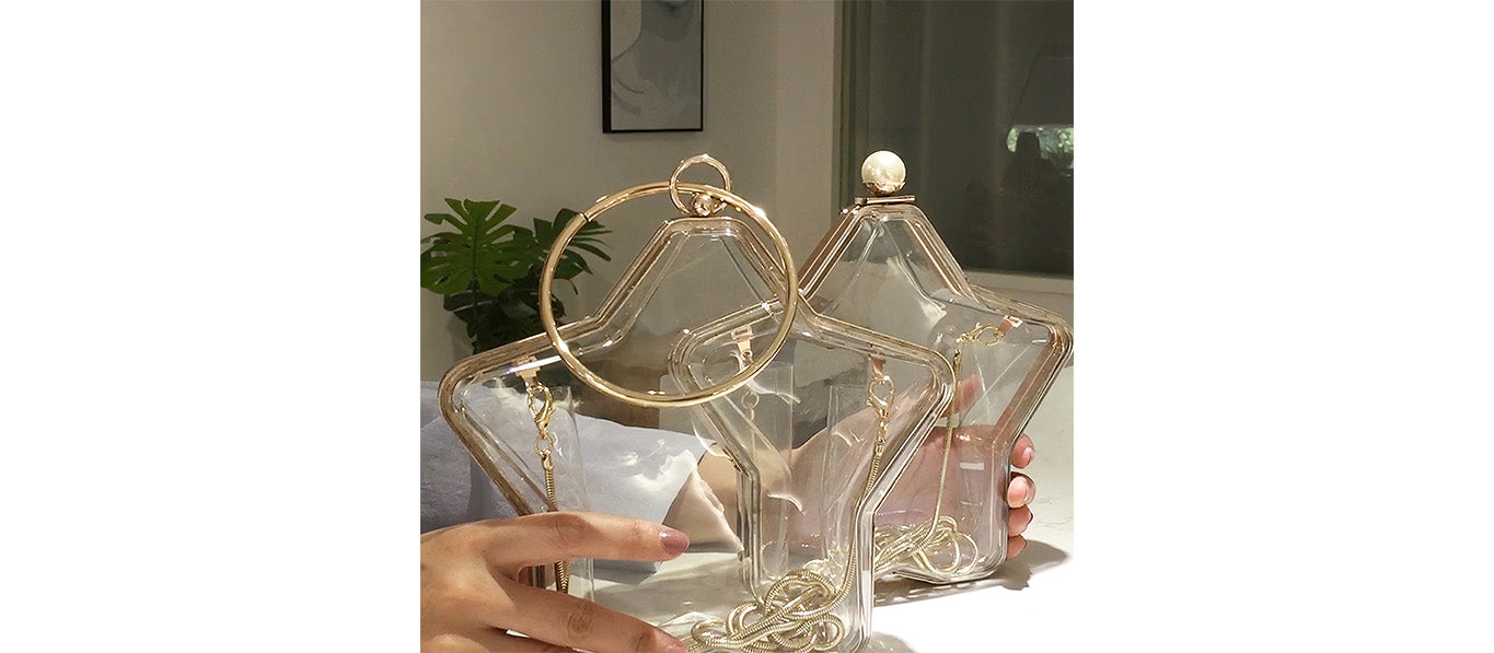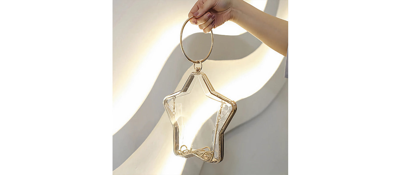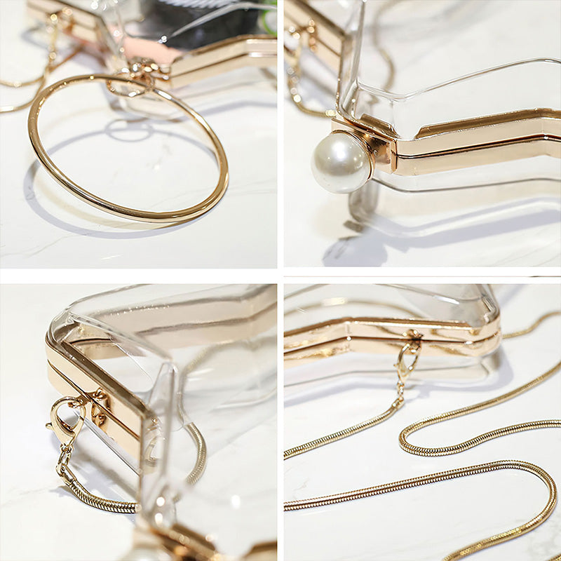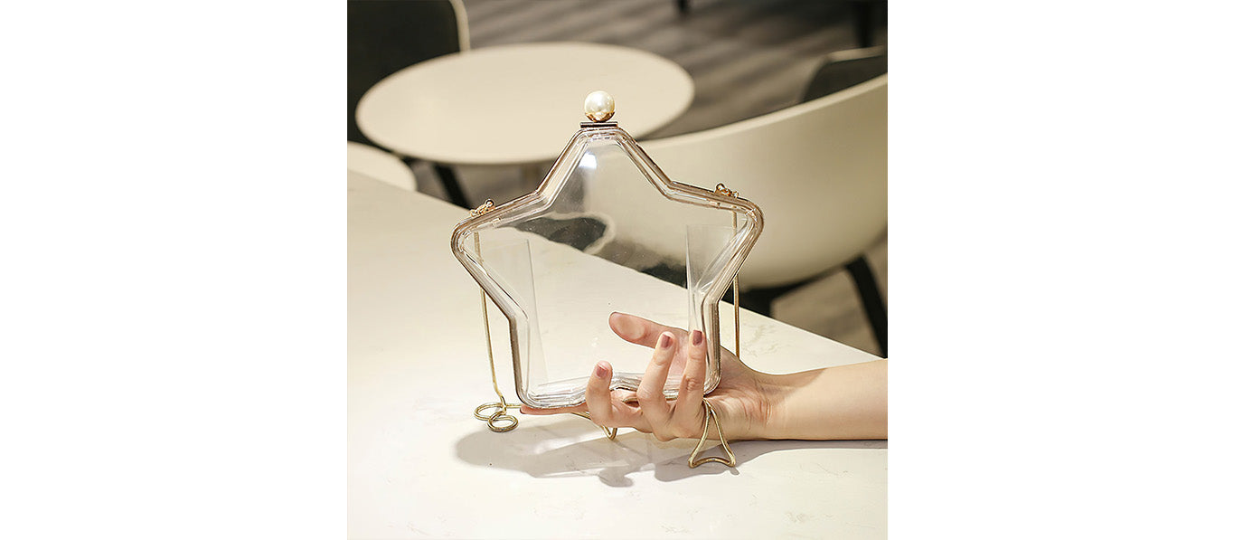 حقيبة يد نسائية شفافة من الأكريليك على شكل نجمة مع حزام سلسلة