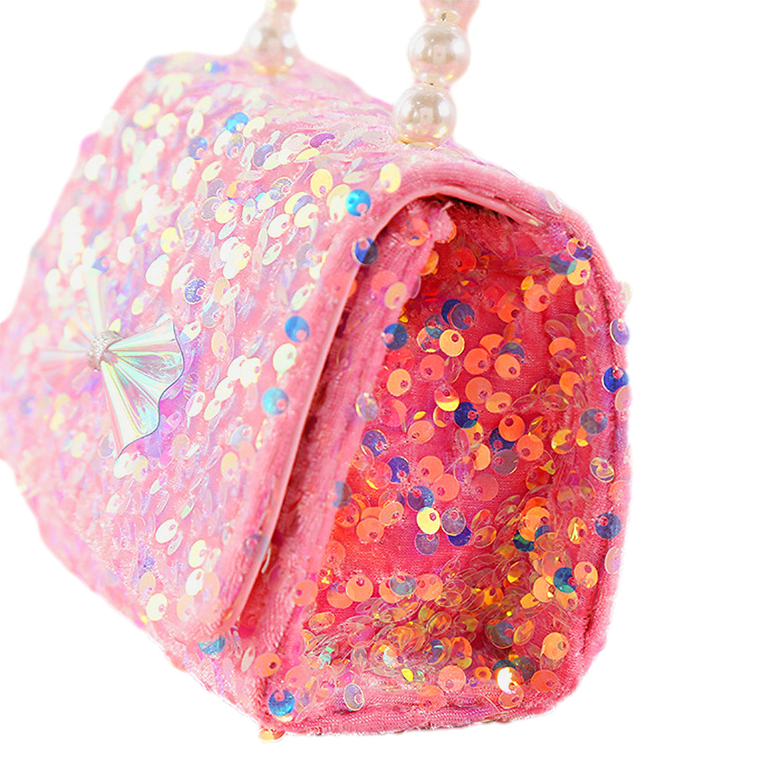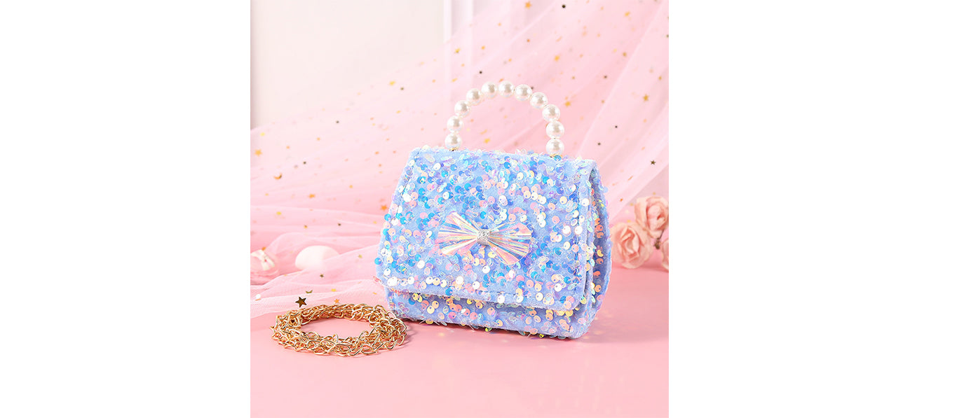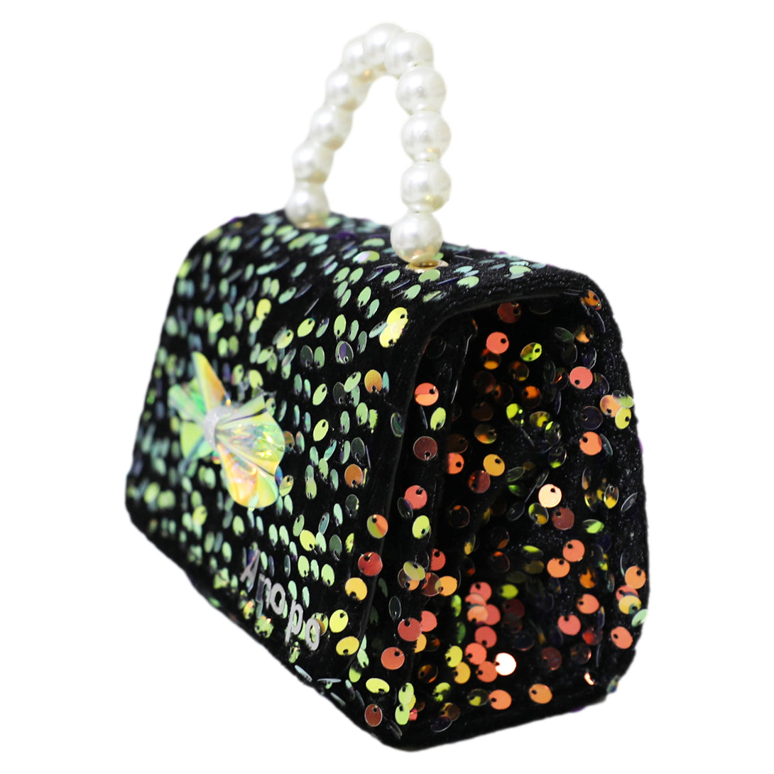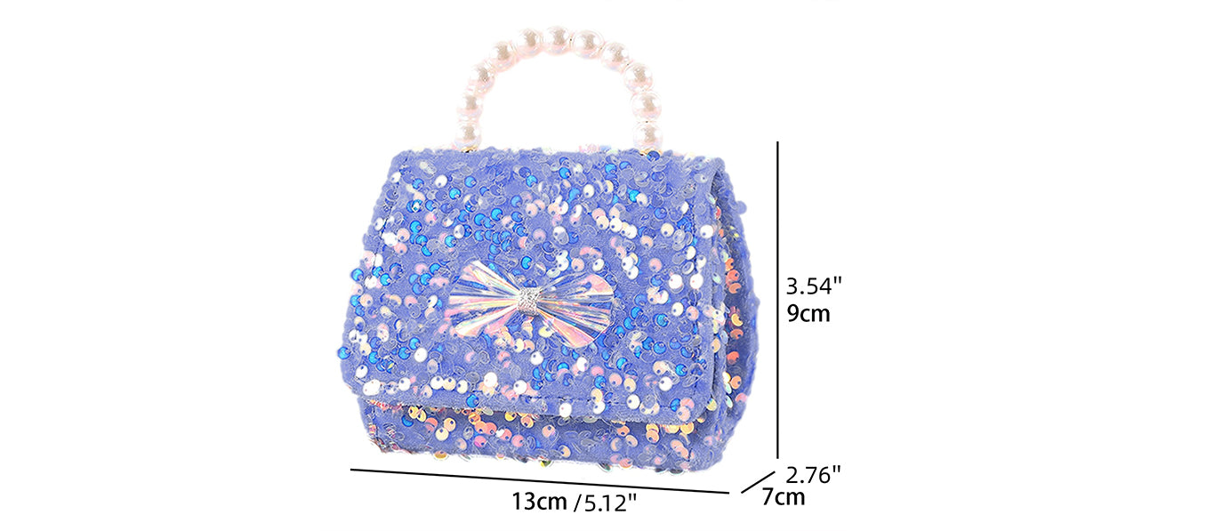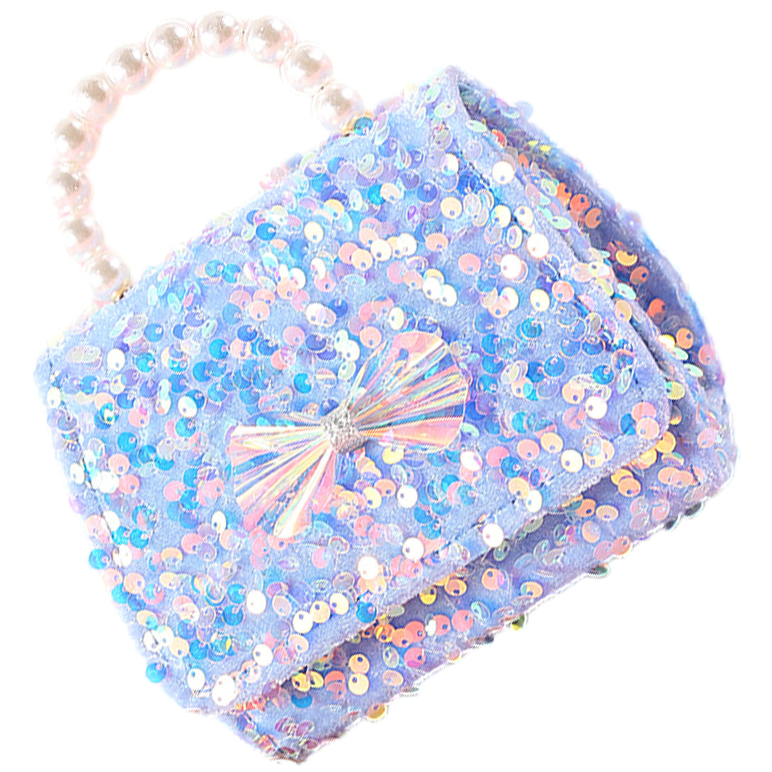 حقيبة يد صغيرة لامعة مصممة خصيصًا للفتيات الصغيرات، مزينة بزخارف من الترتر.