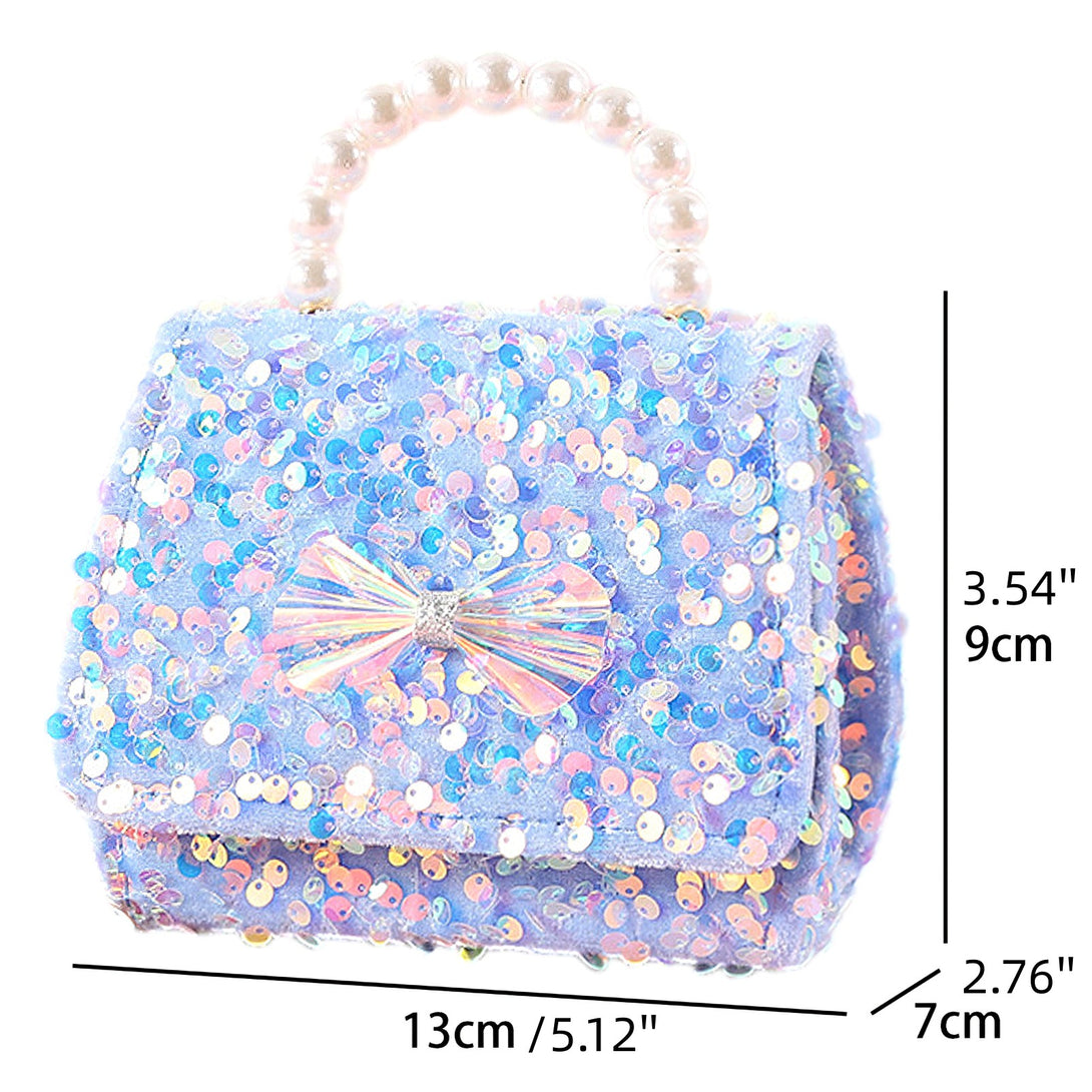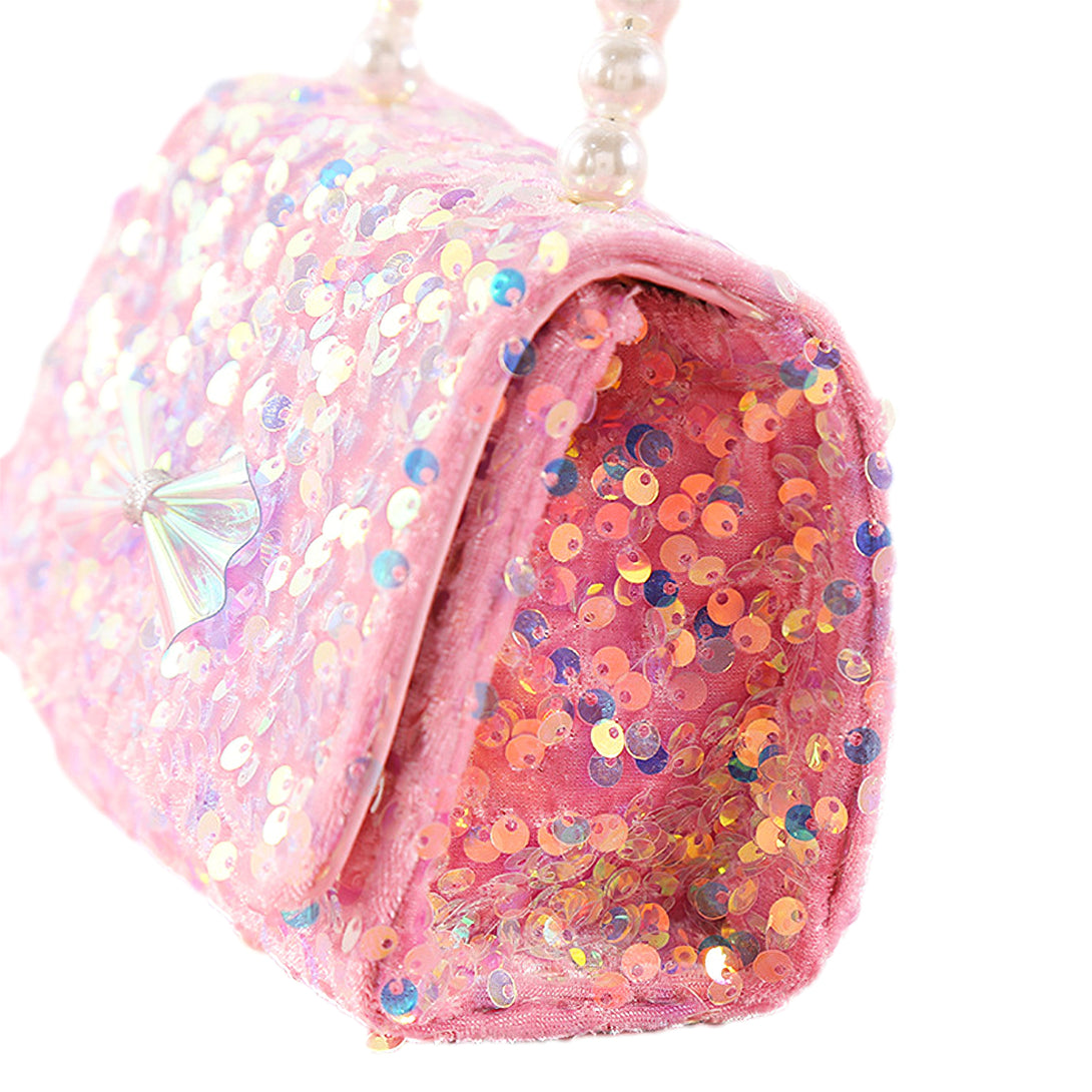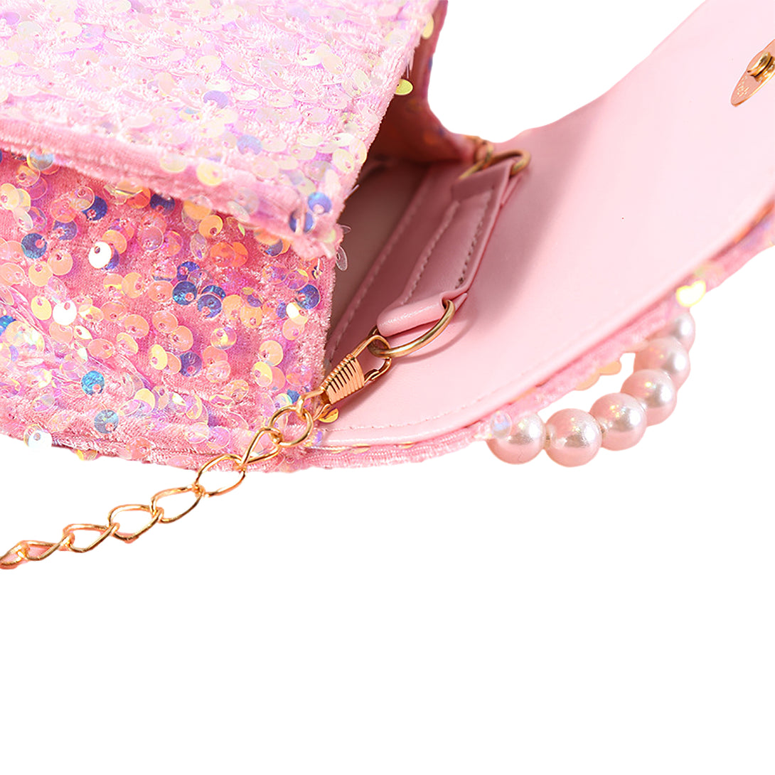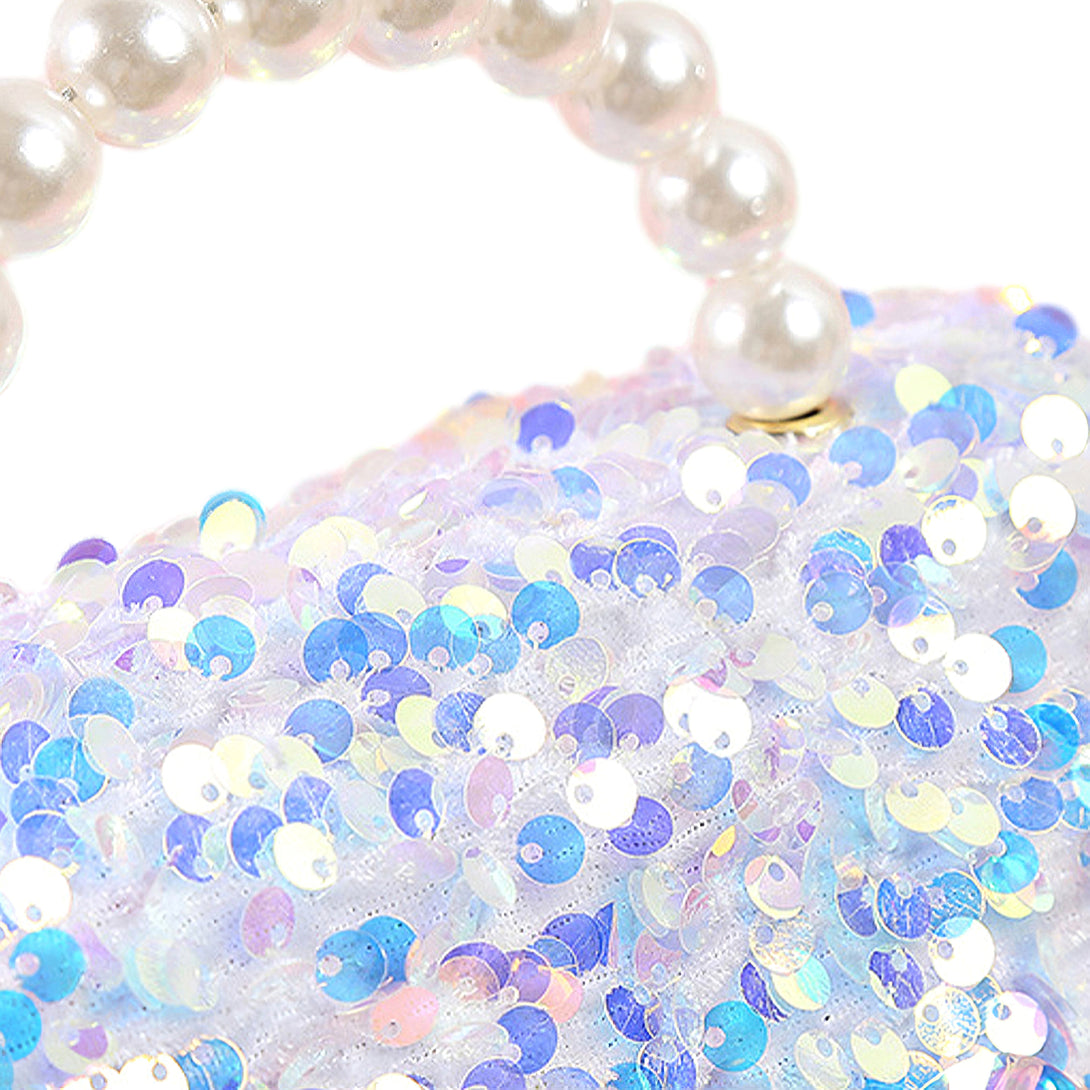 حقيبة يد صغيرة لامعة مصممة خصيصًا للفتيات الصغيرات، مزينة بزخارف من الترتر.