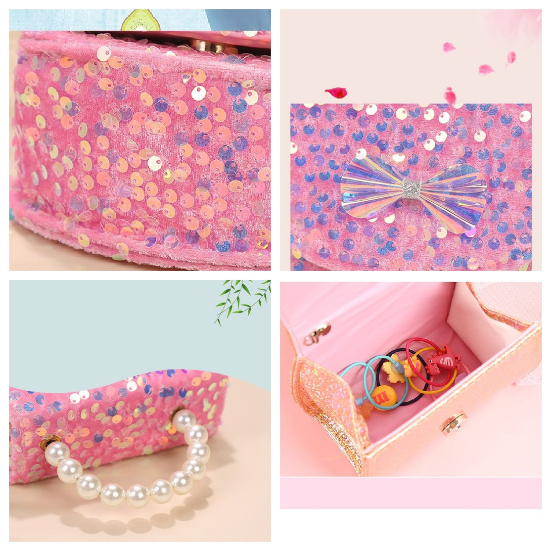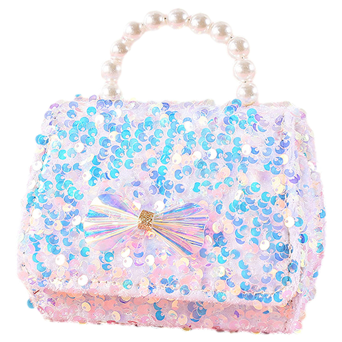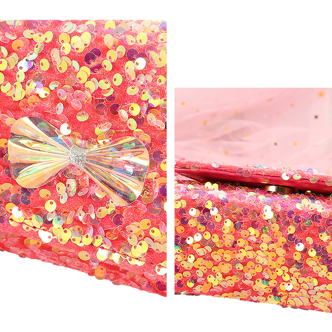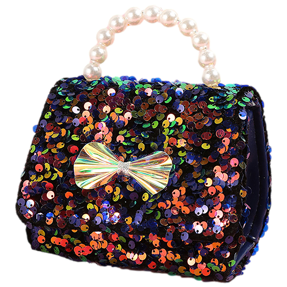 حقيبة يد صغيرة لامعة مصممة خصيصًا للفتيات الصغيرات، مزينة بزخارف من الترتر.