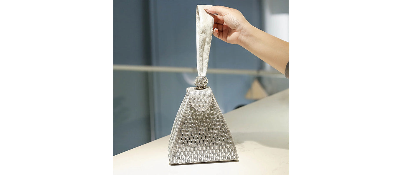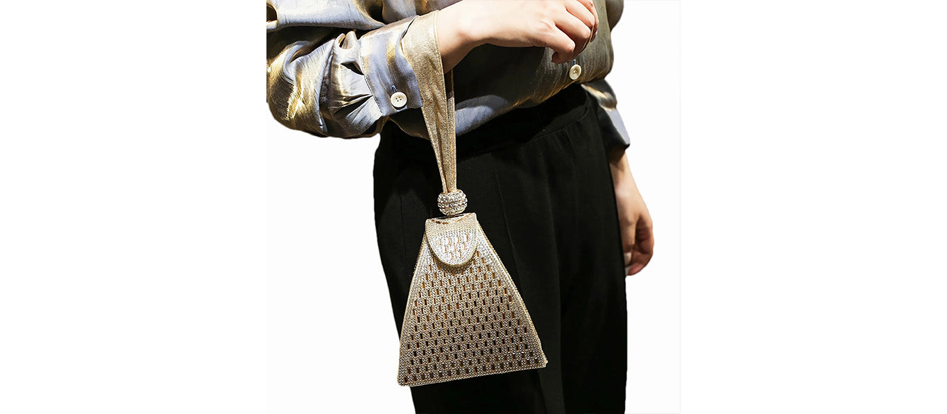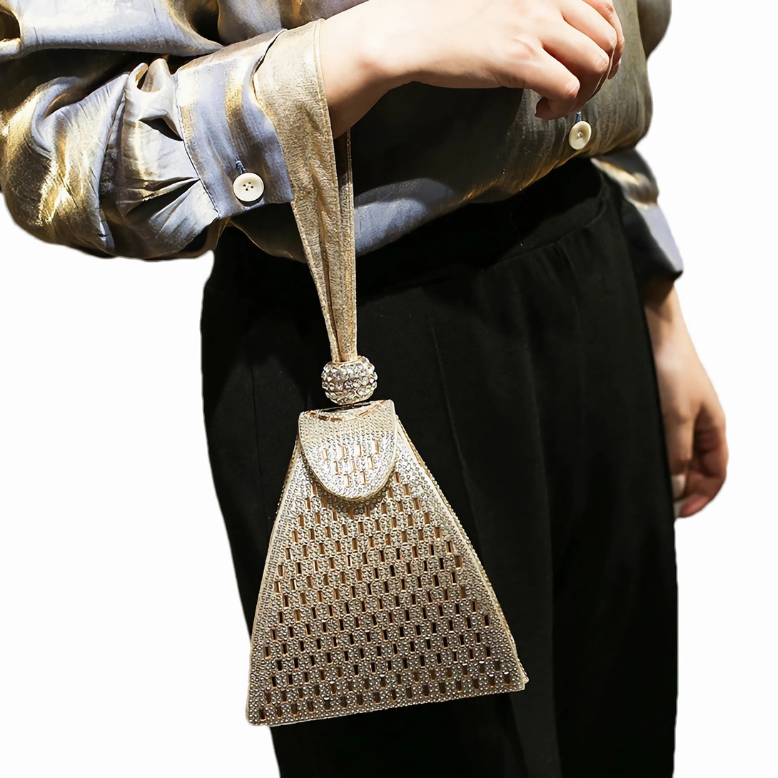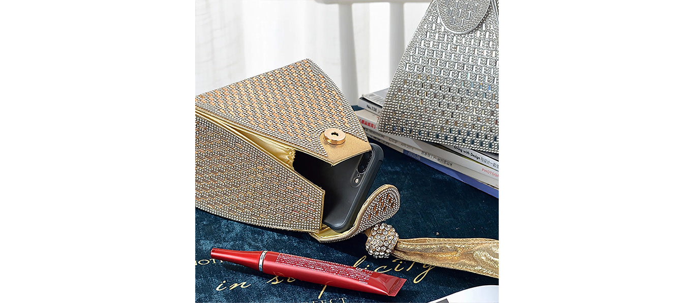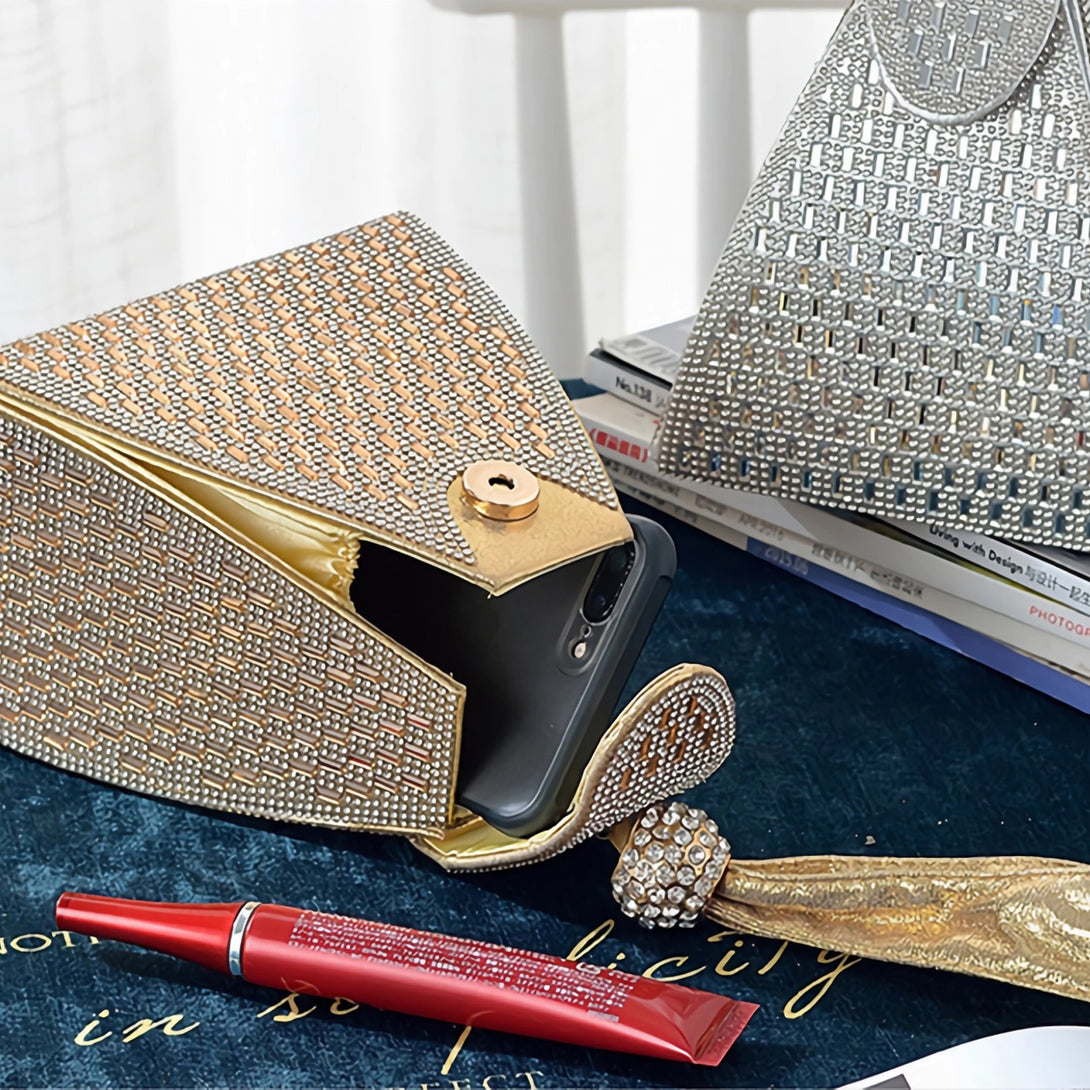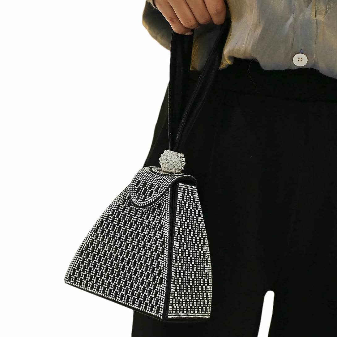 حقيبة يد نسائية مزودة بحزام للمعصم وزخارف كريستالية صغيرة
