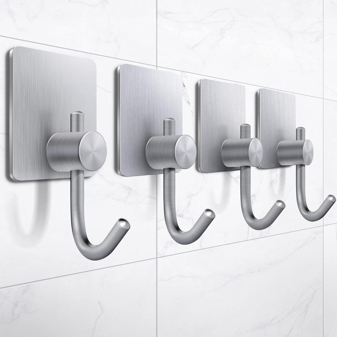 خطافات لاصقة متعددة الوظائف، أربعة في كل عبوة، مصممة خصيصًا لجدران الحمام أو المطبخ، مما يتيح تعليق المناشف والمعاطف بسهولة دون الحاجة إلى الحفر أو أدوات التثبيت المعقدة. تضمن قوتها اللاصقة الاستثنائية التثبيت الآمن على الأسطح المختلفة، مما يوفر حلاً مريحًا وعمليًا وأنيقًا لتنظيم مساحتك.
