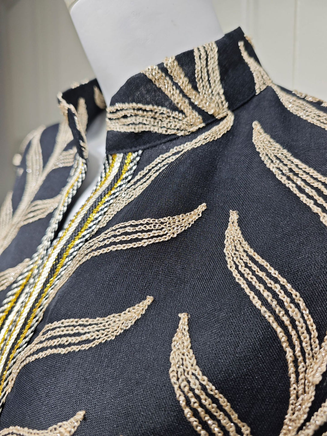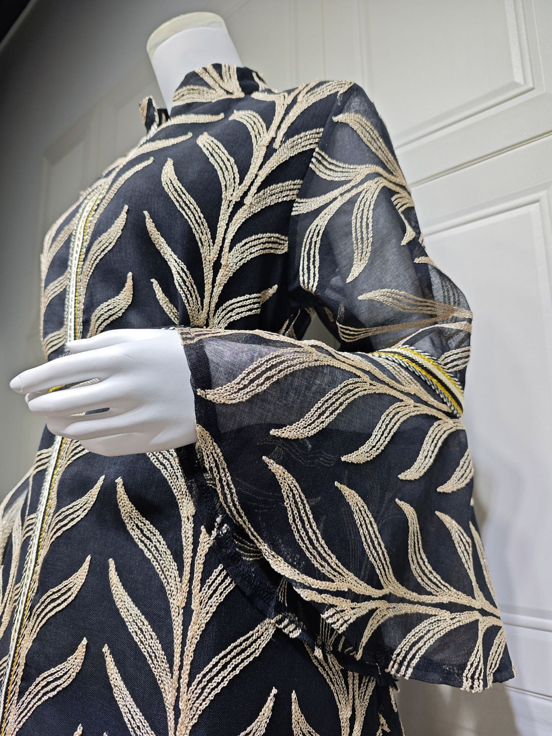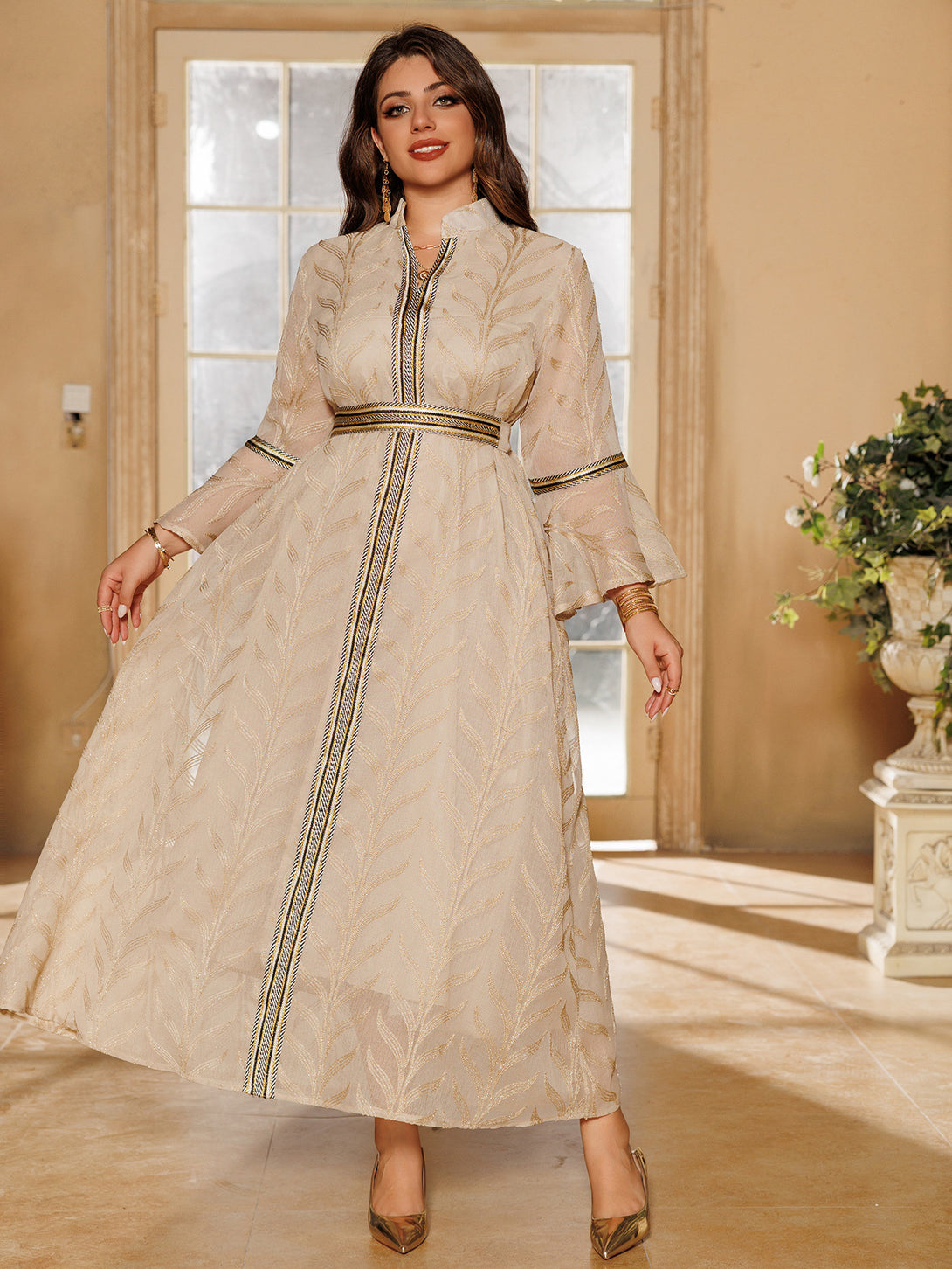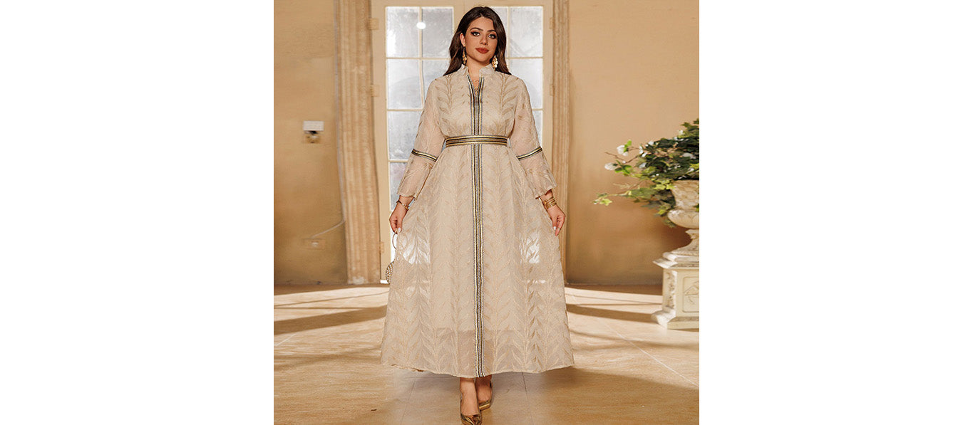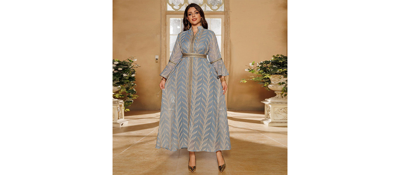 رداء قفطان نسائي أنيق بأكمام واسعة مطرزة مع حزام