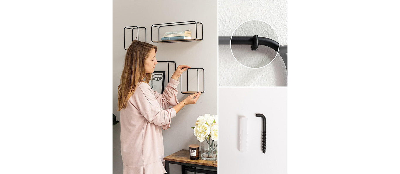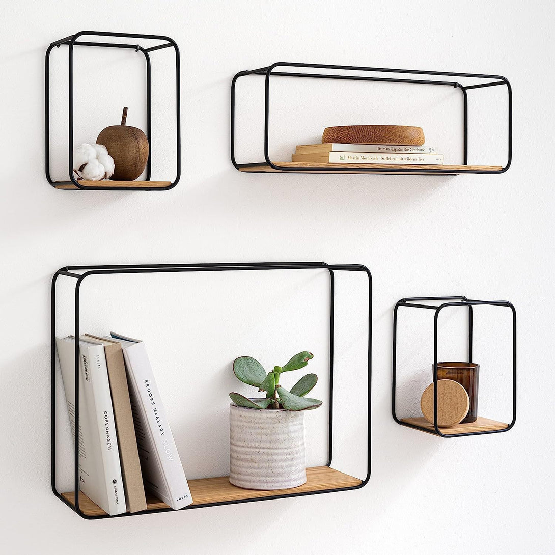 رف عائم للتخزين على الحائط أرفف معدنية معلقة مزخرفة للتخزين على الحائط 4 قطع