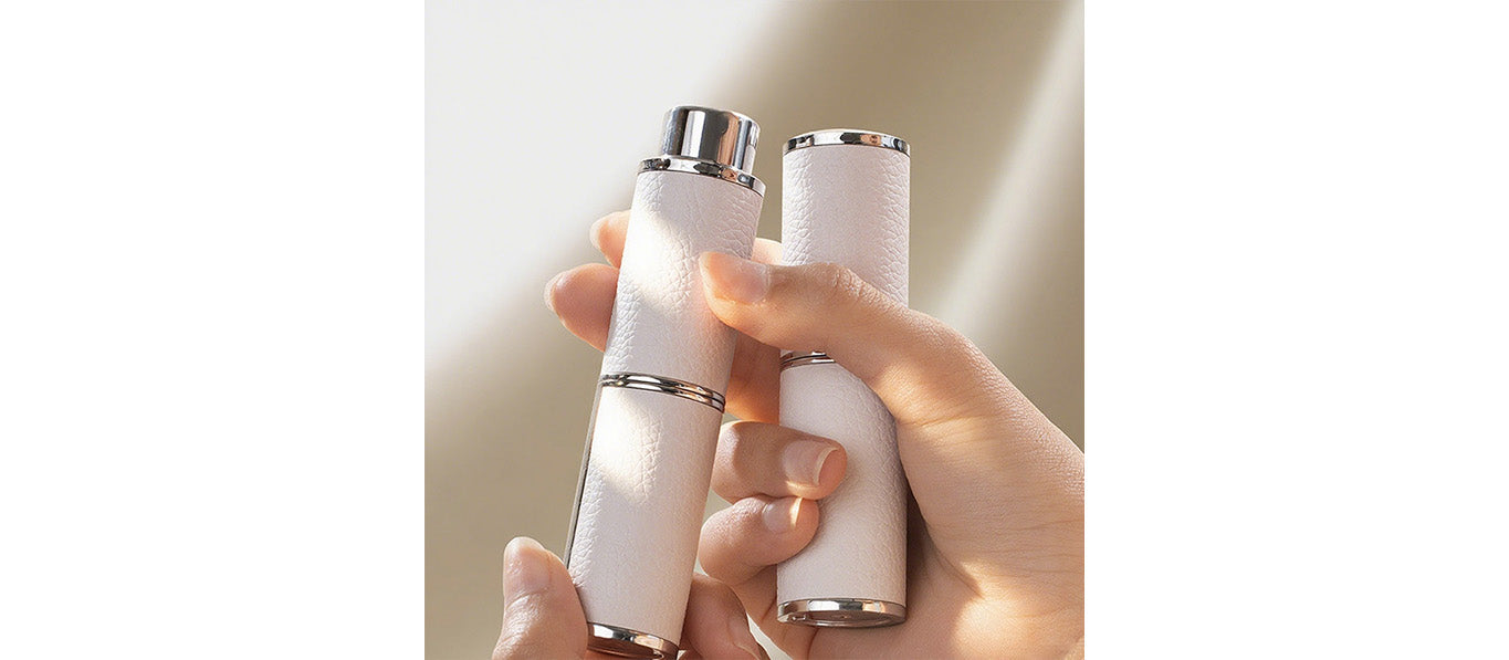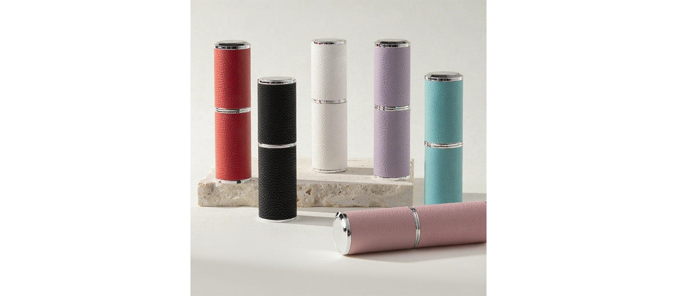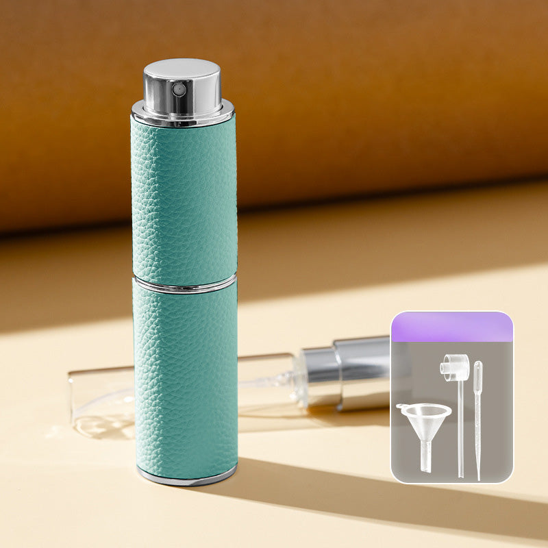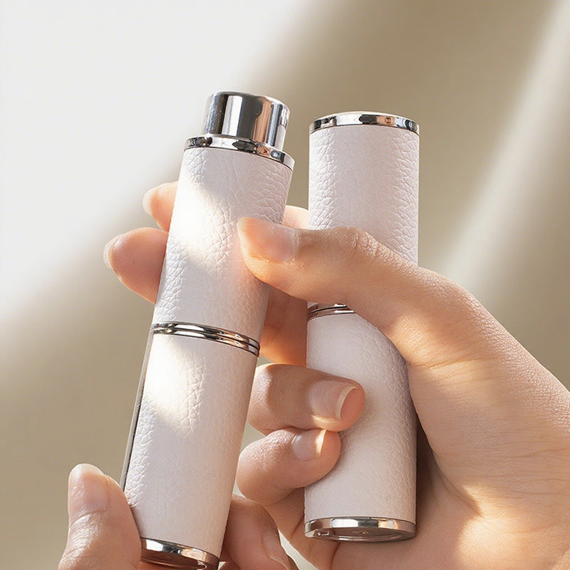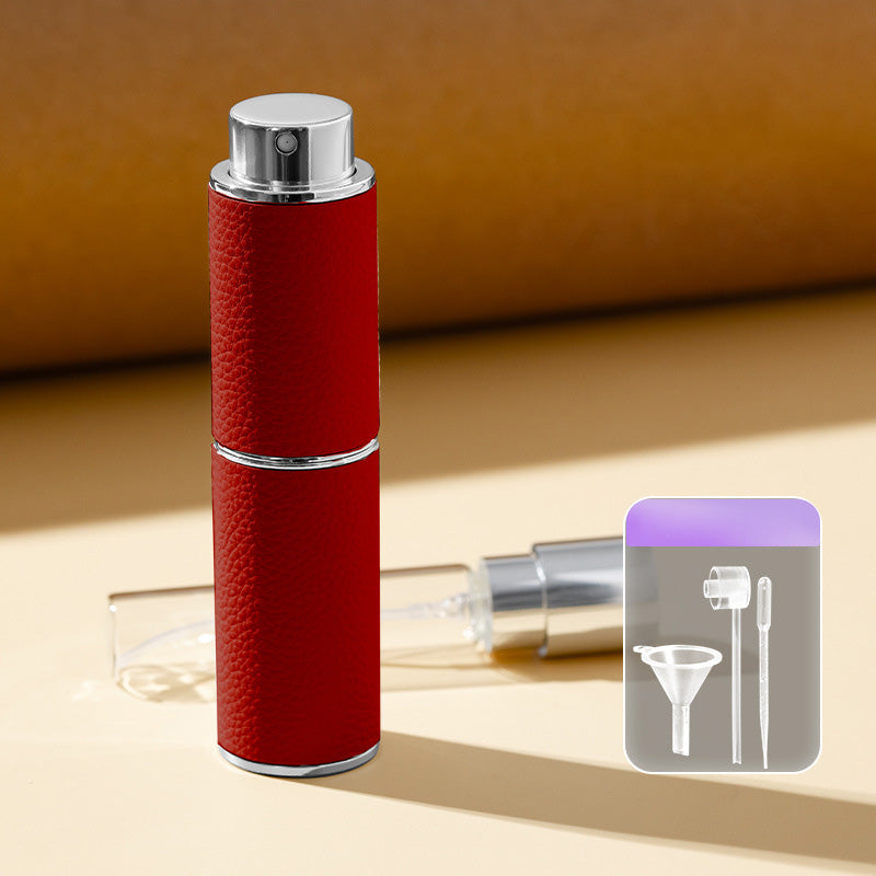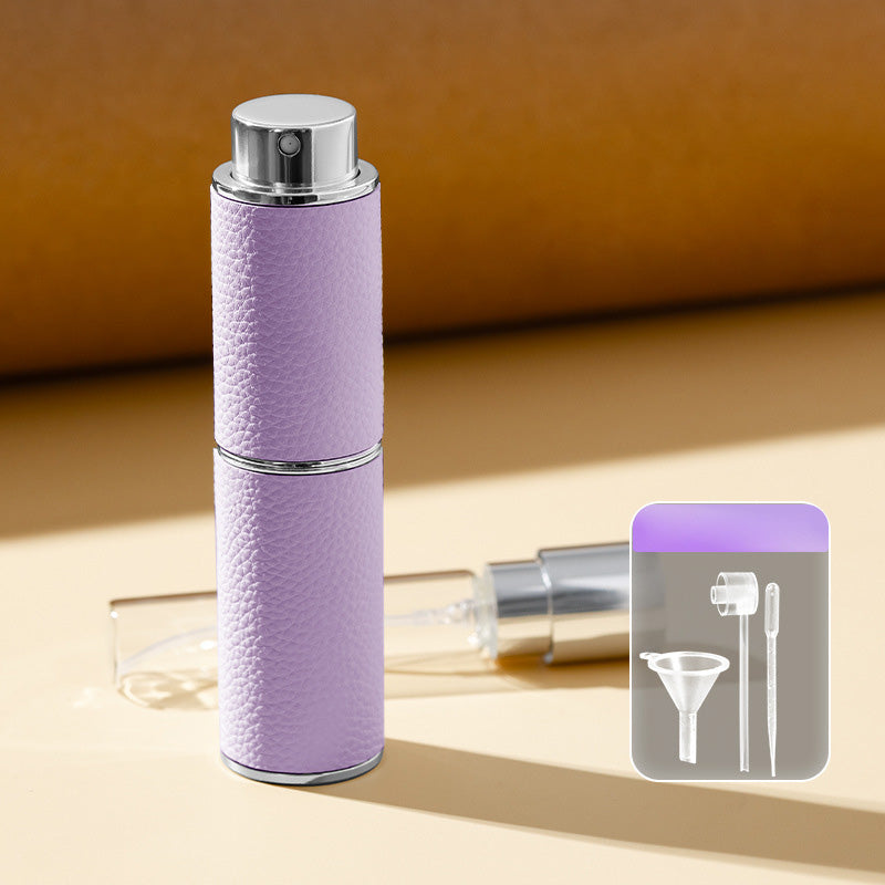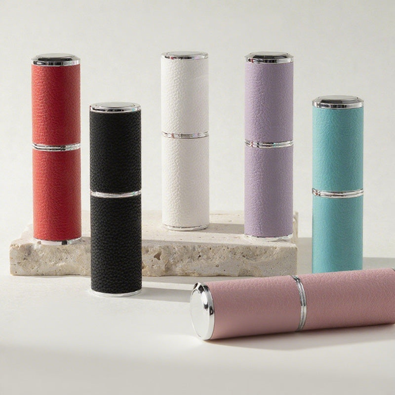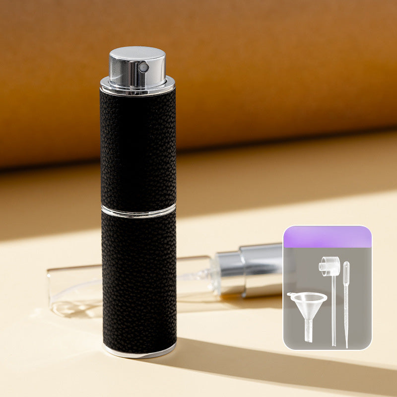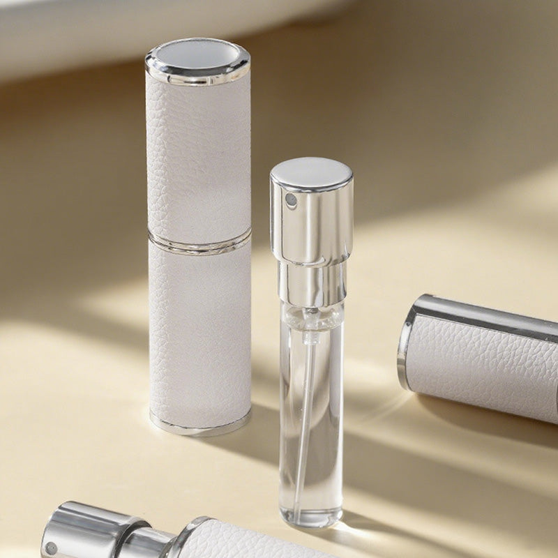 زجاجة عطر جلدية سعة 8 مل مصممة للرجال والنساء على حد سواء، مما يسهل إعادة تعبئتها بالعطر. مثالية للاستخدام اليومي والسفر.