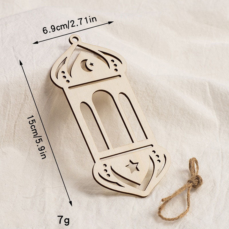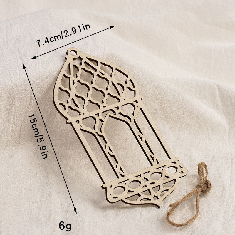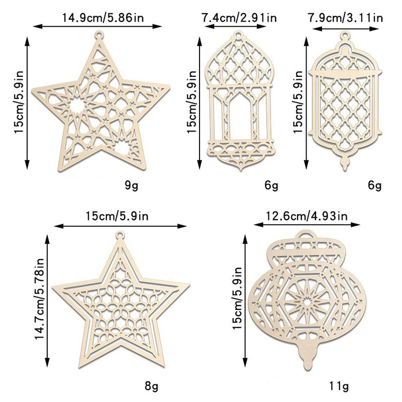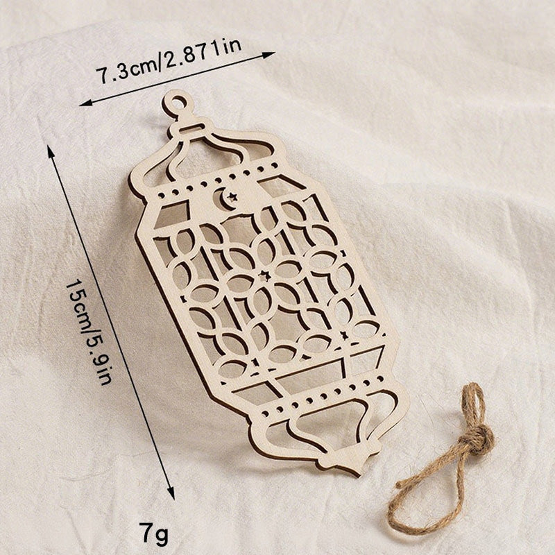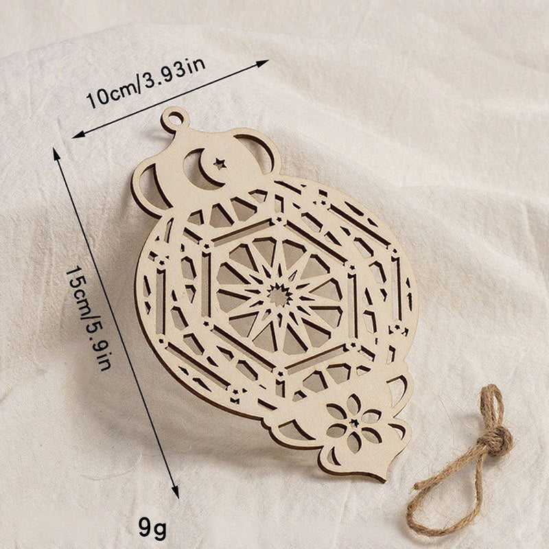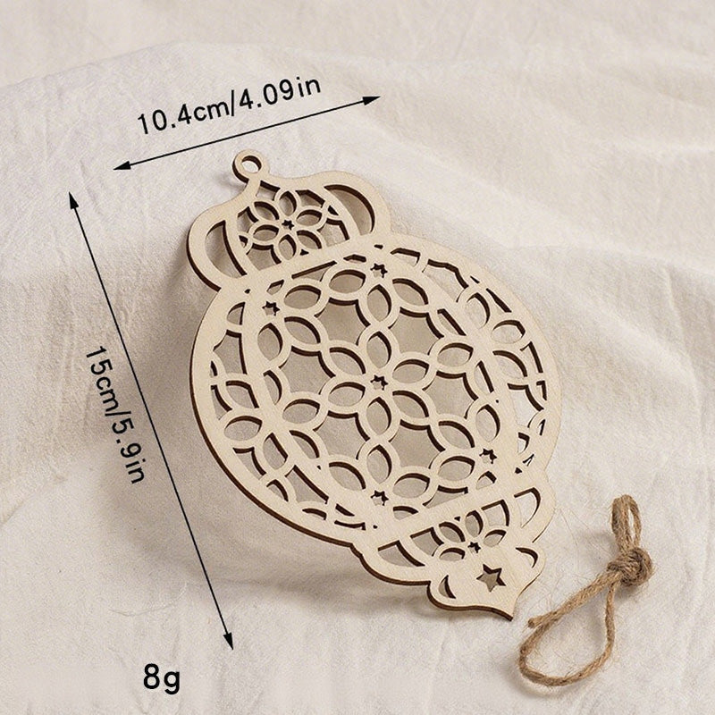 تضفي زخارف عيد الفطر الخشبية المعلقة على الجدران لمسة من الأناقة التقليدية على ديكور رمضان. صممت بعناية لتعزيز البهجة الاحتفالية، ويمكن تعليقها على الجدران أو المداخل أو إطارات النوافذ لتزيين المنازل أو أماكن الحفلات.