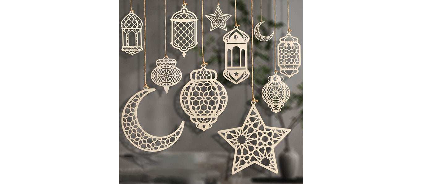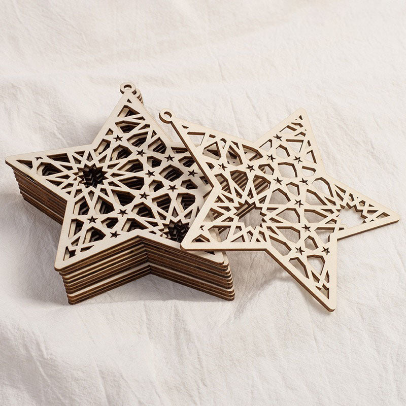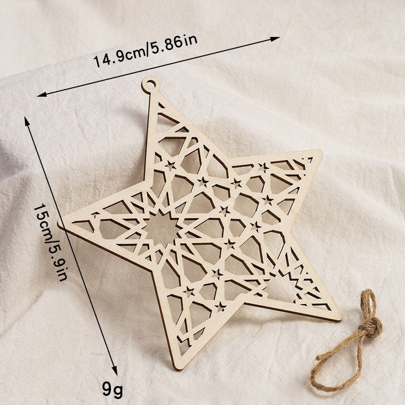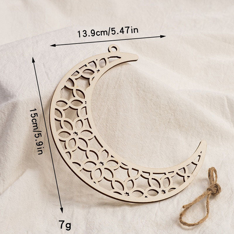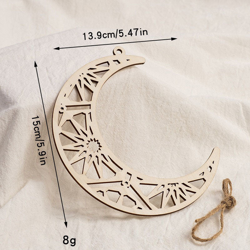 تضفي زخارف عيد الفطر الخشبية المعلقة على الجدران لمسة من الأناقة التقليدية على ديكور رمضان. صممت بعناية لتعزيز البهجة الاحتفالية، ويمكن تعليقها على الجدران أو المداخل أو إطارات النوافذ لتزيين المنازل أو أماكن الحفلات.