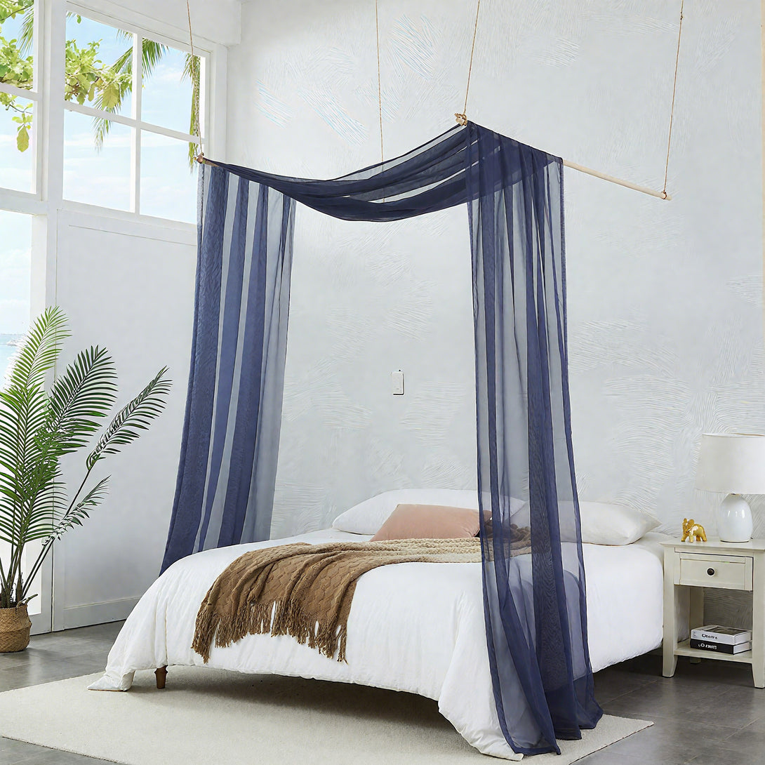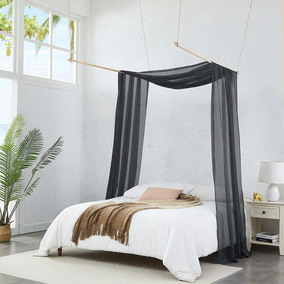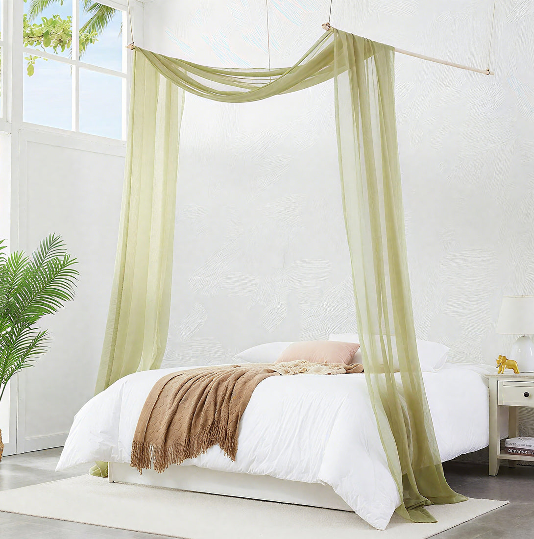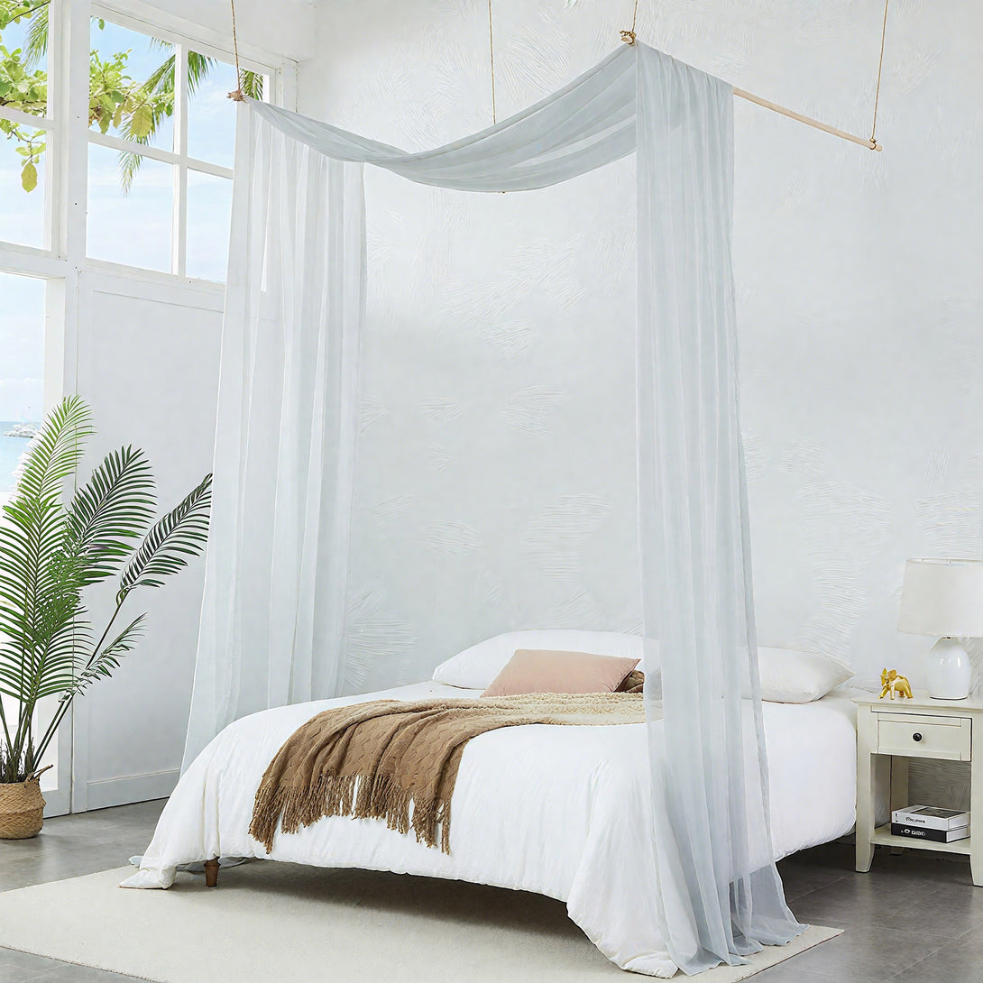 تسمح قماش هذه الستائر الشفاف بمرور الضوء الطبيعي مع الحفاظ على الخصوصية، مما يخلق جوًا هادئًا وأنيقًا في غرفة النوم. يمكن استخدام هذا النمط كستارة للسرير أو ستارة على نافذة مقوسة في حفل زفاف، مما يضفي لمسة من الرومانسية والعملية.