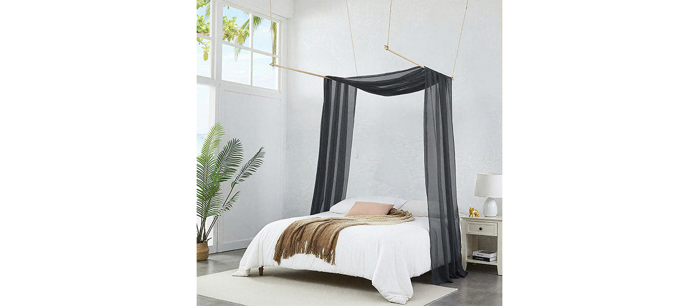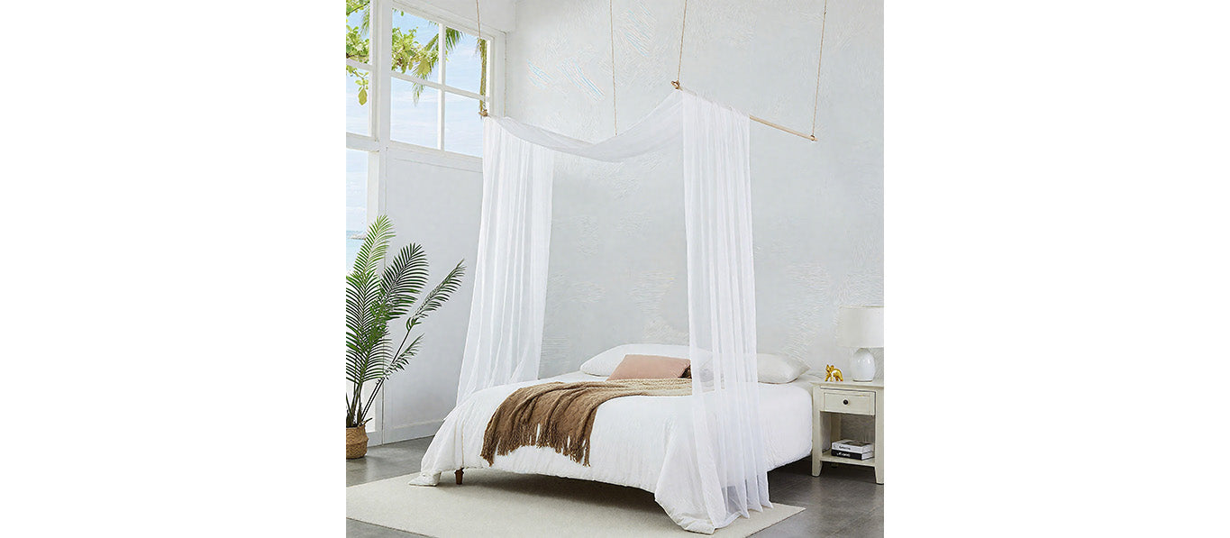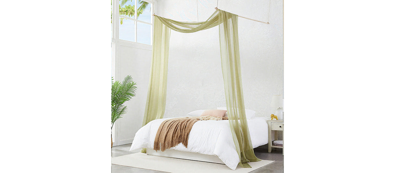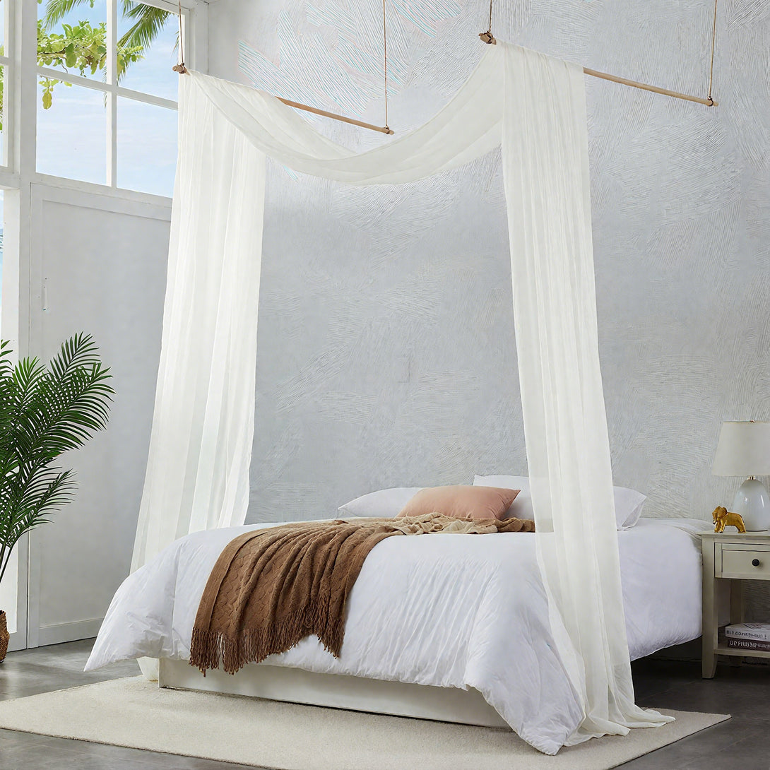 تسمح قماش هذه الستائر الشفاف بمرور الضوء الطبيعي مع الحفاظ على الخصوصية، مما يخلق جوًا هادئًا وأنيقًا في غرفة النوم. يمكن استخدام هذا النمط كستارة للسرير أو ستارة على نافذة مقوسة في حفل زفاف، مما يضفي لمسة من الرومانسية والعملية.