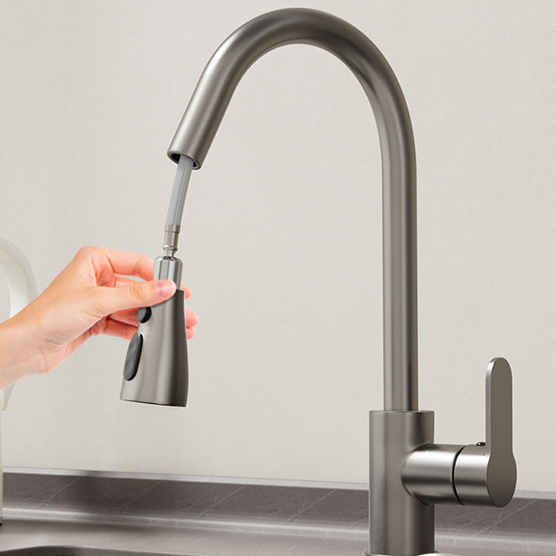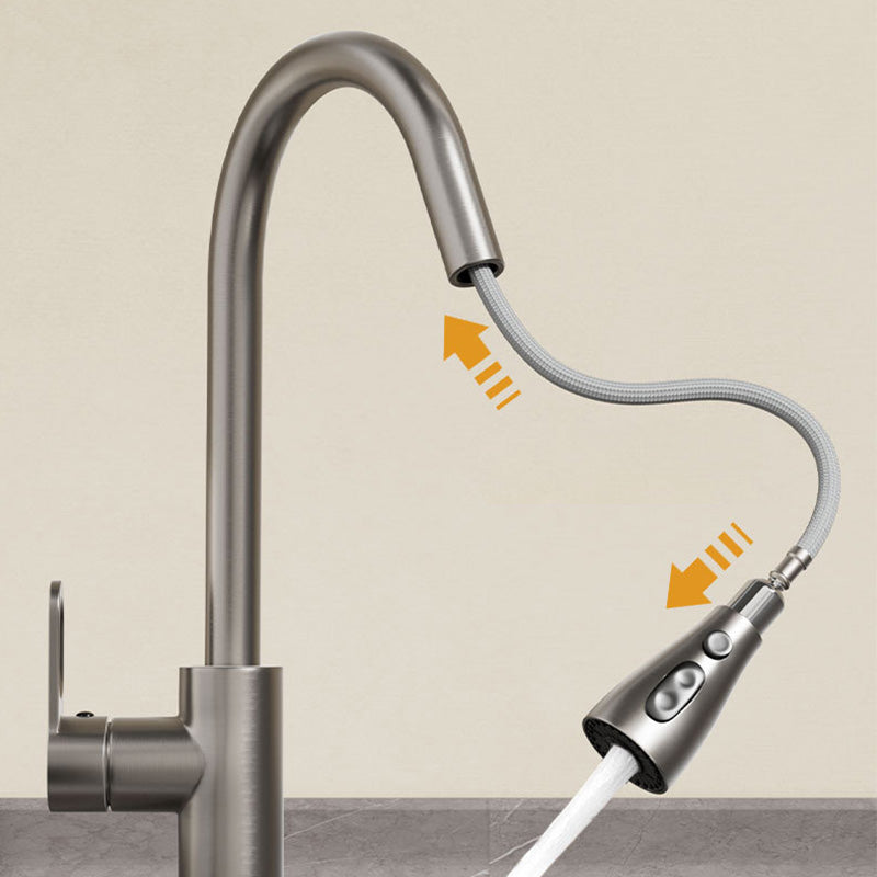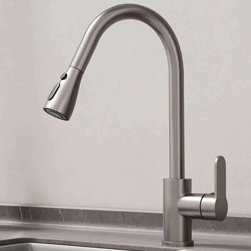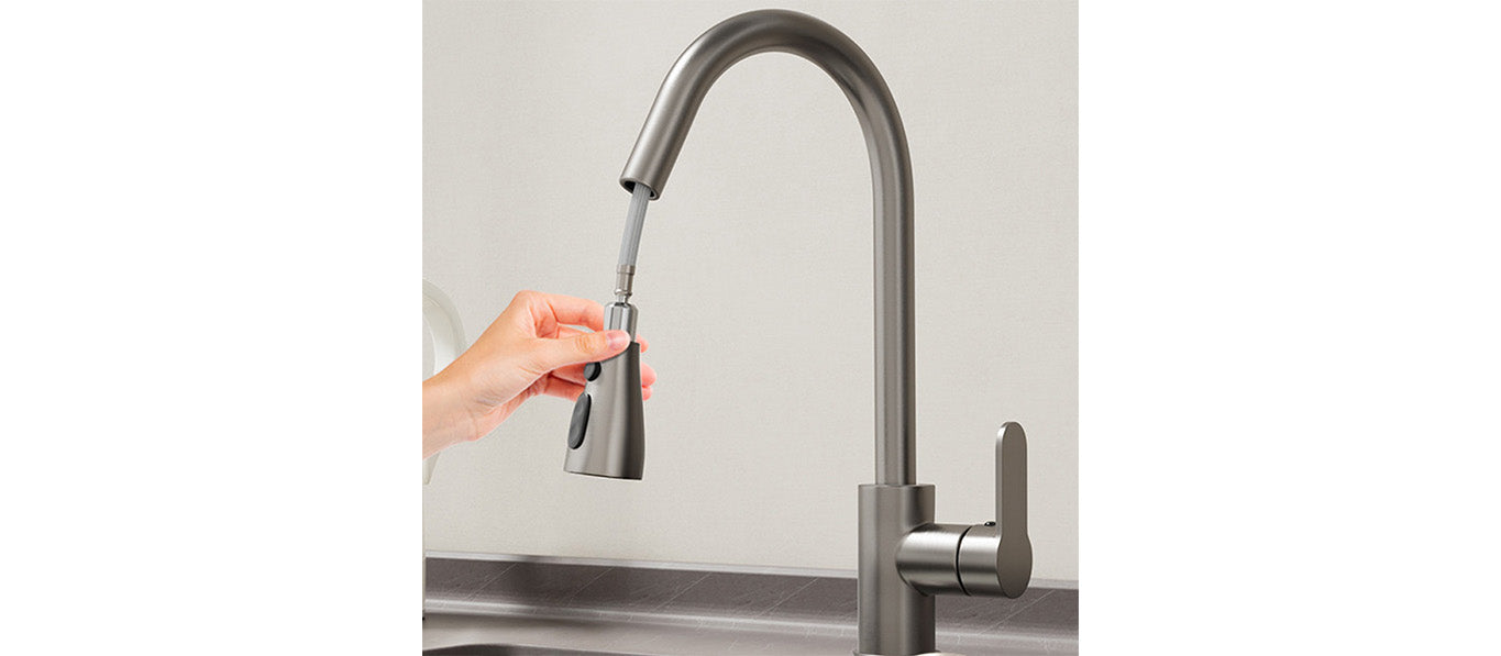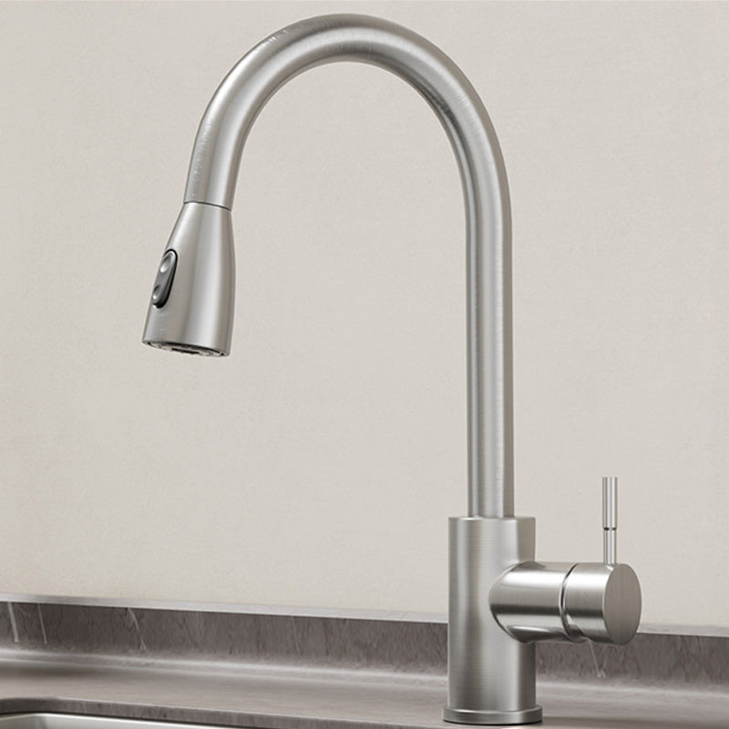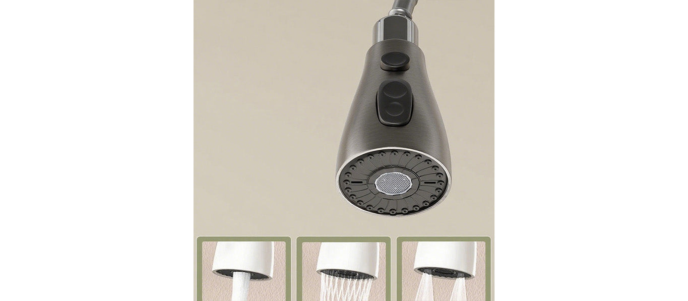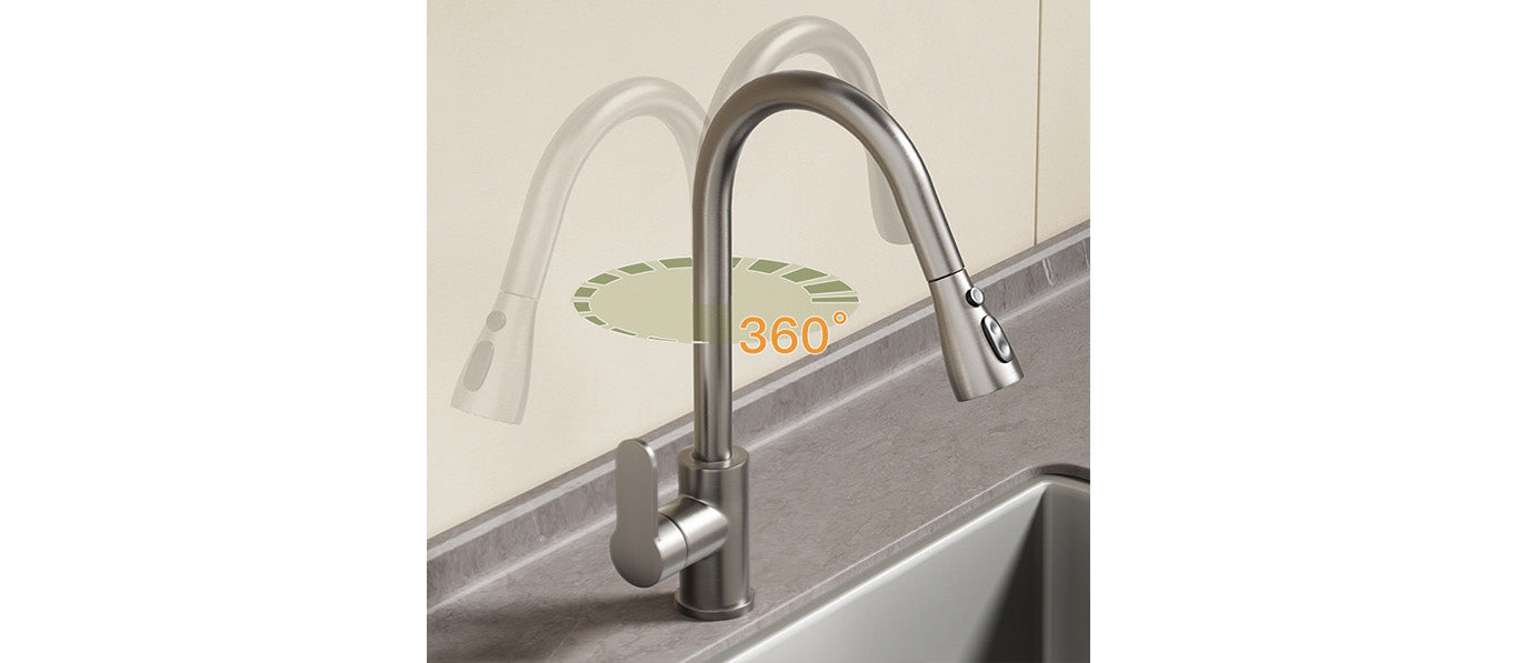 يتميز صنبور المطبخ هذا بهيكل من الفولاذ المقاوم للصدأ المصقول بتصميم مقوس عالي يتيح دورانًا بزاوية 360 درجة لحرية حركة كاملة أثناء الاستخدام. مزود برأس رش قابل للتمديد وشفرات نفاثة عالية الضغط، ينظف أواني الطهي والمنتجات الزراعية بسهولة وكفاءة. ثلاثة أوضاع للرش تلبي متطلبات التنظيف المتنوعة.