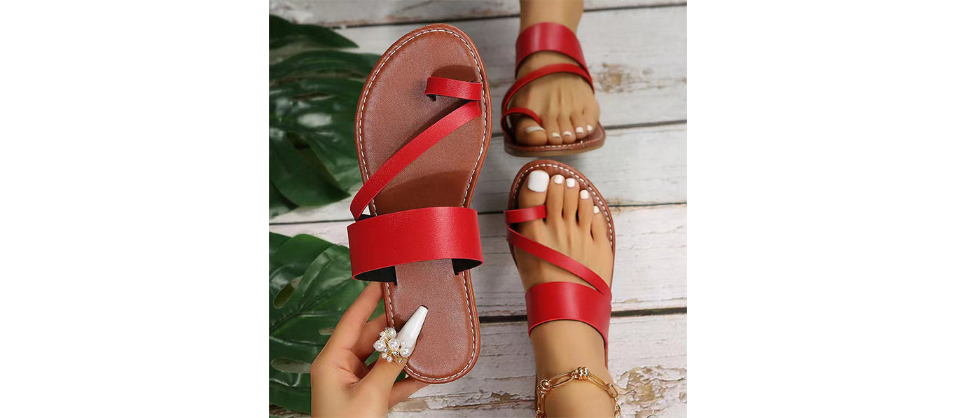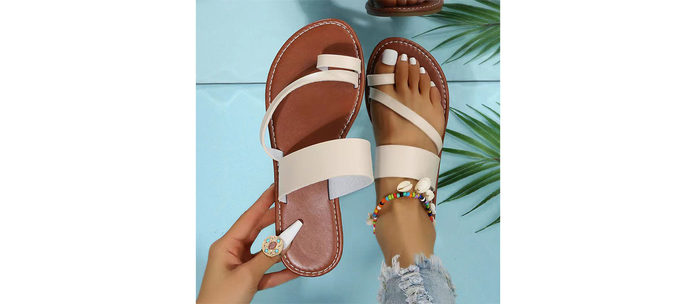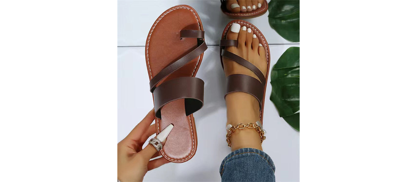 صندل صيفي مسطح للنساء بتصميم مفتوح من الأمام.