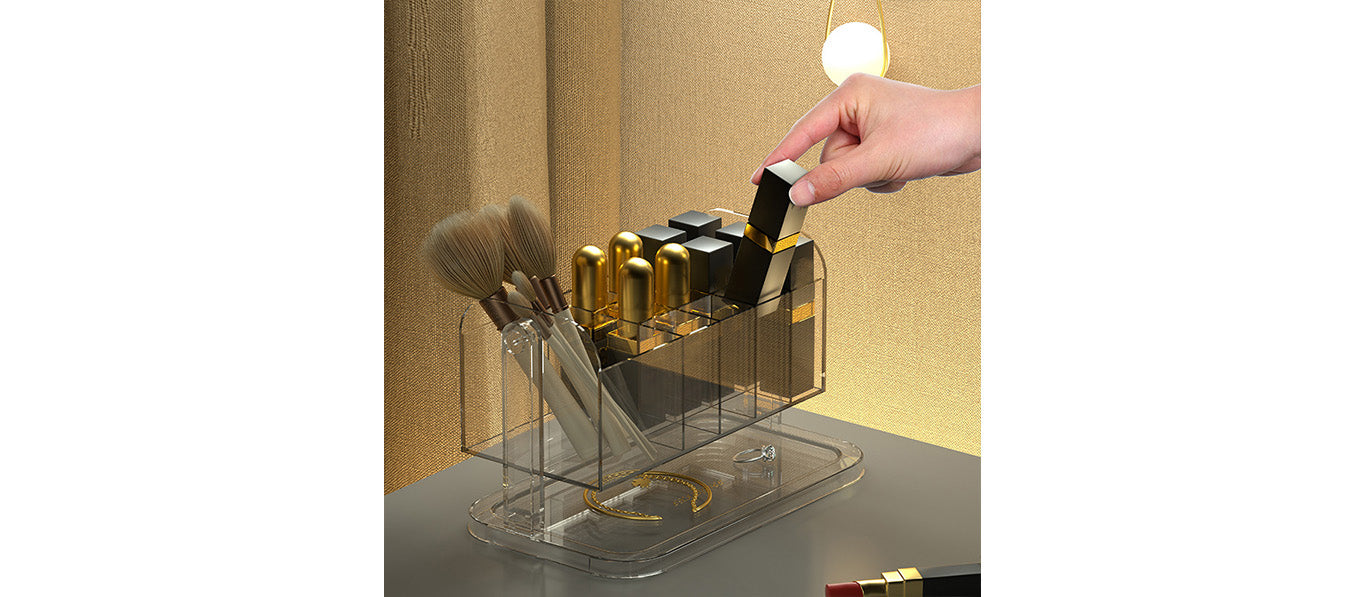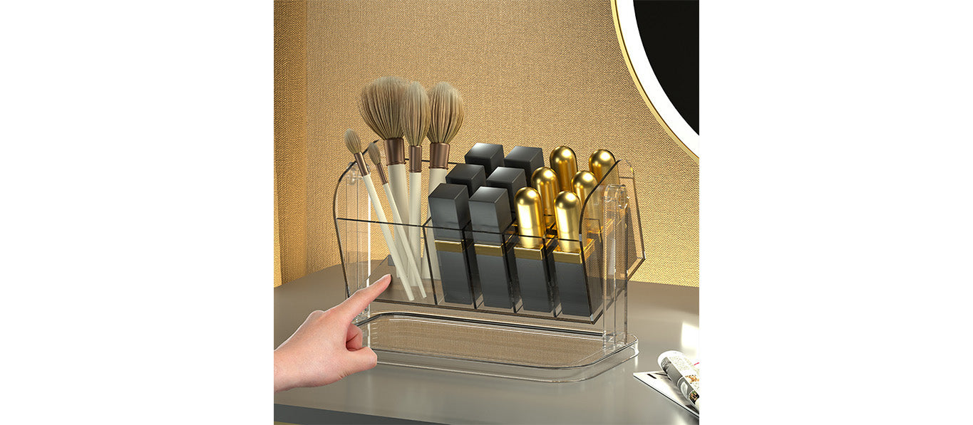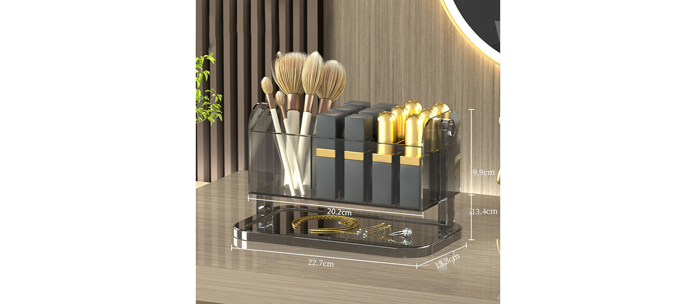 ينظم هذا المنظم التجميلي أدوات المكياج والجمال الخاصة بك بشكل مثالي. يتيح لك تصميمه الواسع تخزين فرش المكياج وظلال العيون ومستحضرات التجميل الأخرى بطريقة منظمة، مما يضمن سهولة الوصول إليها.