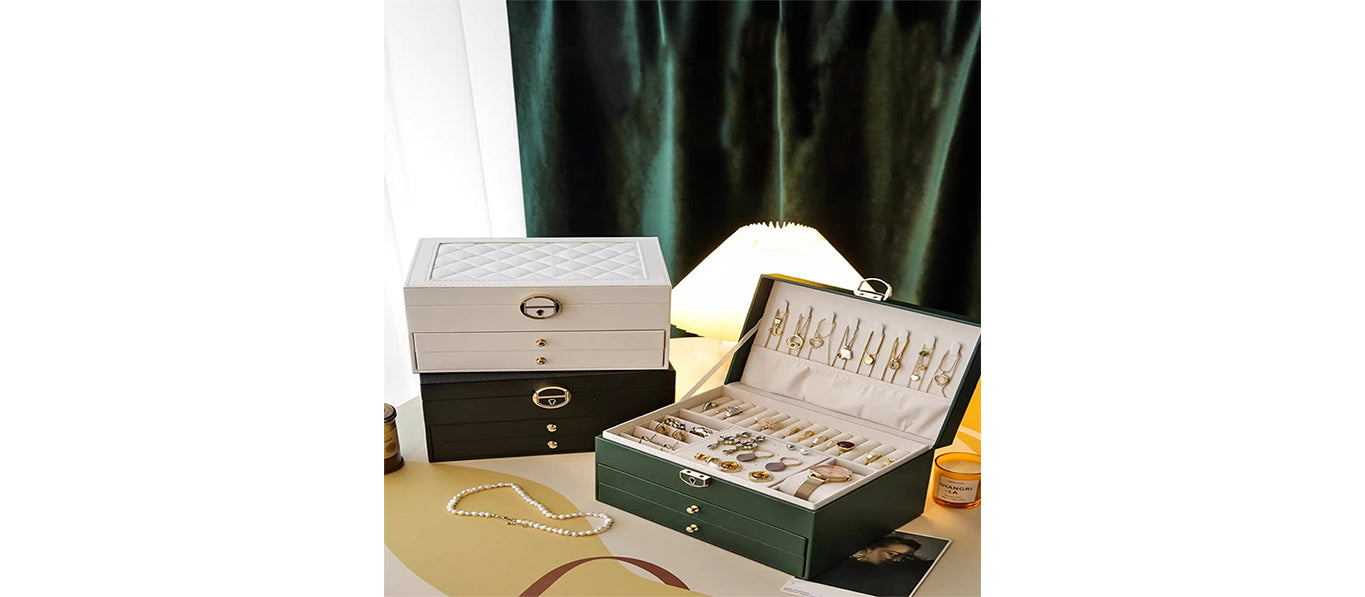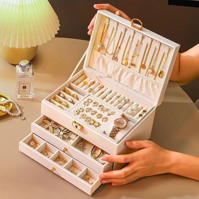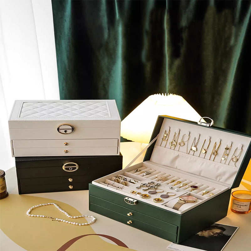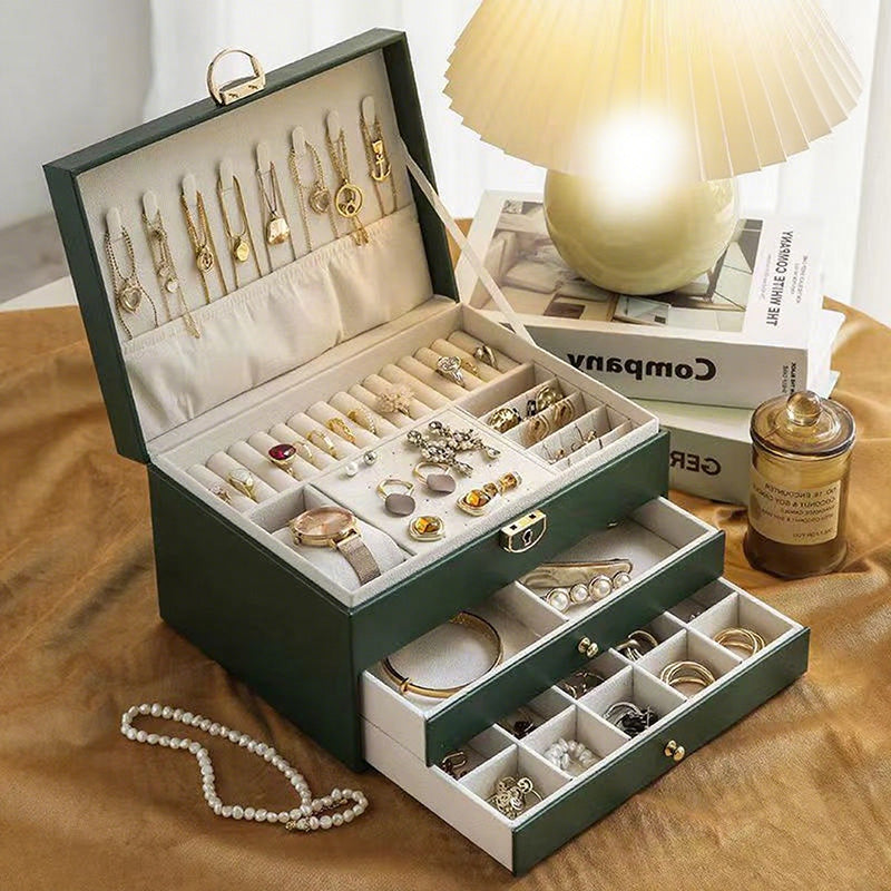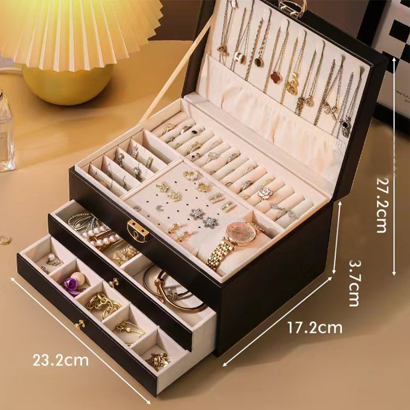 صندوق مجوهرات بثلاثة طوابق مع أدراج