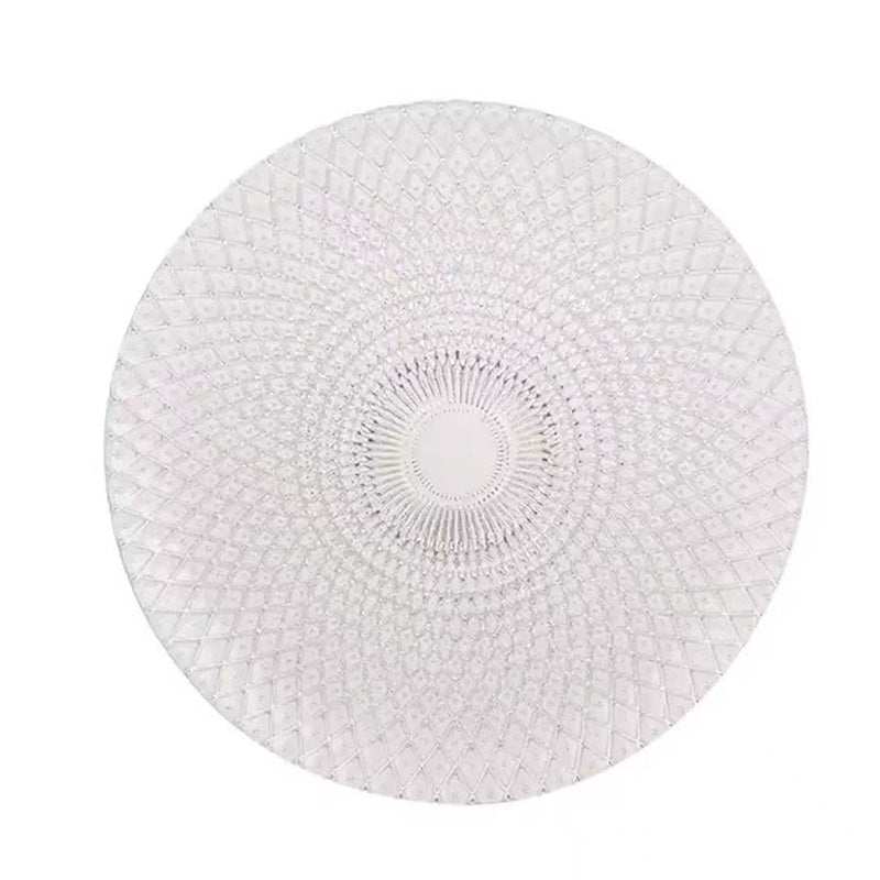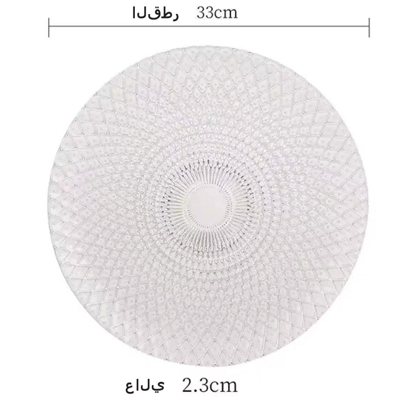طبق زجاجي أنيق مزين بنقشة ريش الطاووس، ويضفي تصميمه المميز لمسة من الرقي على مائدة الطعام. مصنوع من زجاج عالي الجودة، مما يضمن متانته وسهولة تنظيفه.