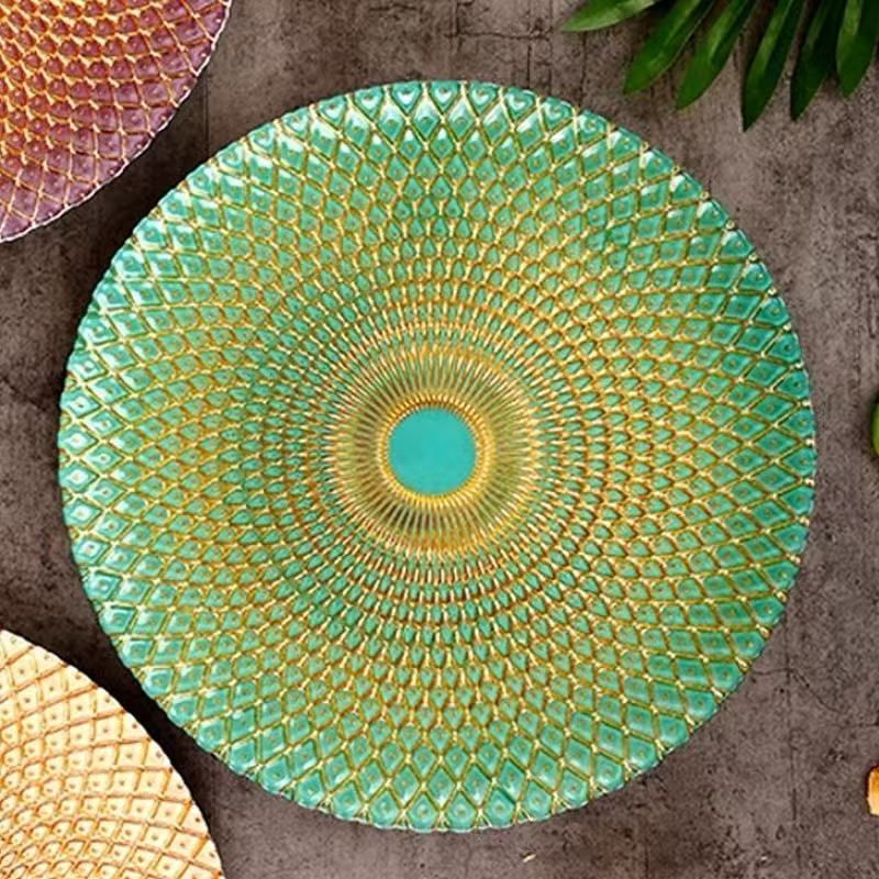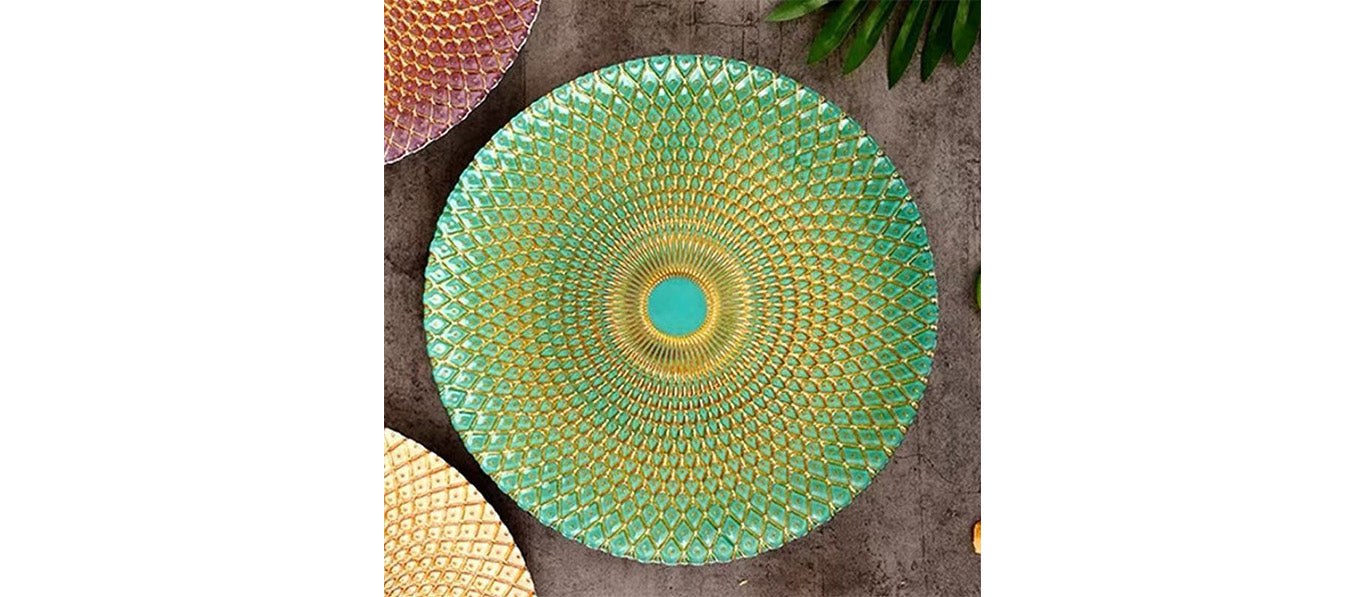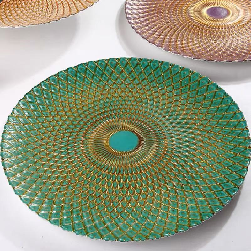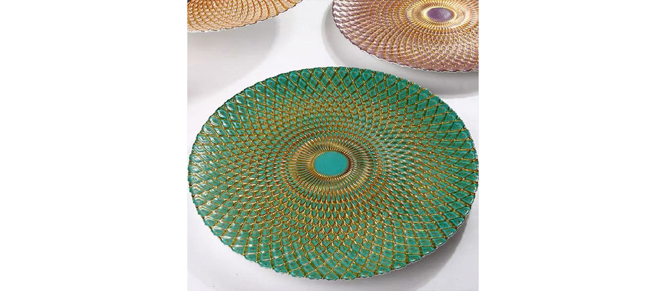 طبق عشاء زجاجي بنقشة ريش ذيل الطاووس
