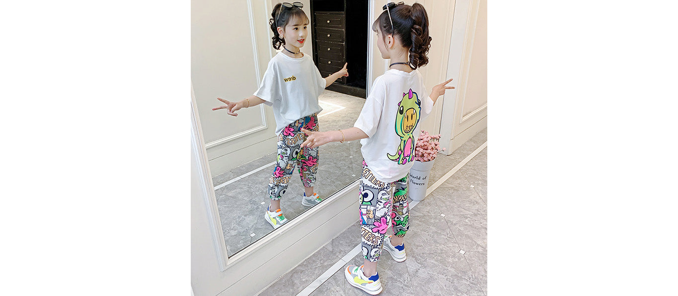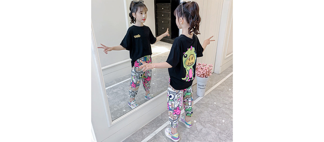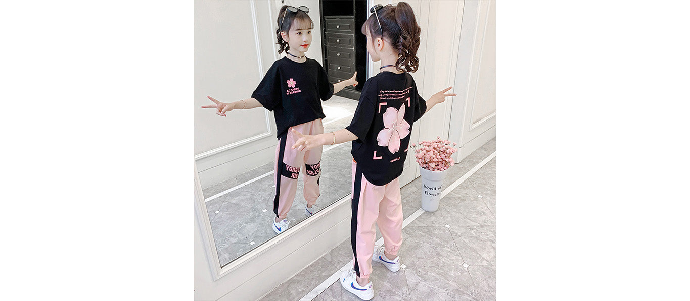 طقم من قطعتين للفتيات يتكون من تي شيرت قصير الأكمام وسروال رياضي.
