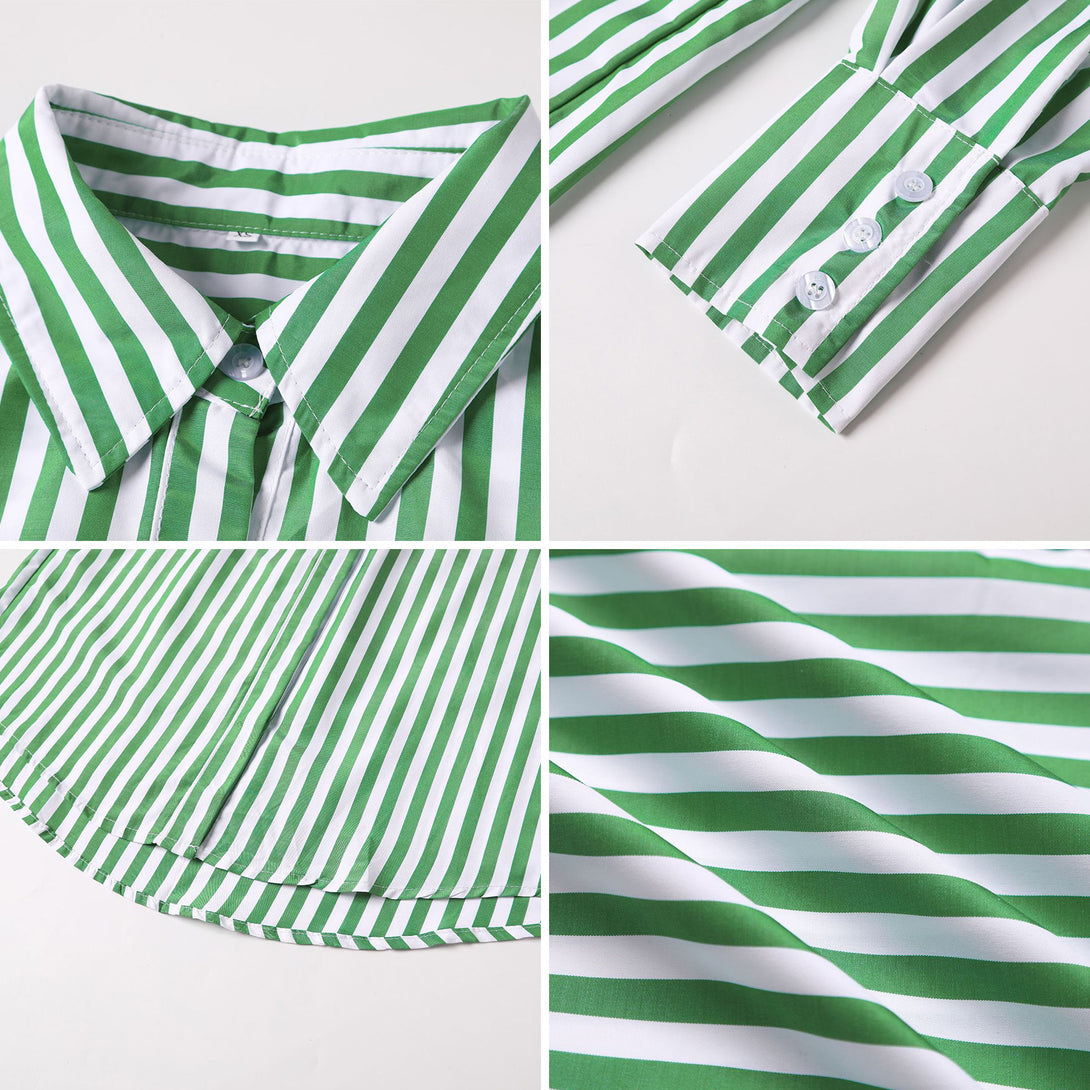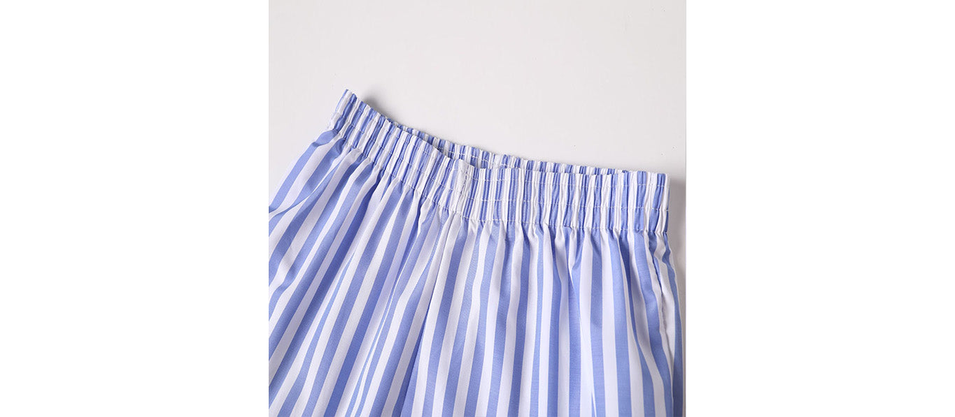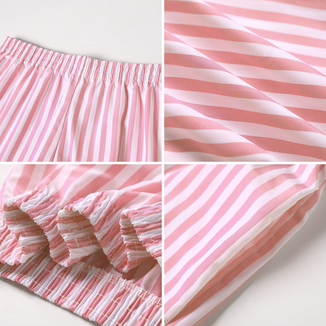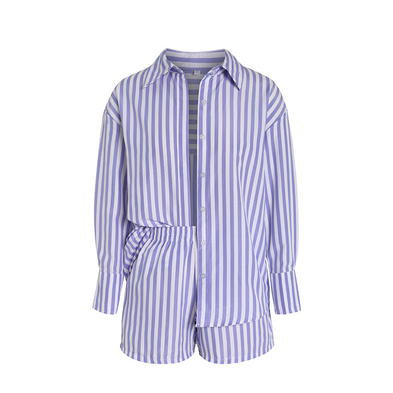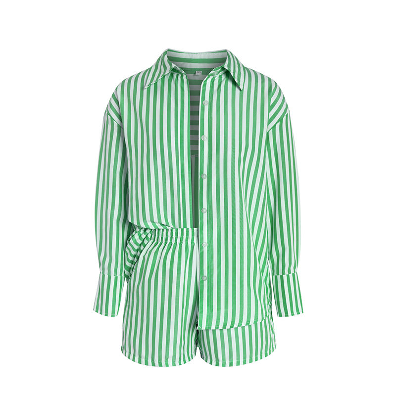 طقم قميص طويل الأكمام وشورت مخطط صيفي للنساء