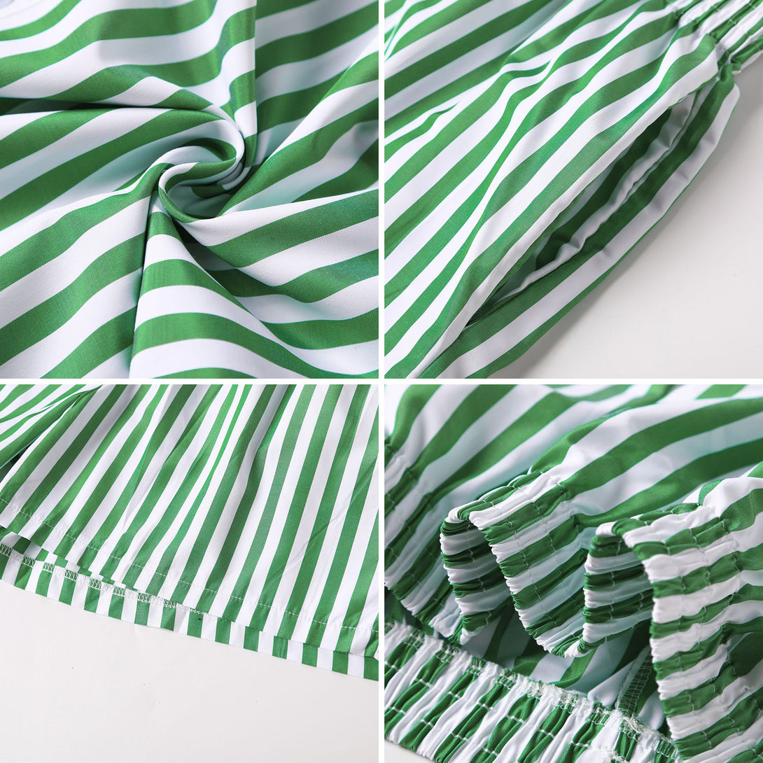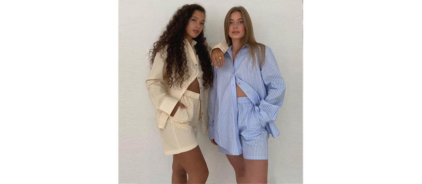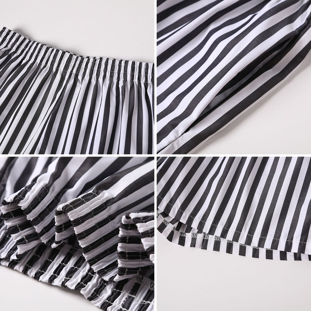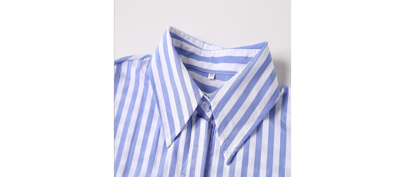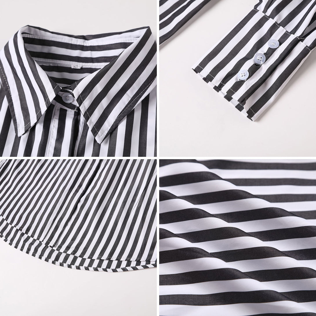 طقم قميص طويل الأكمام وشورت مخطط صيفي للنساء