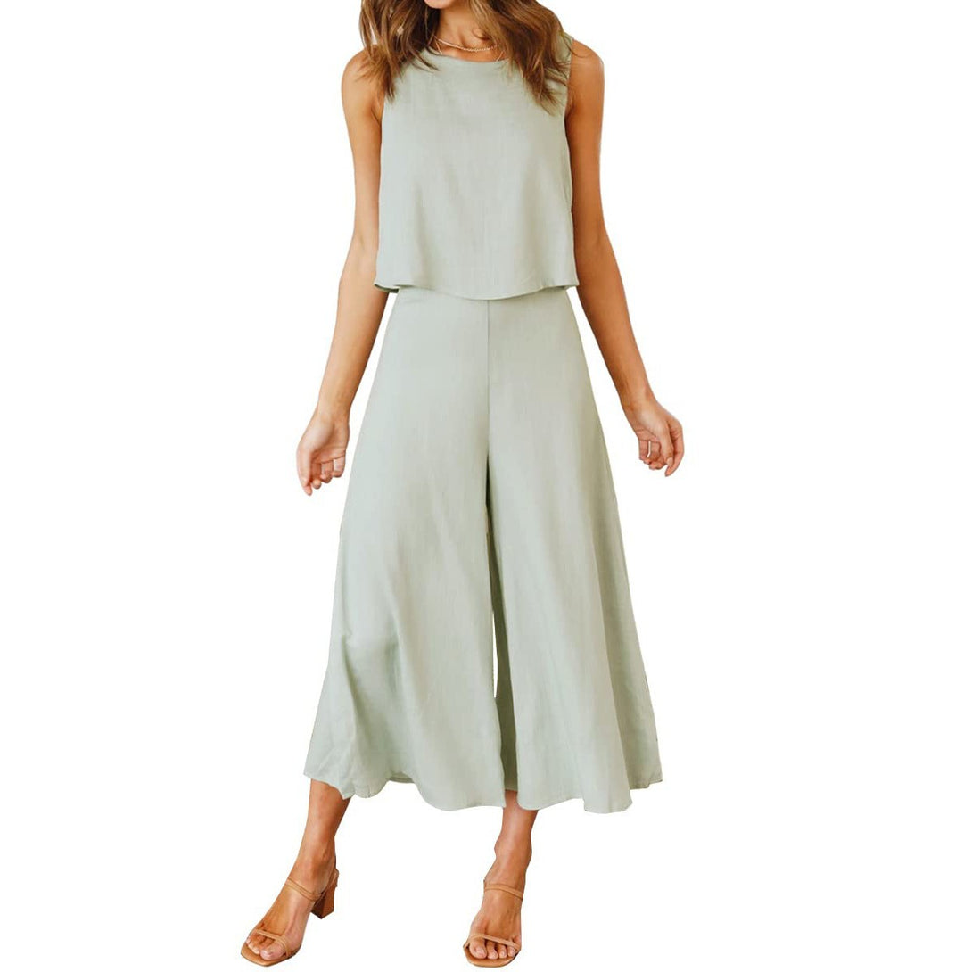 طقم صيفي من قطعتين بدون أكمام للنساء