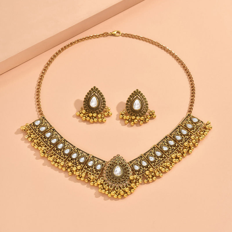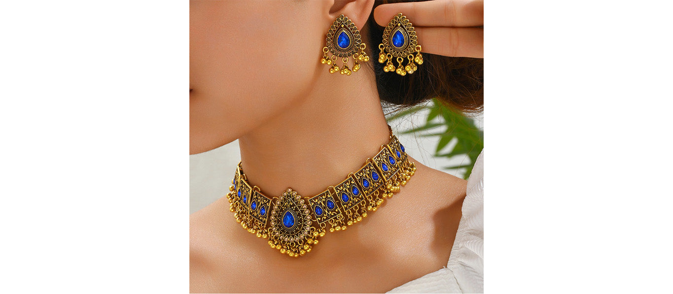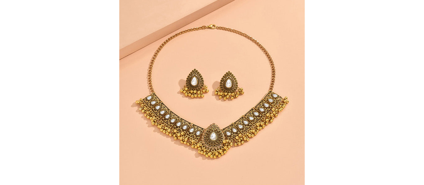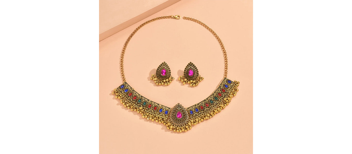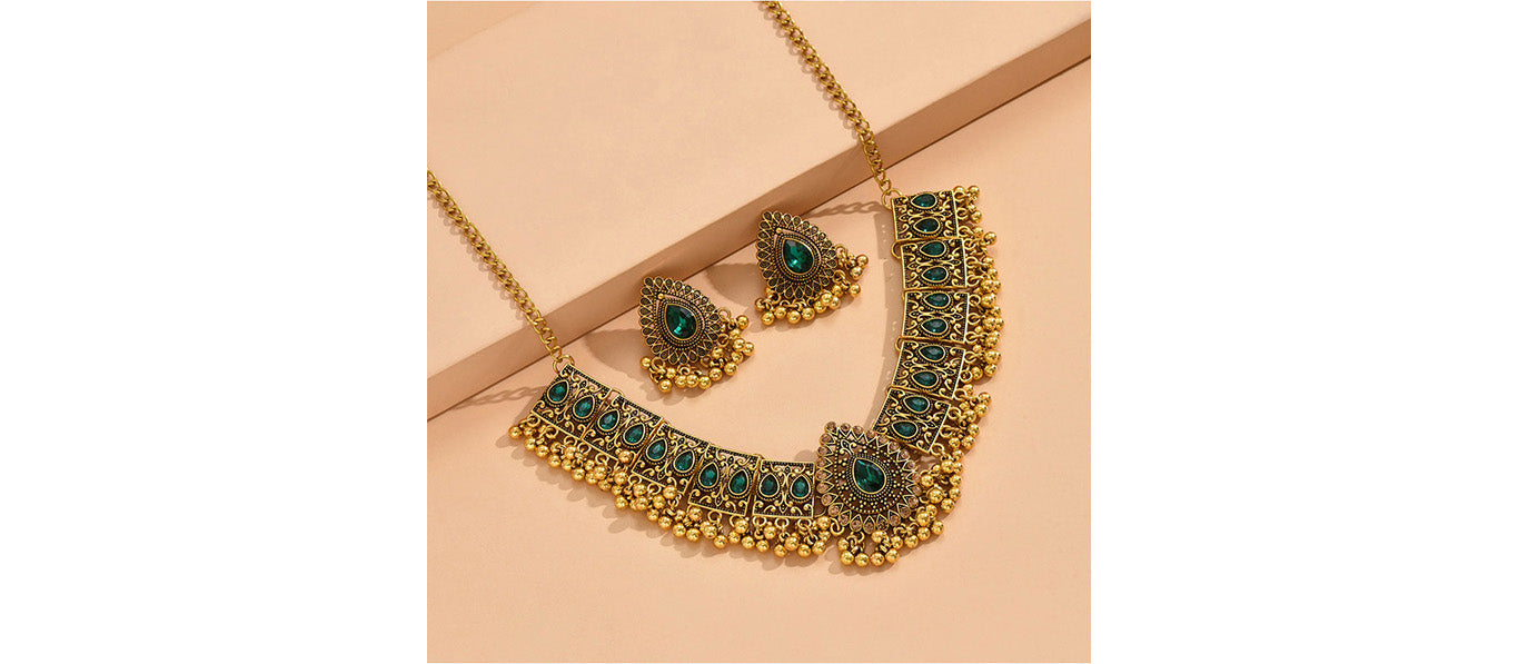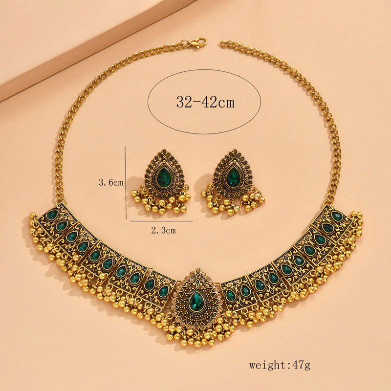 طقم أقراط وقلادة على شكل دمعة من الطراز القديم للسيدات