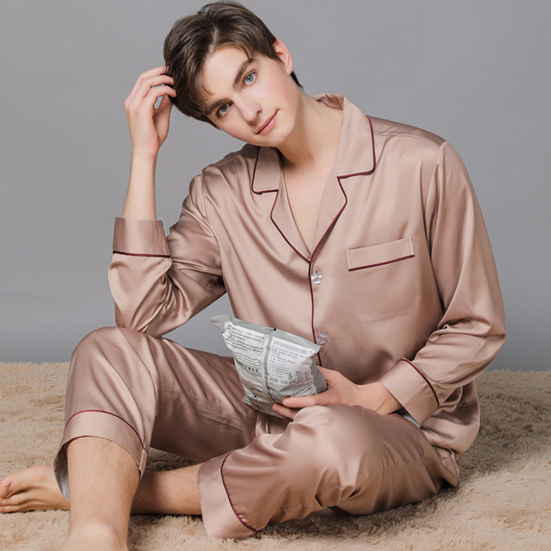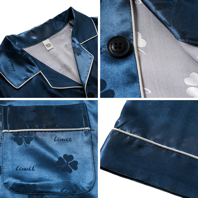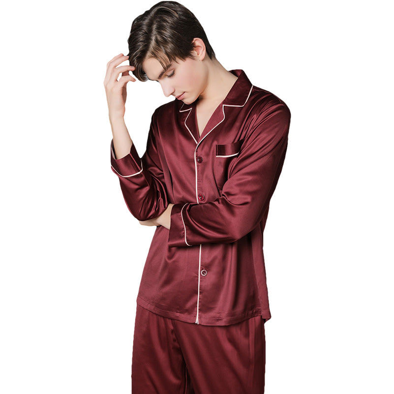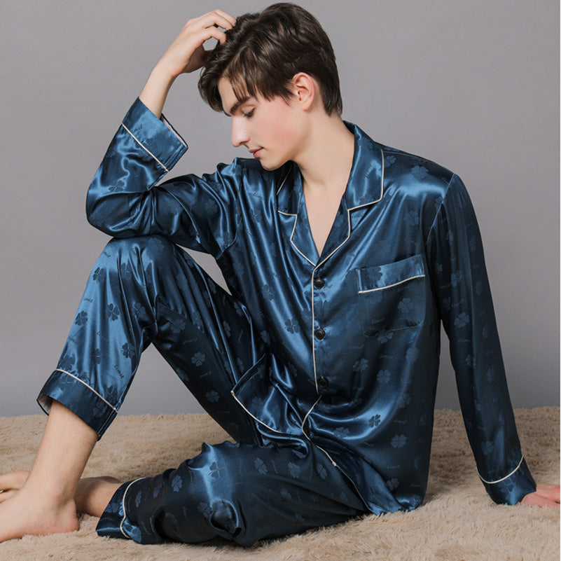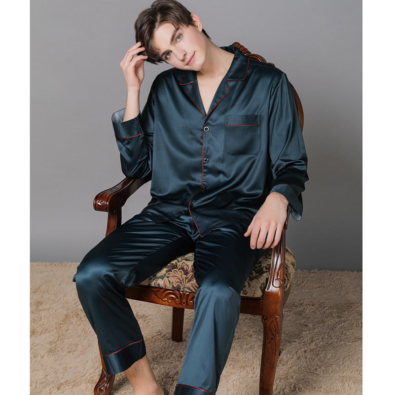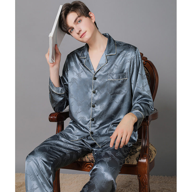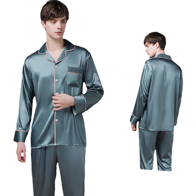 طقم بيجامة رجالي من قطعتين، يتكون من قميص بأزرار في الأمام وسروال بيجامة