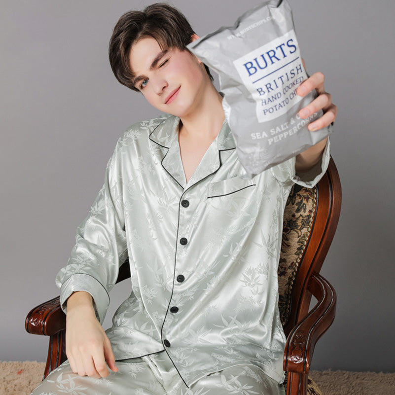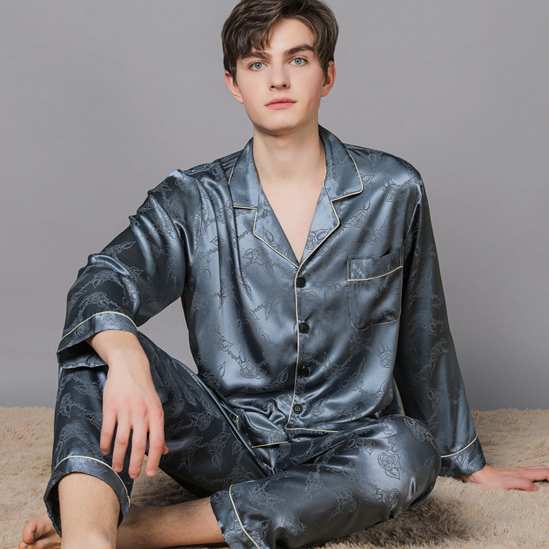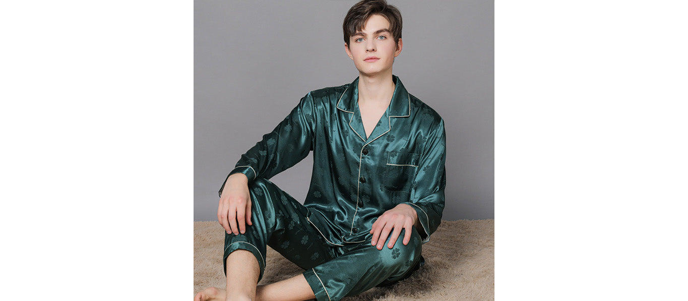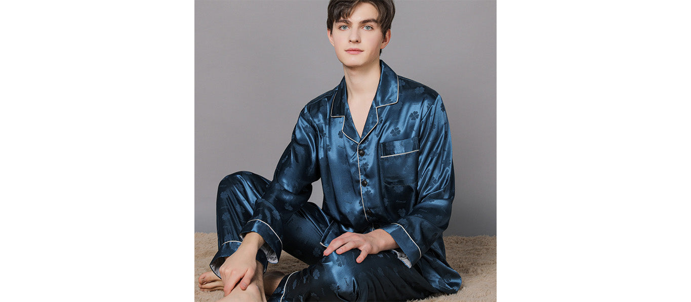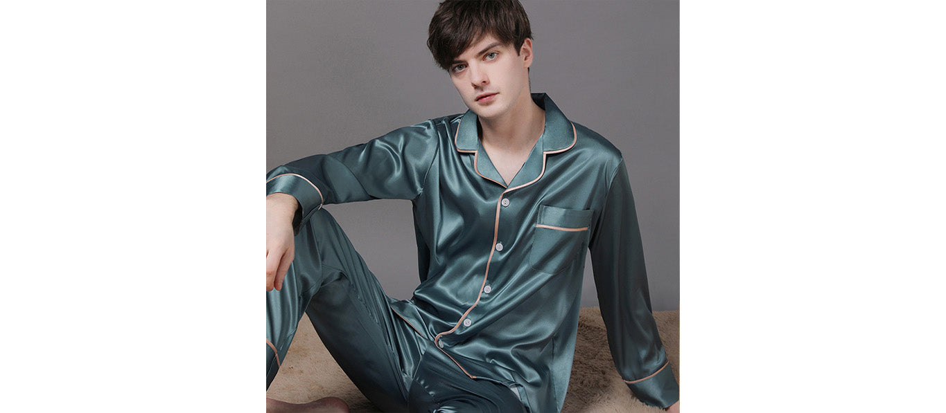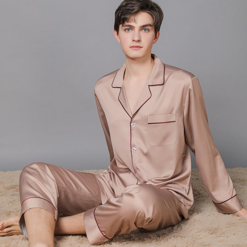 طقم بيجامة رجالي من قطعتين، يتكون من قميص بأزرار في الأمام وسروال بيجامة
