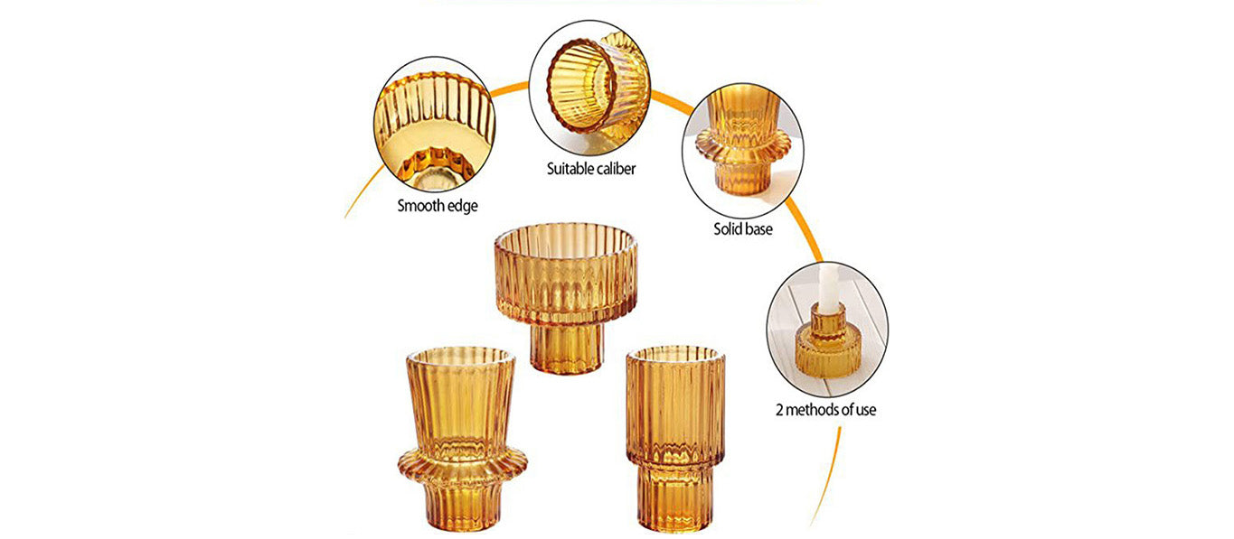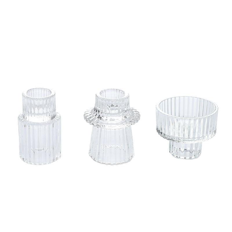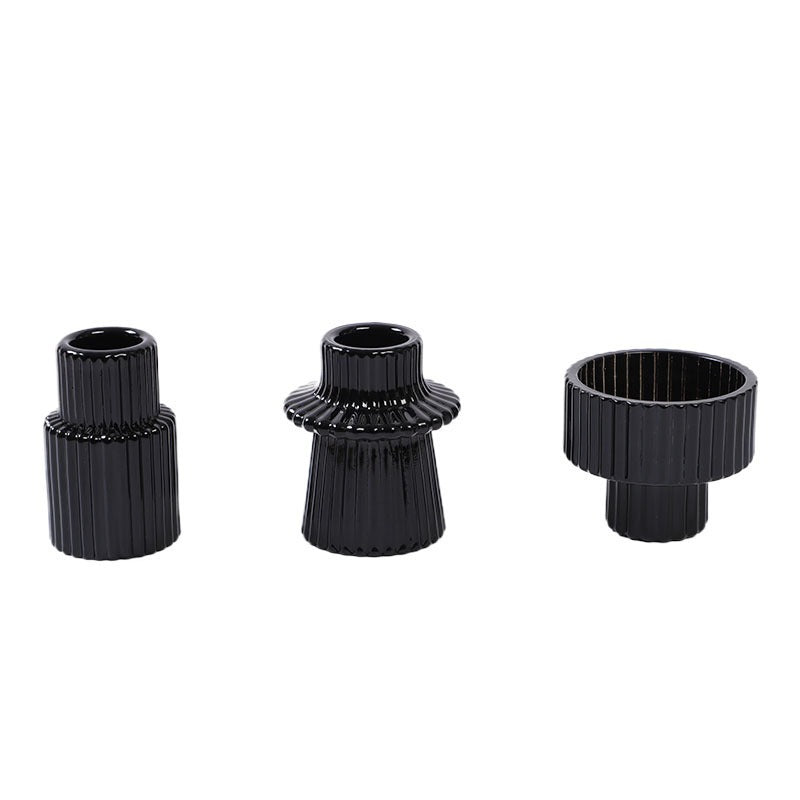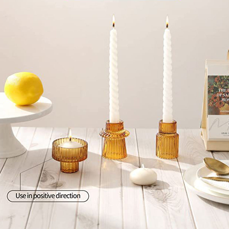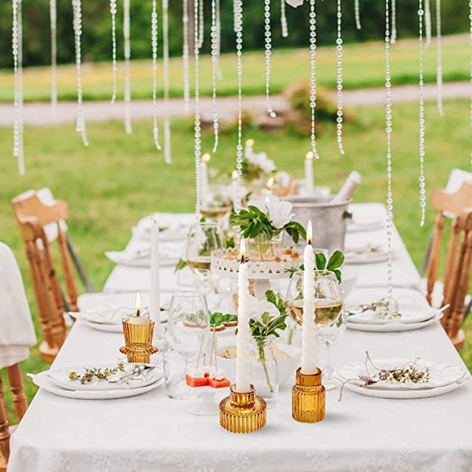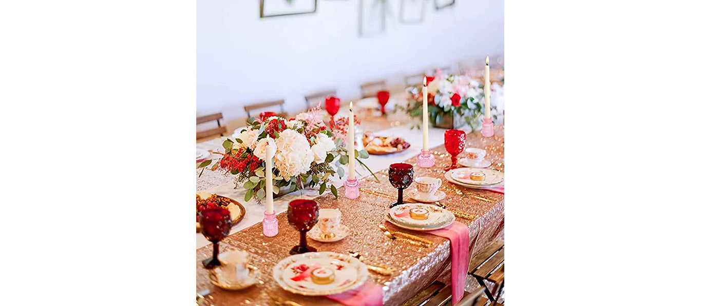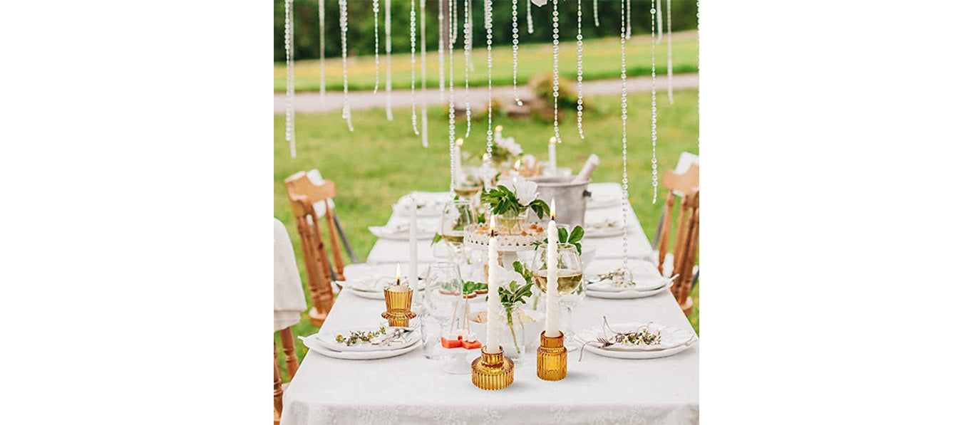 مجموعة من الشمعدانات المصغرة تتألف من ستة حاملات شموع زخرفية مدببة، تضفي لمسة أنيقة ورومانسية على احتفالات الزفاف.
