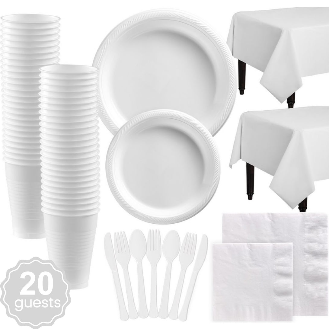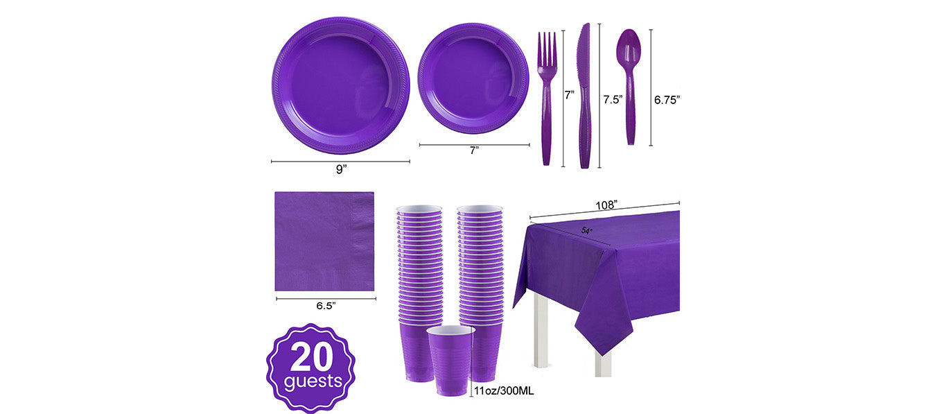 مجموعة أدوات مائدة بلاستيكية أحادية اللون للاستخدام مرة واحدة