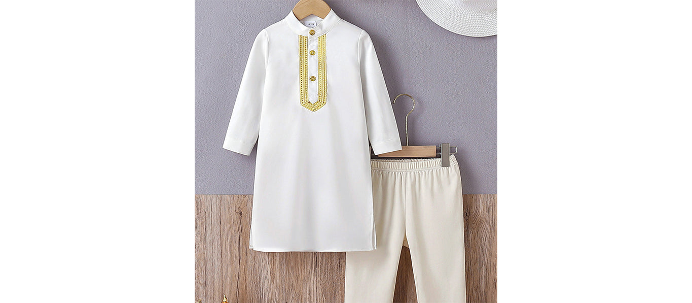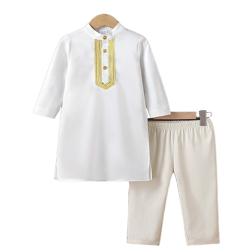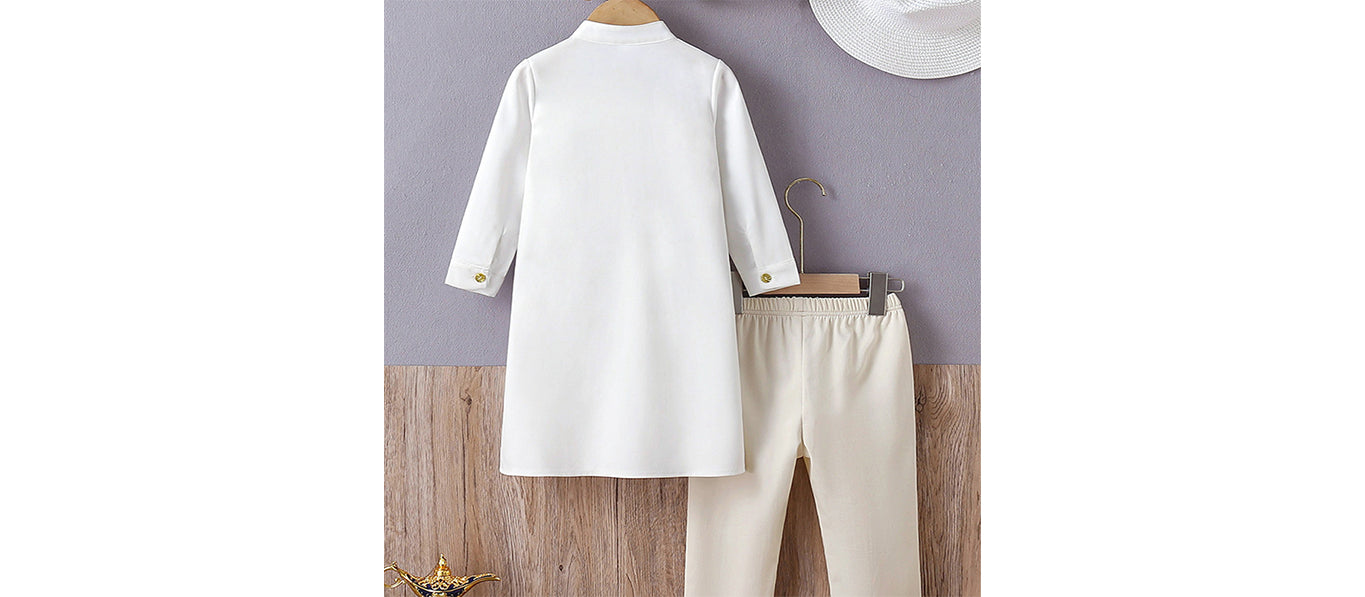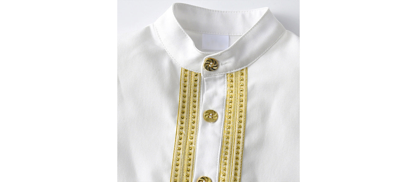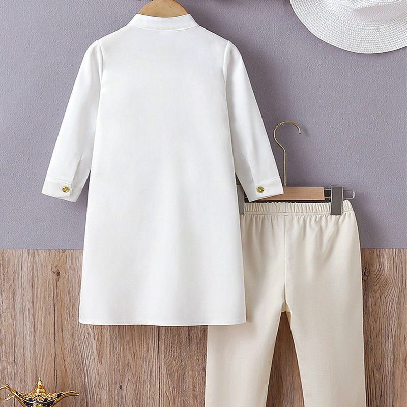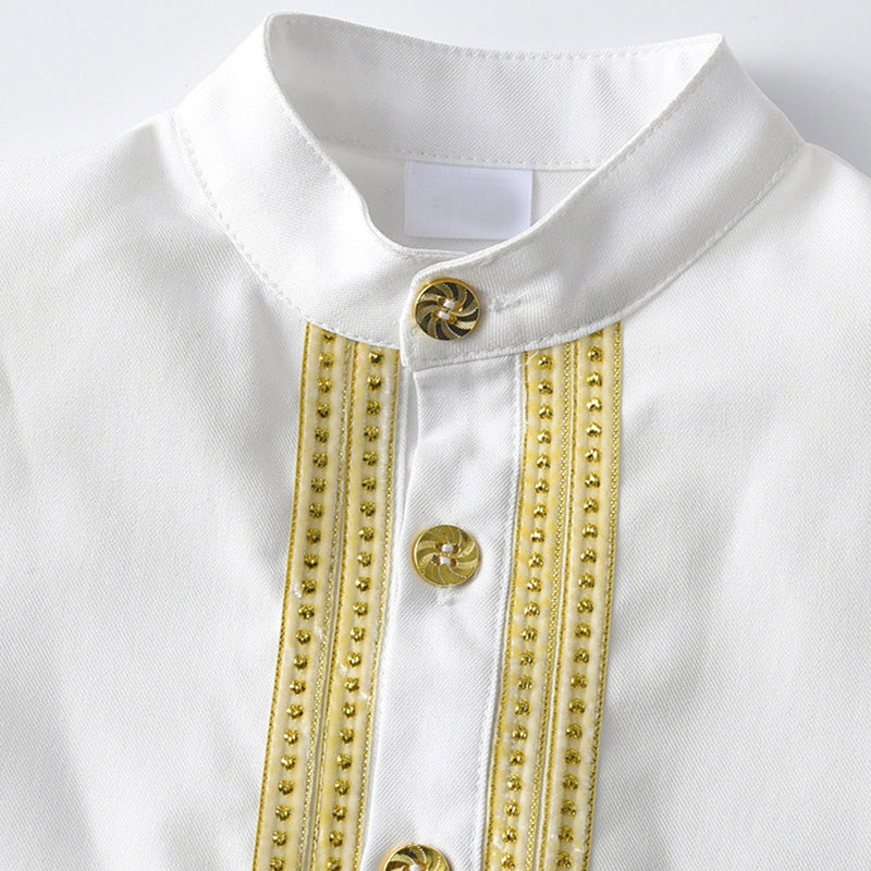 طقم رداء عربي طويل مصمم خصيصًا للأولاد والمراهقين، يمزج بين السحر التقليدي والتفاصيل المعقدة من خلال التطريز الرائع لإبراز التراث الثقافي للشرق الأوسط.