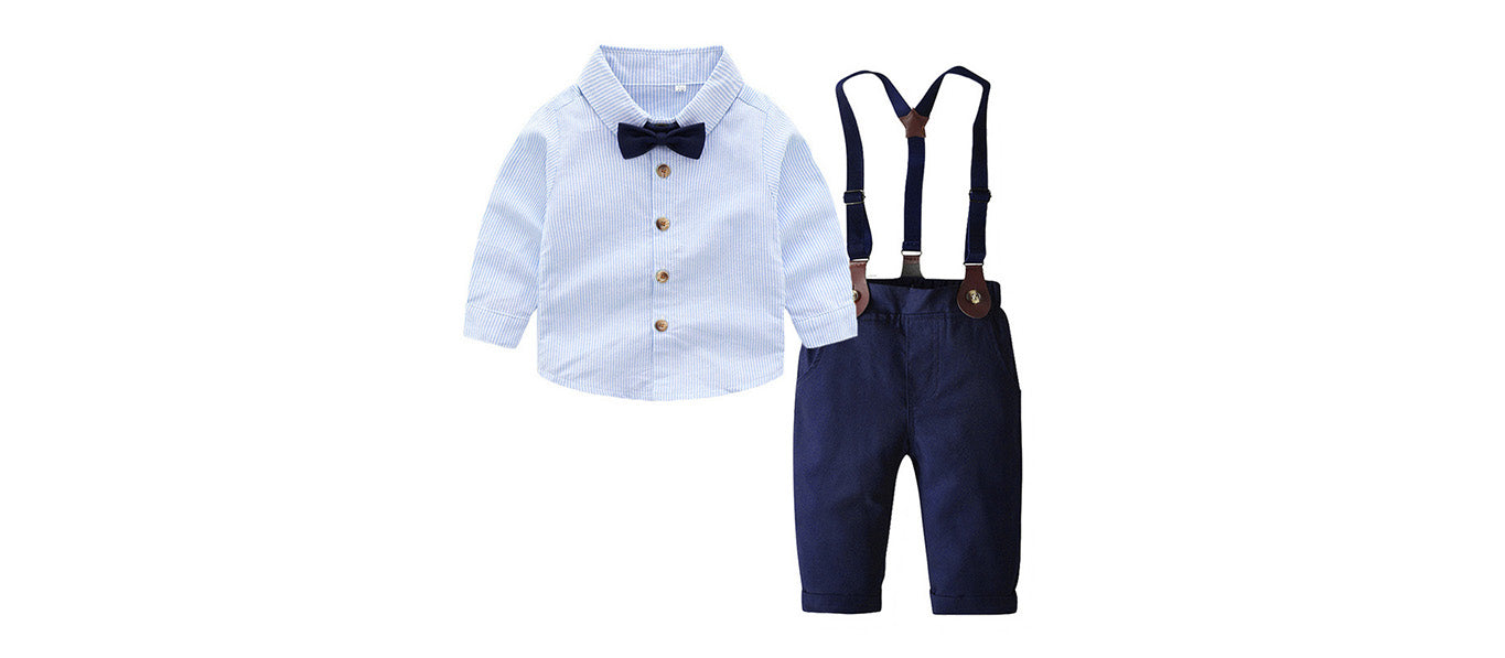 طقم زي تنكري للأولاد بدلة سهرة بأكمام طويلة بدلة جنتلمان بأزرار وحمالات
