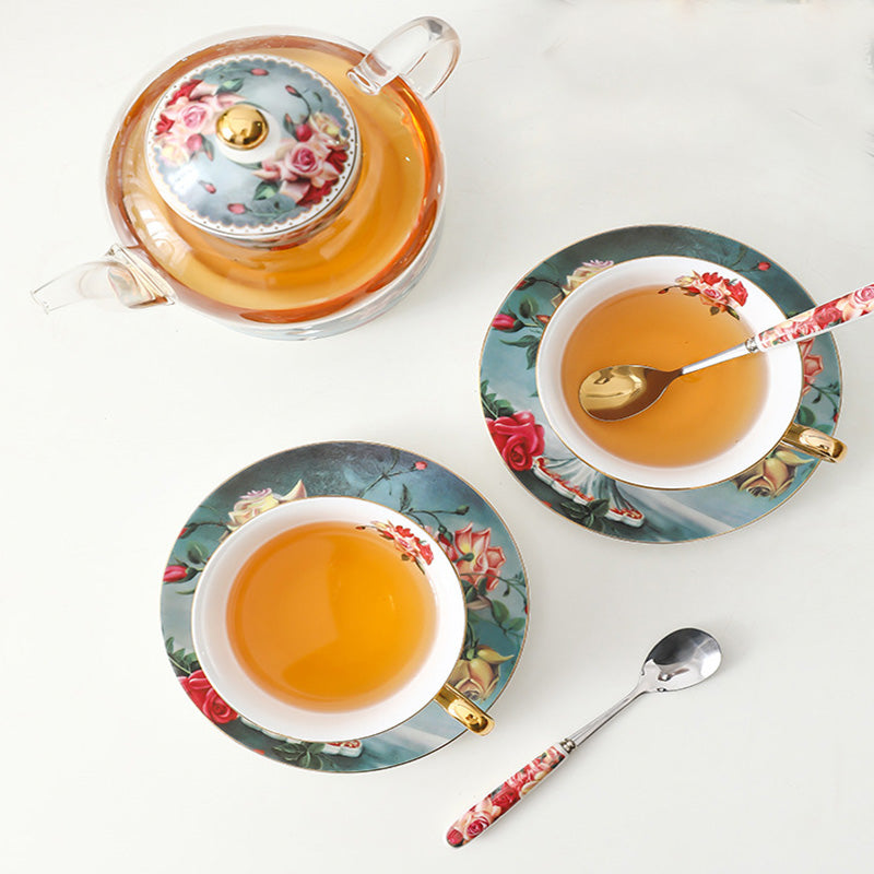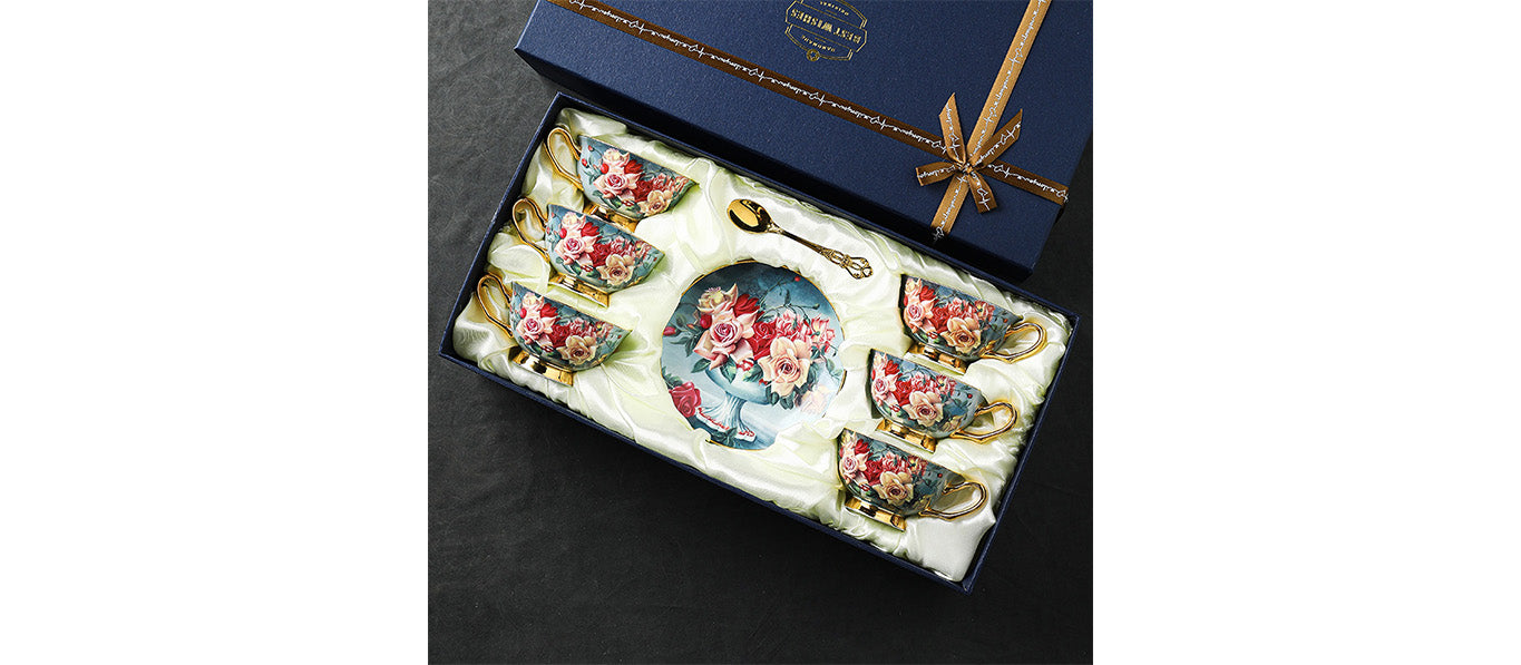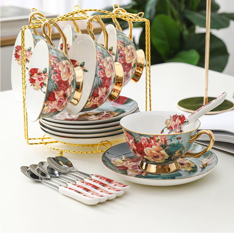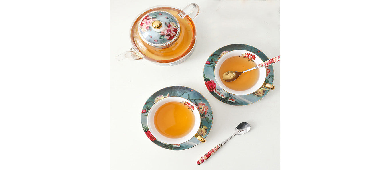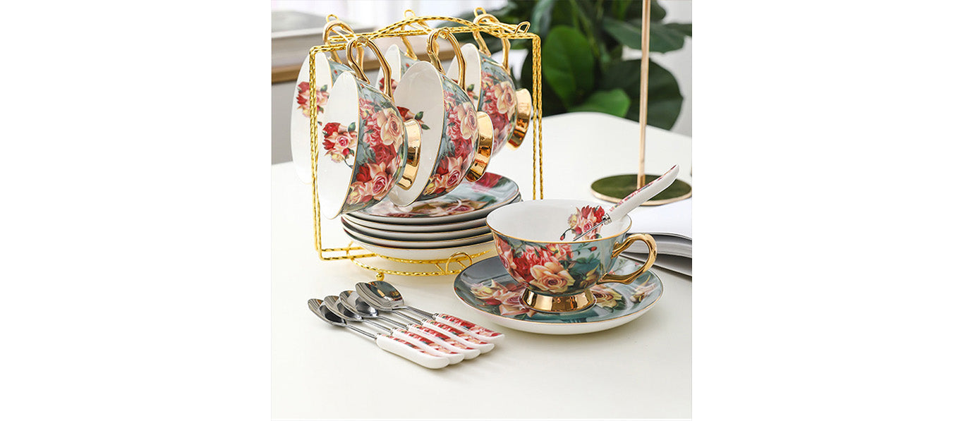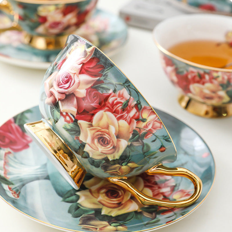 طقم شاي فاخر على الطراز الصيني مصنوع من الخزف الصيني الفاخر، مناسب لتقديم القهوة والشاي والعصير وجميع أنواع المشروبات.