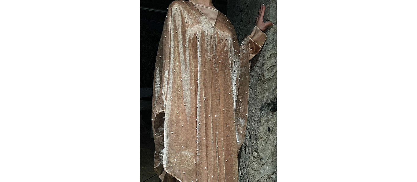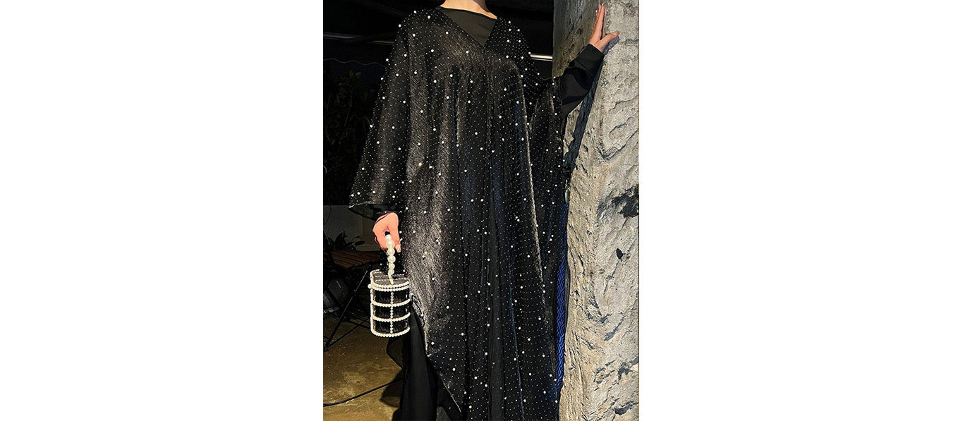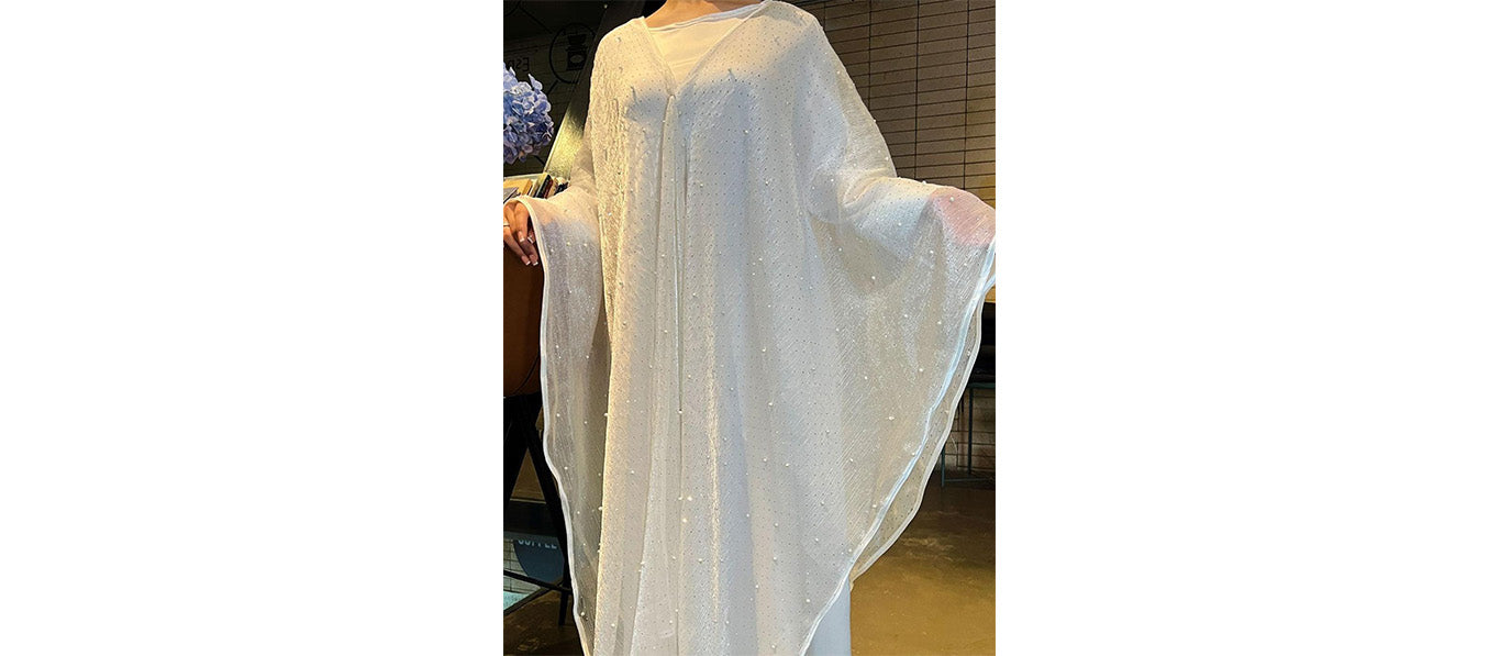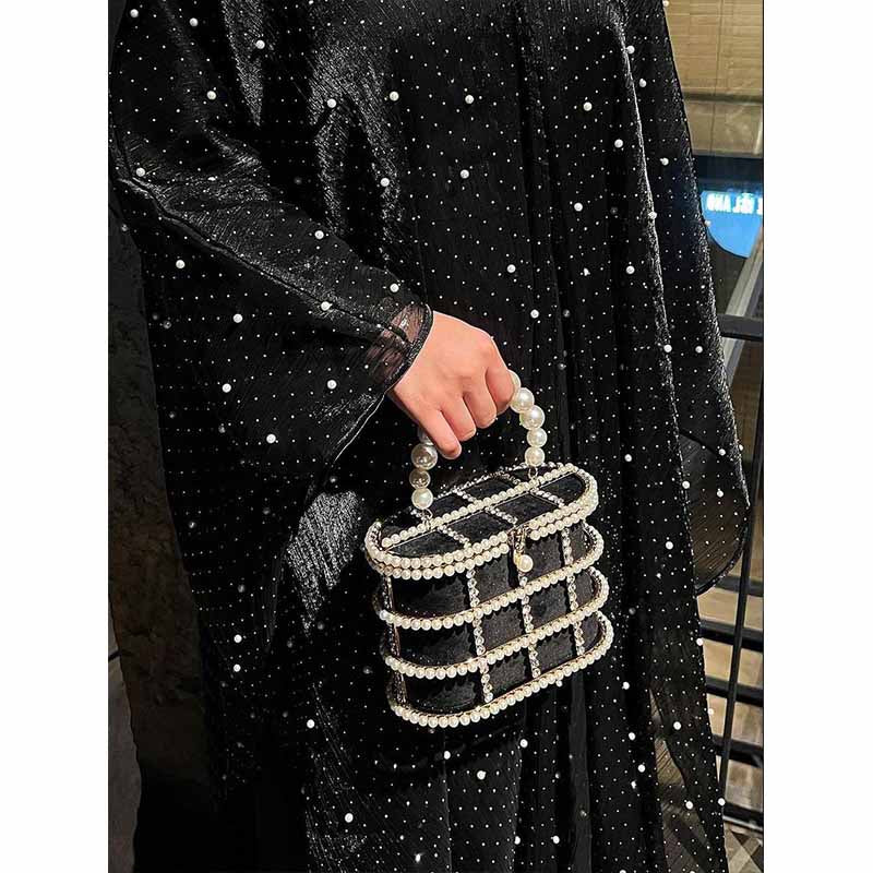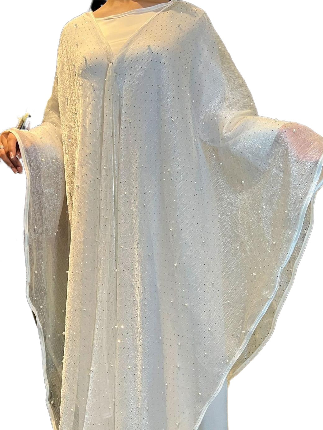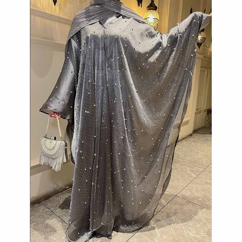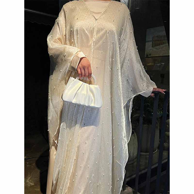 طقم عباءة نسائية أنيقة مكون من 3 قطع رداء خارجي مع لؤلؤ ورداء داخلي وحزام