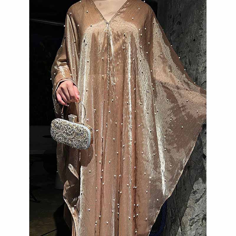 رداء قفطان نسائي بسيط لامع مع شق جانبي