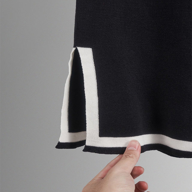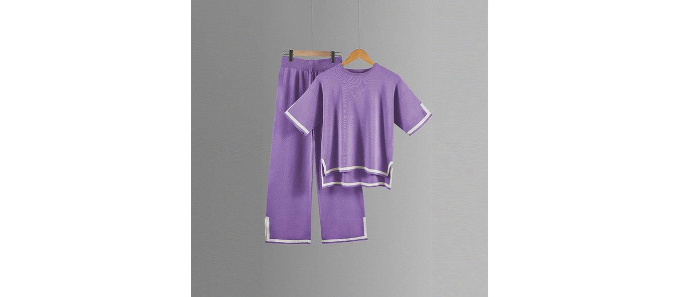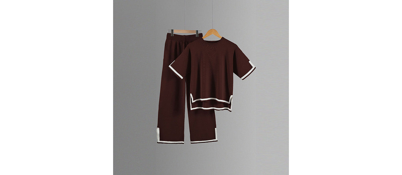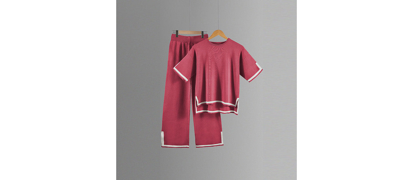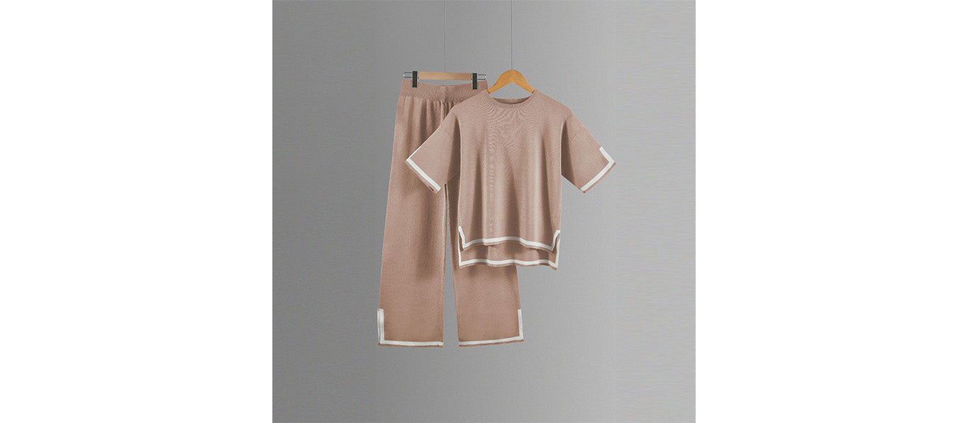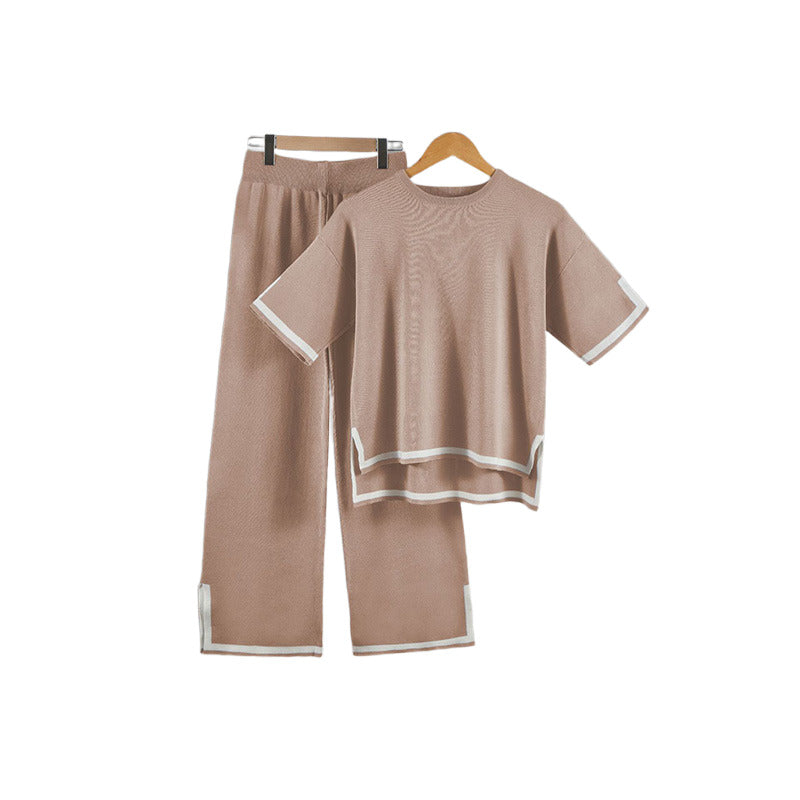 طقم محبوك مع بلوزة قصيرة الأكمام وسروال واسع